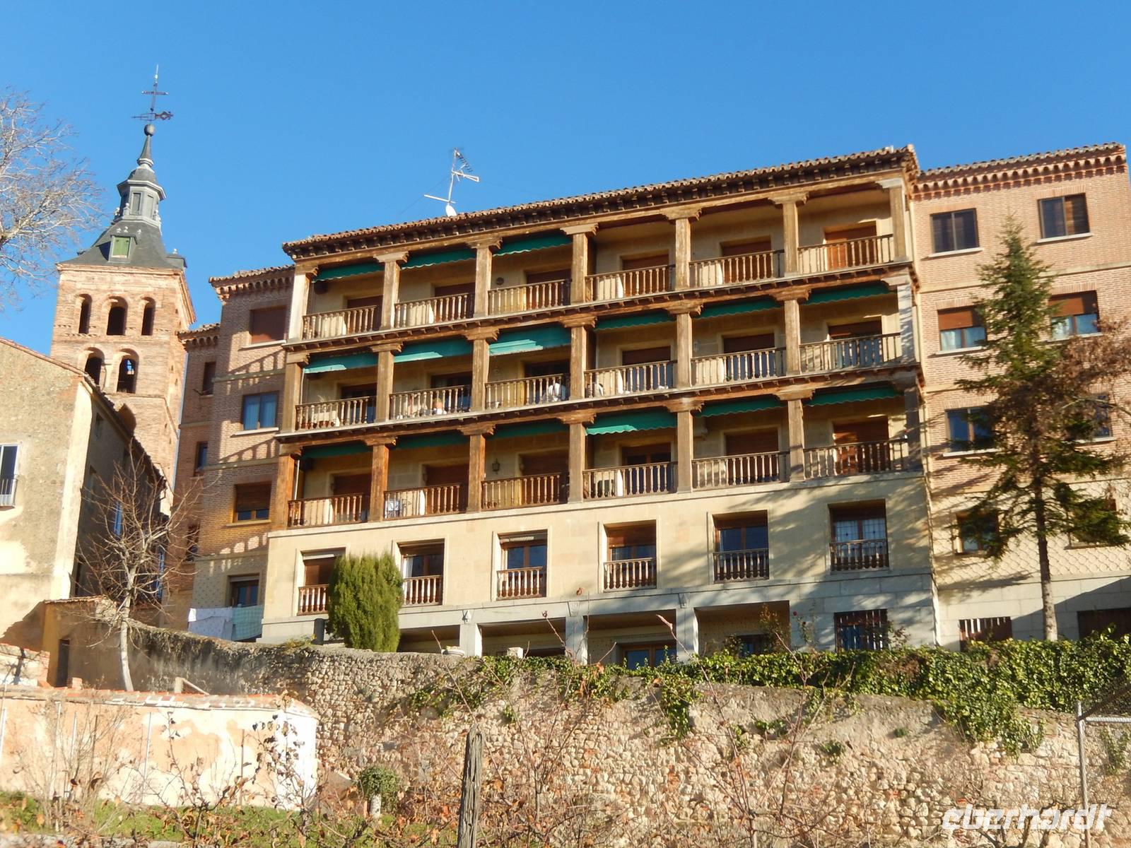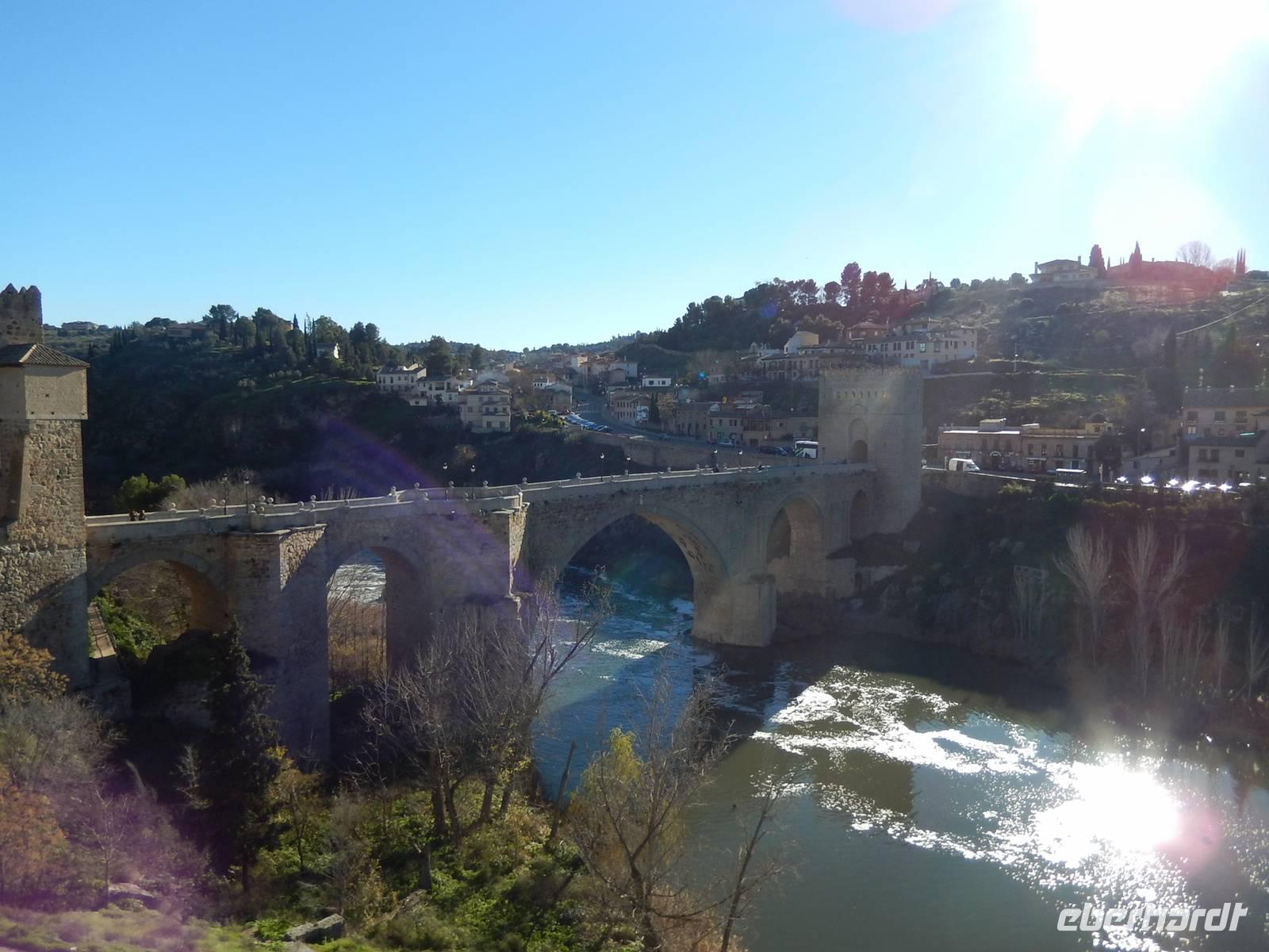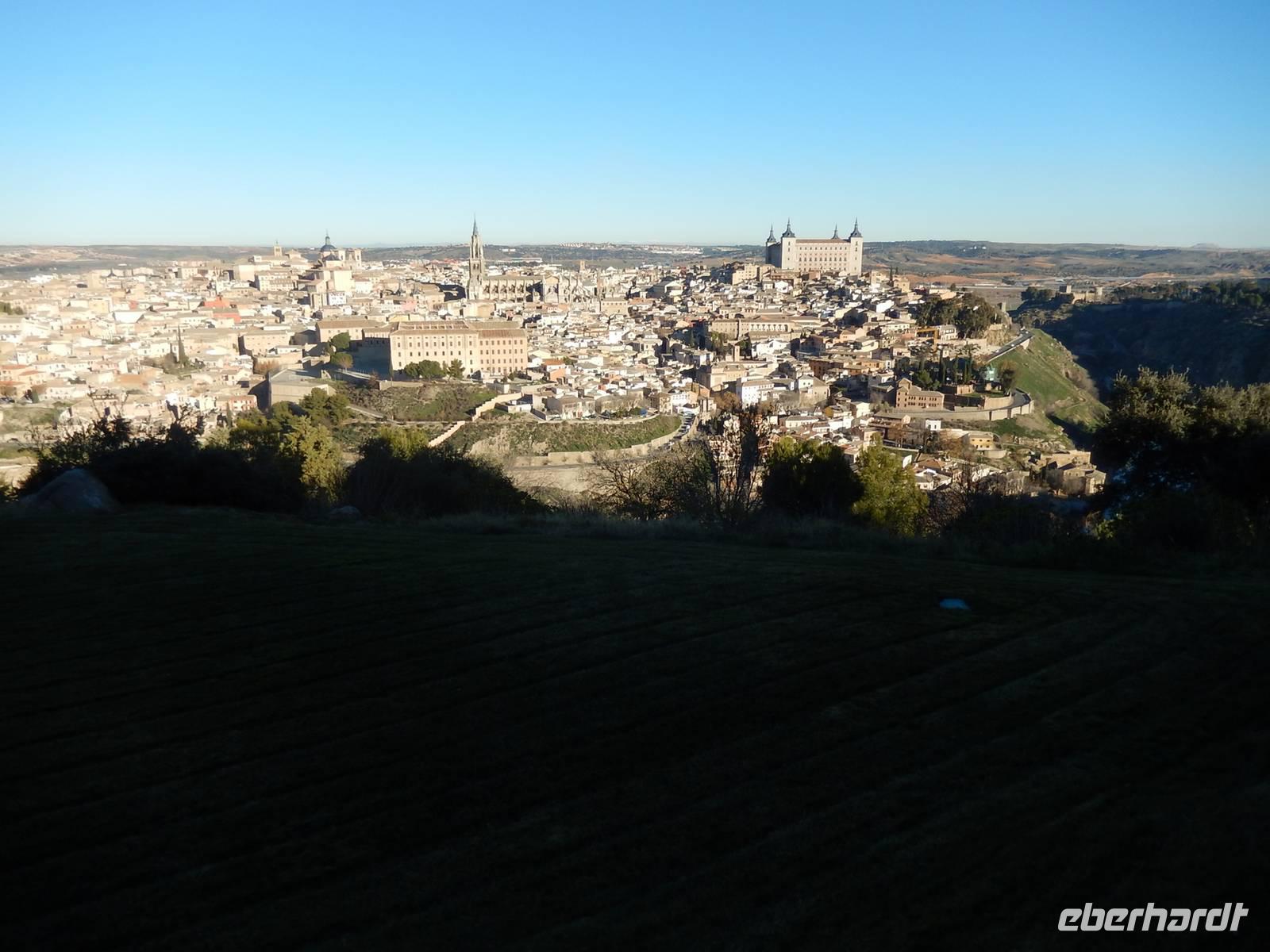 Heute fuhren wir zur eindrucksvollen Stadt Toledo, weniger als 1 Stunde entfernt von Madrid. Wir hatten die beste Reiseleiterin in Madrid, die man haben konnte - Christine, die uns ihre neue Heimat zeigte. Diese prächtige historische Metropole thront hoch über dem Ufer des Tajo, der sich an dieser Stelle tief in das Hochland eingeschnitten hat. Um diesen Blick genauso zu haben, fuhren wir erstmal außerhalb Toledos zu der berühmten Parador Nacional Hotel Terrasse, wo wir diesen Panorama Blick genießen konnten.