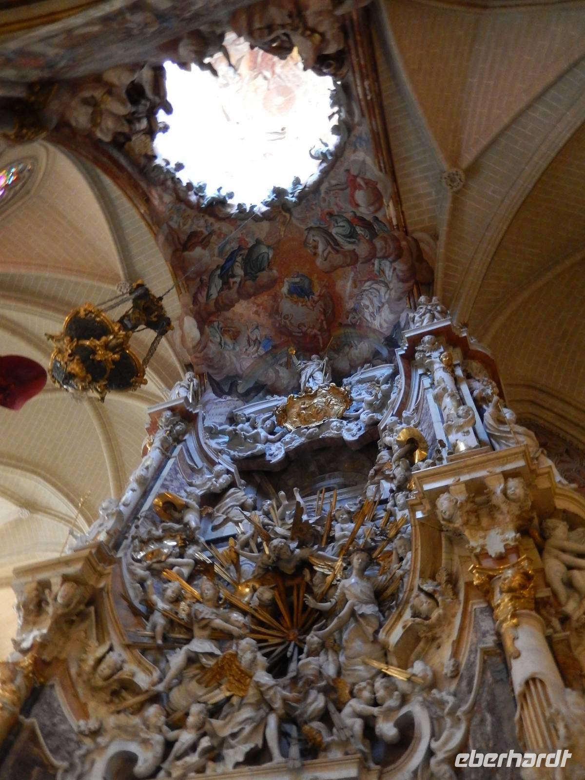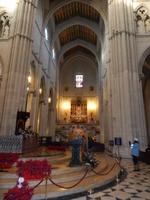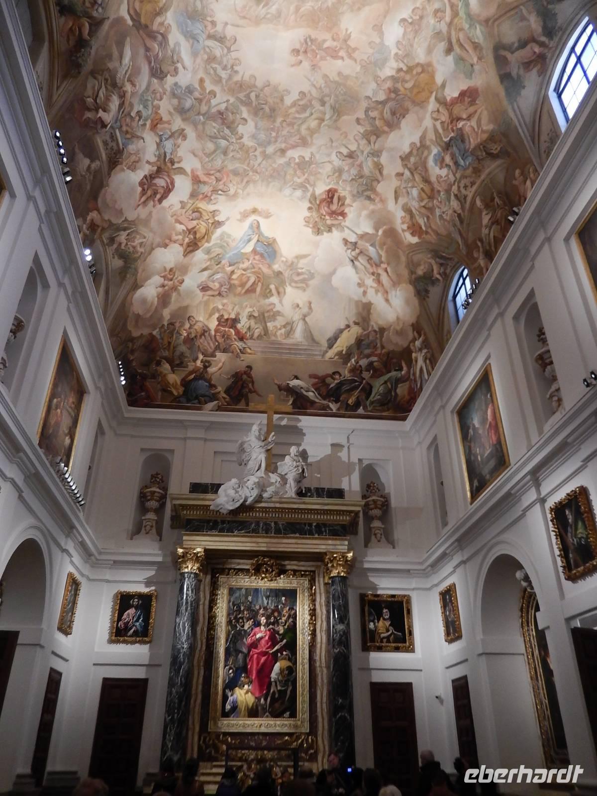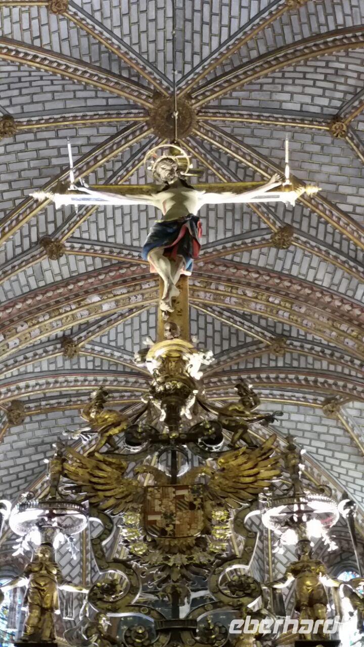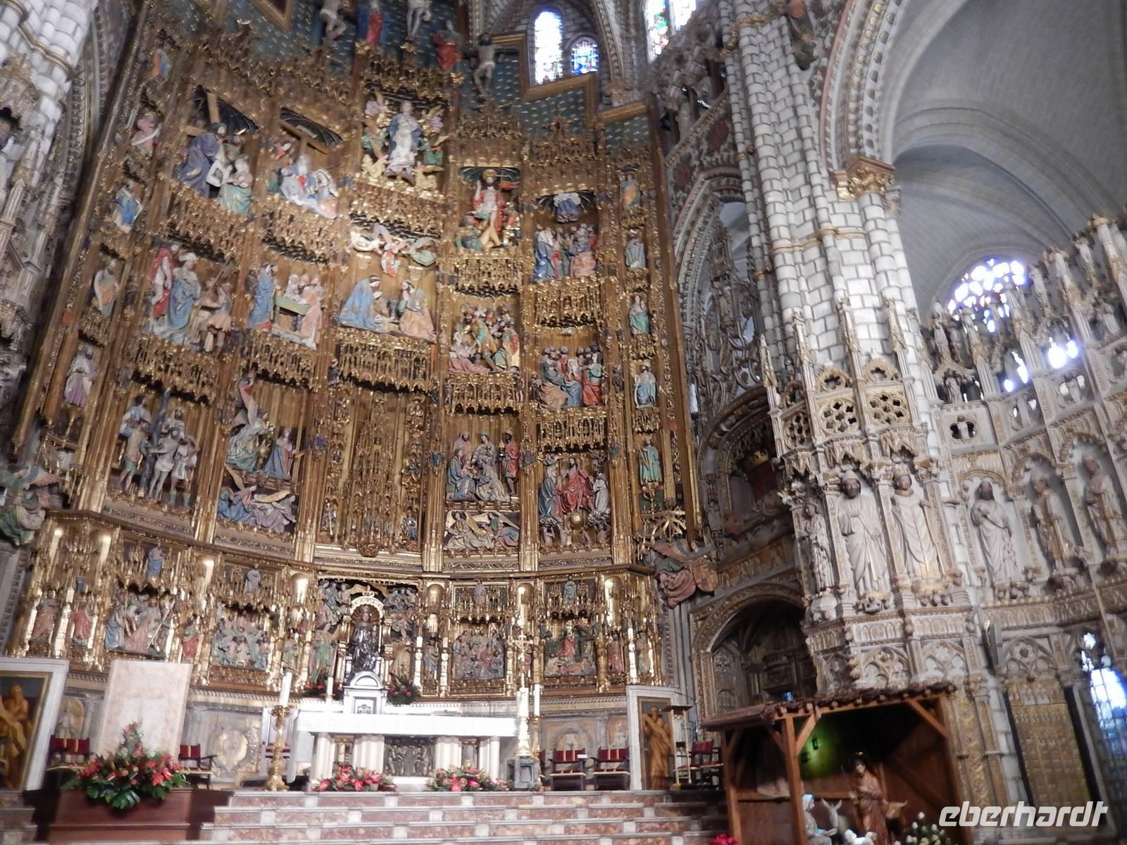 Eines der Wahrzeichen der Stadt, den Arco de la Sangre, lernten wir bei einer Stadtführung kennen. Der aus Cervantes "Don Quijote" bekannte Bogen mit dem dahinter liegenden Alcazar (Palast) ist ein traumhaftes Fotomotiv. Wir fingen bei dem Zocodover Platz an und spazierten gemeinsam durch die Straßen von Toledo. Zuerst besuchten wir die imposante Kathedrale. Dieser Dom hat 2 Türme, aber einer war nicht zu Ende gebaut worden, da dann das Geld gefehlt hatte. Von innen erinnerte uns dieser Dom an den von Sevilla oder Malaga. Später besuchten wir das berühmtes Bild von El Greco „Das Begräbnis von dem Graf Orgaz" und machten eine kleine Mittagspause an der Sonne. Weiter ging zu der jüdische Synagoge „Santa Maria La Blanca". Toledo ist ein einziges und gutes Beispiel wie damals Christen, Juden und Muslime in Friede zusammenleben konnten.