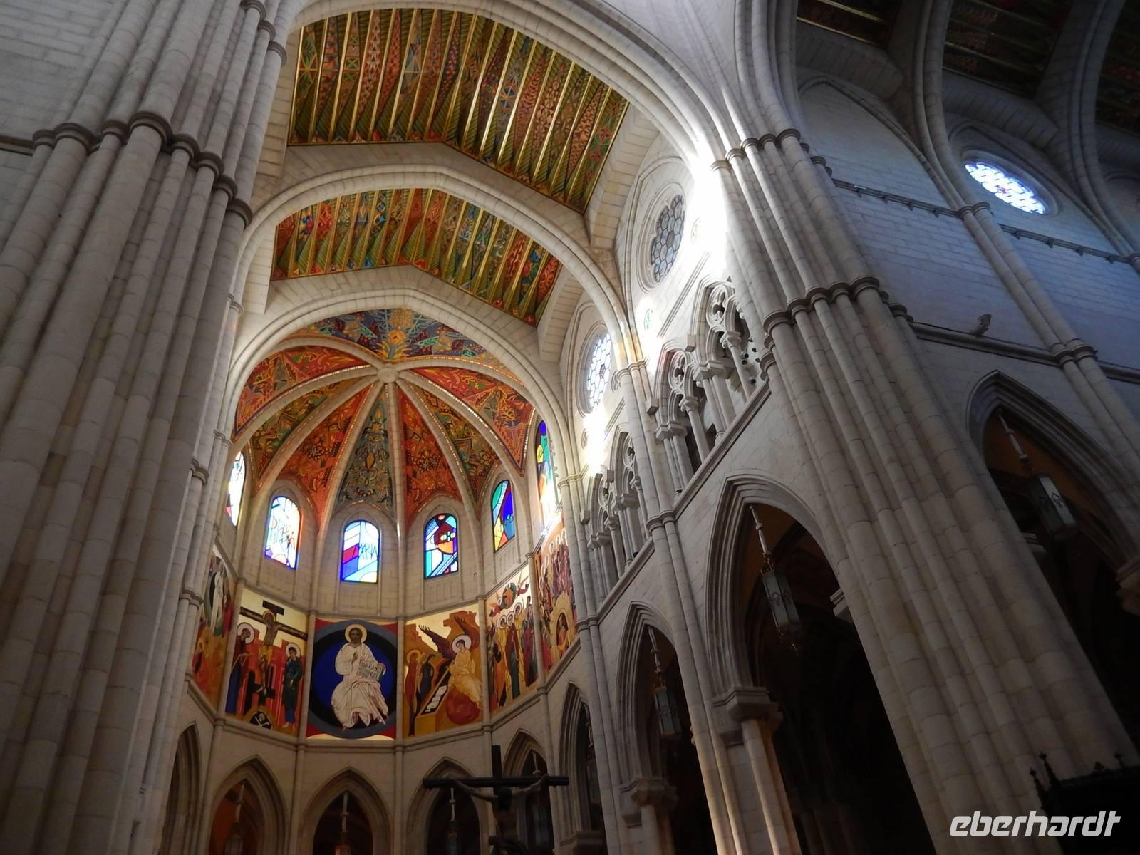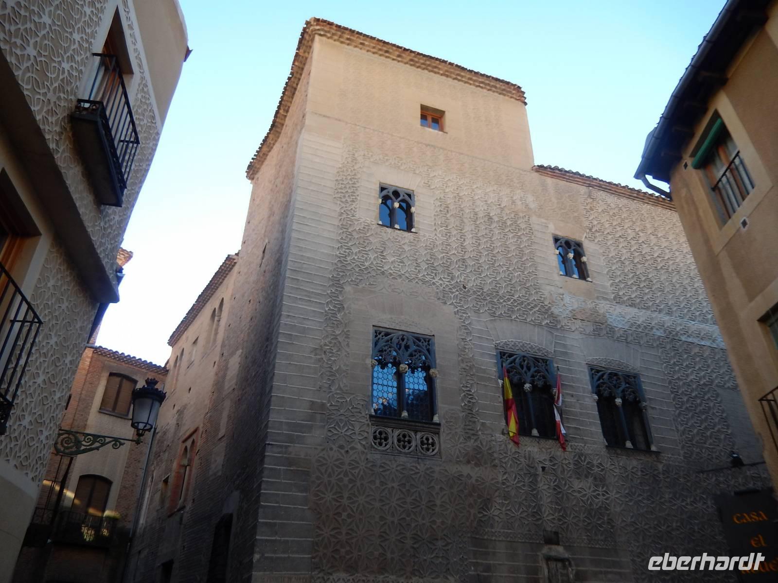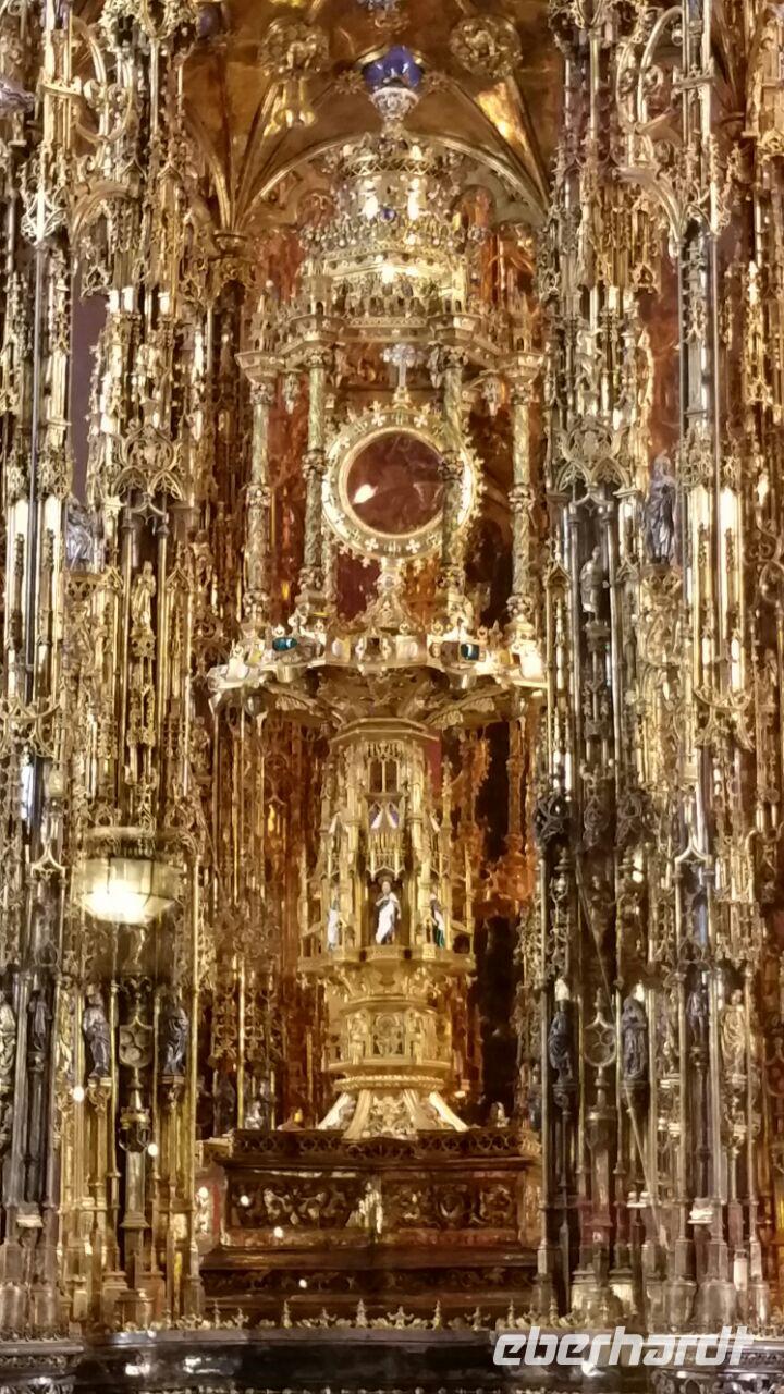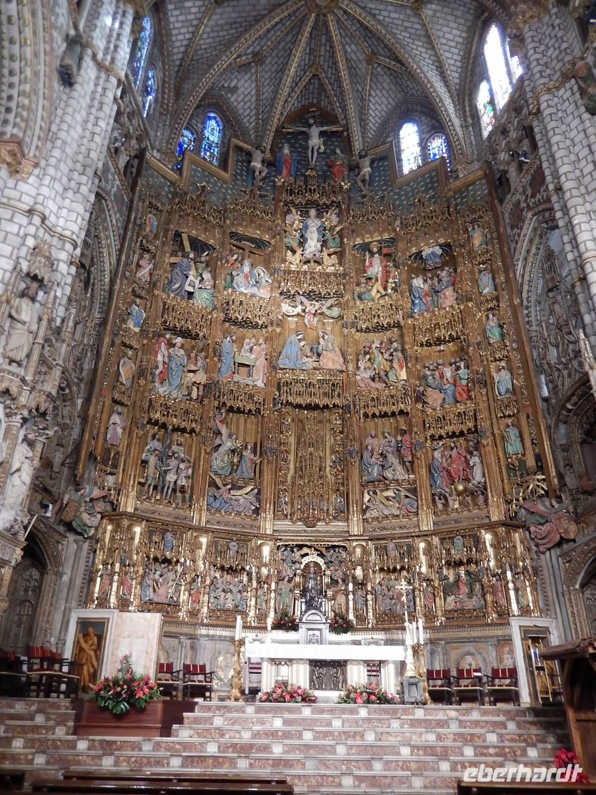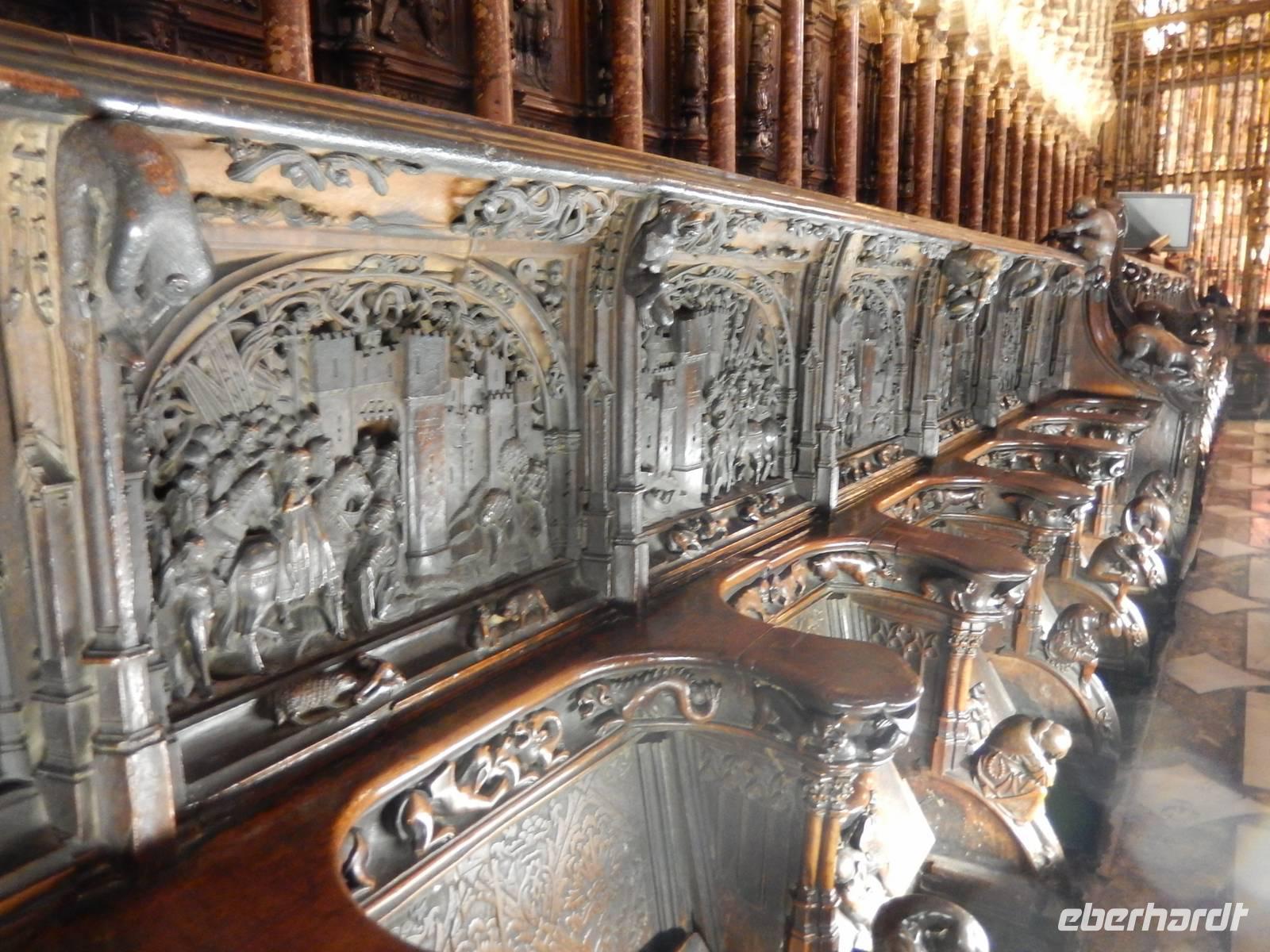 Eines der Wahrzeichen der Stadt, den Arco de la Sangre, lernten wir bei einer Stadtführung kennen. Der aus Cervantes "Don Quijote" bekannte Bogen mit dem dahinter liegenden Alcazar (Palast) ist ein traumhaftes Fotomotiv. Wir fingen bei dem Zocodover Platz an und spazierten gemeinsam durch die Straßen von Toledo. Zuerst besuchten wir die imposante Kathedrale. Dieser Dom hat 2 Türme, aber einer war nicht zu Ende gebaut worden, da dann das Geld gefehlt hatte. Von innen erinnerte uns dieser Dom an den von Sevilla oder Malaga. Später besuchten wir das berühmtes Bild von El Greco „Das Begräbnis von dem Graf Orgaz" und machten eine kleine Mittagspause an der Sonne. Weiter ging zu der jüdische Synagoge „Santa Maria La Blanca". Toledo ist ein einziges und gutes Beispiel wie damals Christen, Juden und Muslime in Friede zusammenleben konnten.
