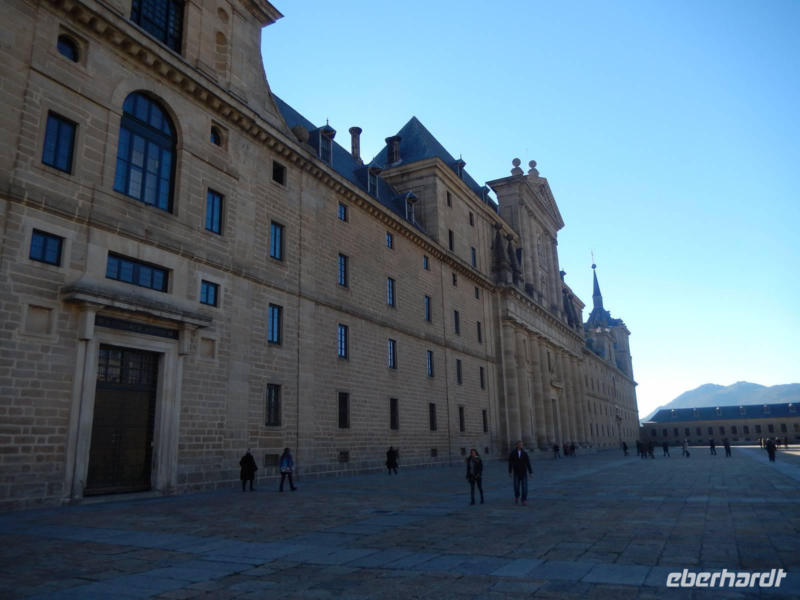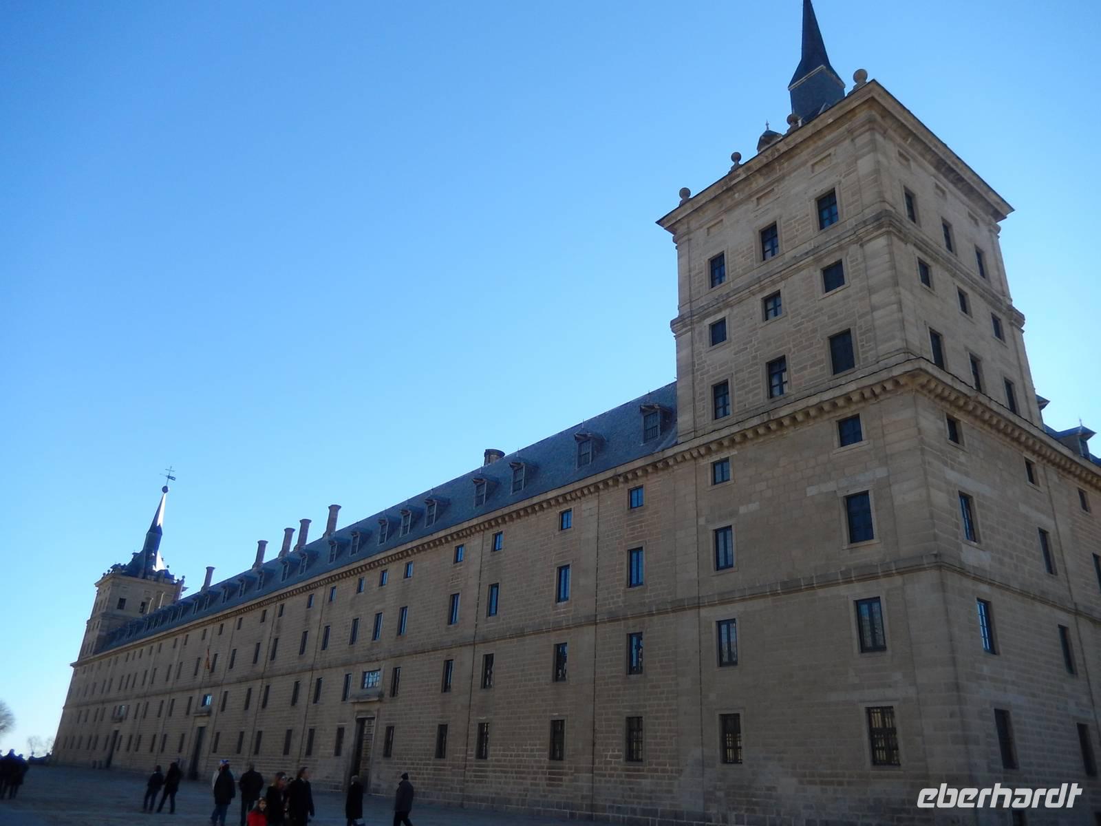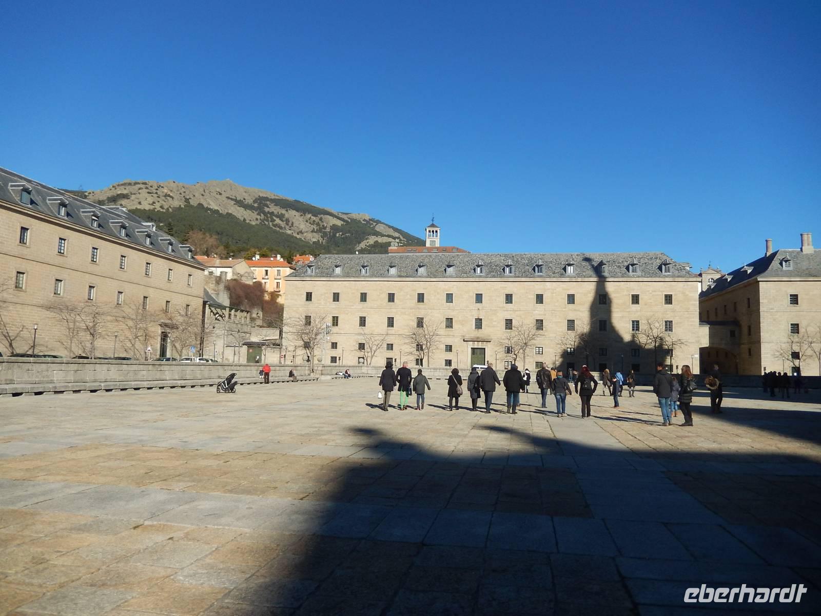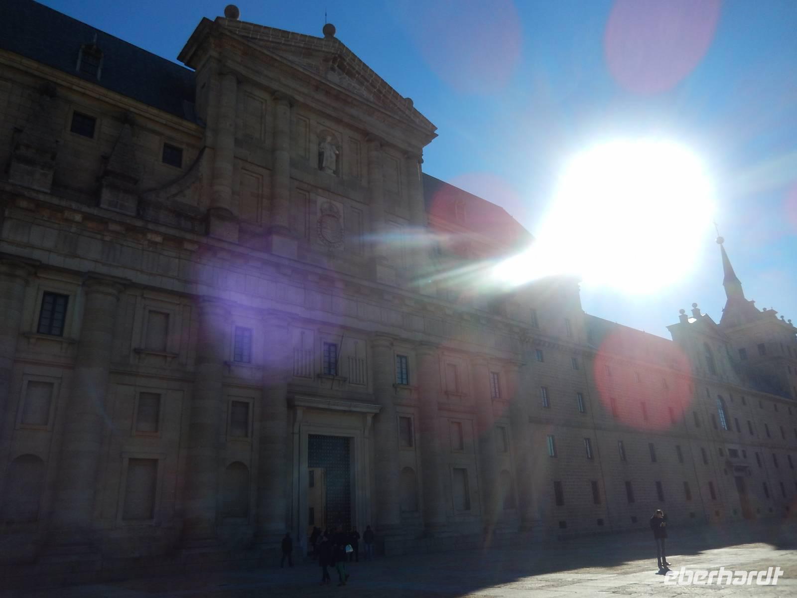 Wir fuhren in das nördliche Umland von Madrid. Zunächst fuhren wir nach El Escorial. Wir genossen einen Spaziergang durch diese historische Umgebung. Bekannt ist das Städtchen für seine einzigartige Kloster- und Schlossanlage. Der "Königliche Sitz des Sankt Laurentius von El Escorial" gilt als größter Renaissancebau der Welt und wirkt aufgrund einer eher nüchternen Außengestaltung nicht wie ein typischer Palast. Zu der pompös großen Anlage gehören eine Kirche, ein Kloster, der eigentliche Königspalast, eine Schule und eine Bibliothek. Phillip der II. wollte der Welt damals zeigen, wie groß seine Macht war, da man dieses Schloss schon von weit her und auf dem Weg von Madrid gut bestaunen konnte. Eigentlich wäre heute am 1.Januar alles geschlossen, aber wir hatten Glück und die Kirche war für den Gottesdienst geöffnet. Obwohl die Kirche heute eigentlich für Touristen geschlossen ist, bekamen wir die Möglichkeit, einen Blick hinein zu werfen.
