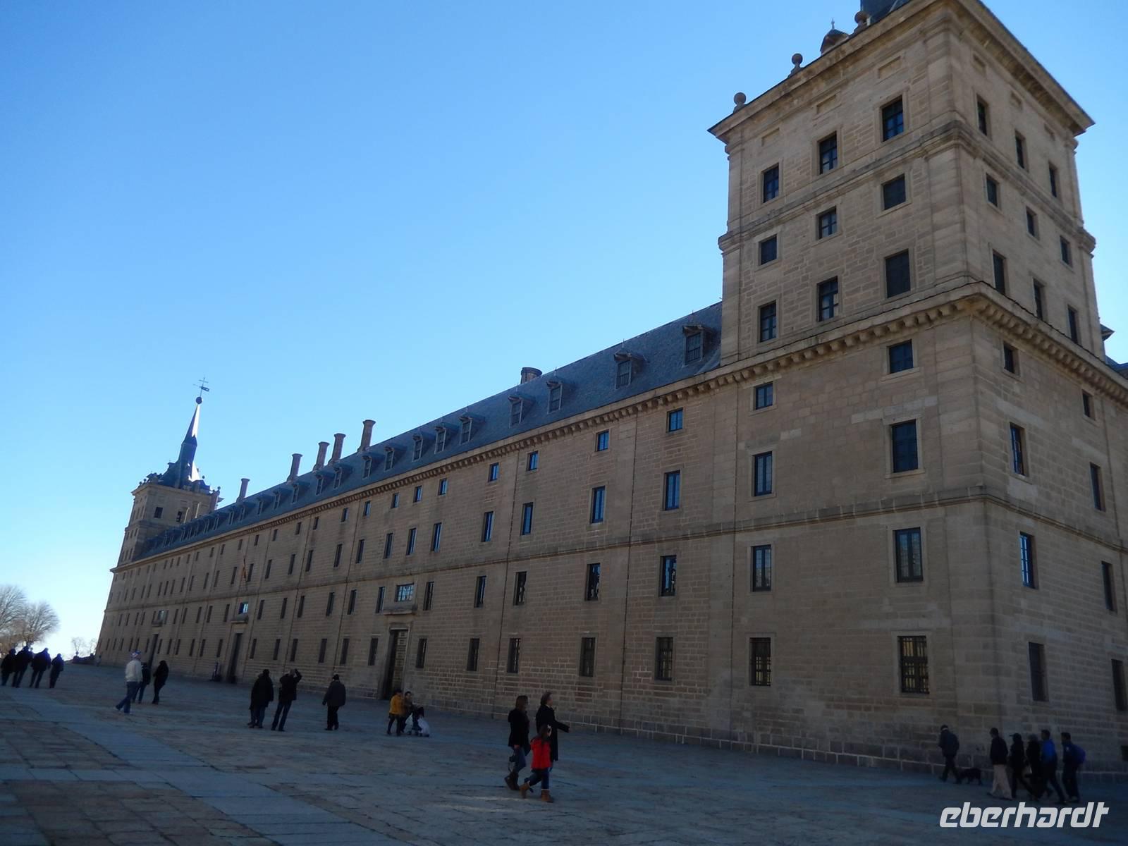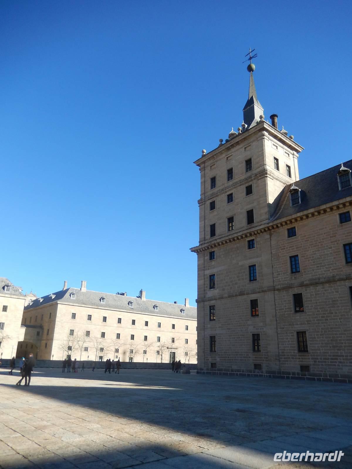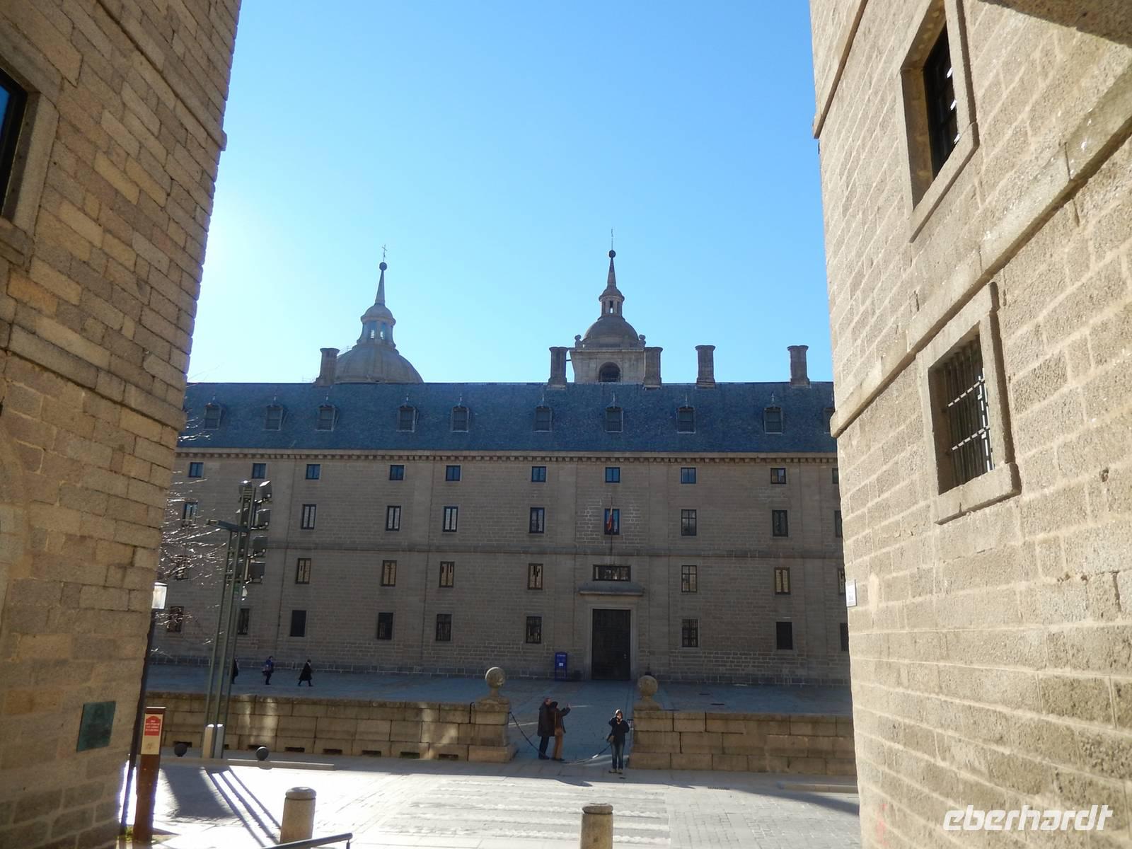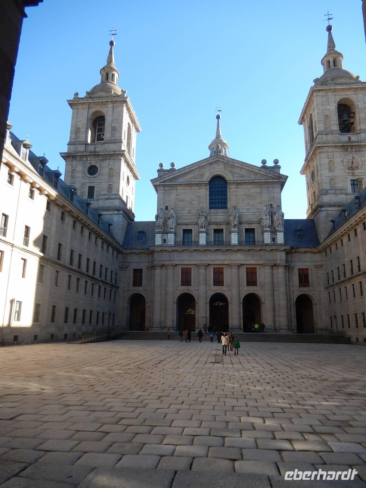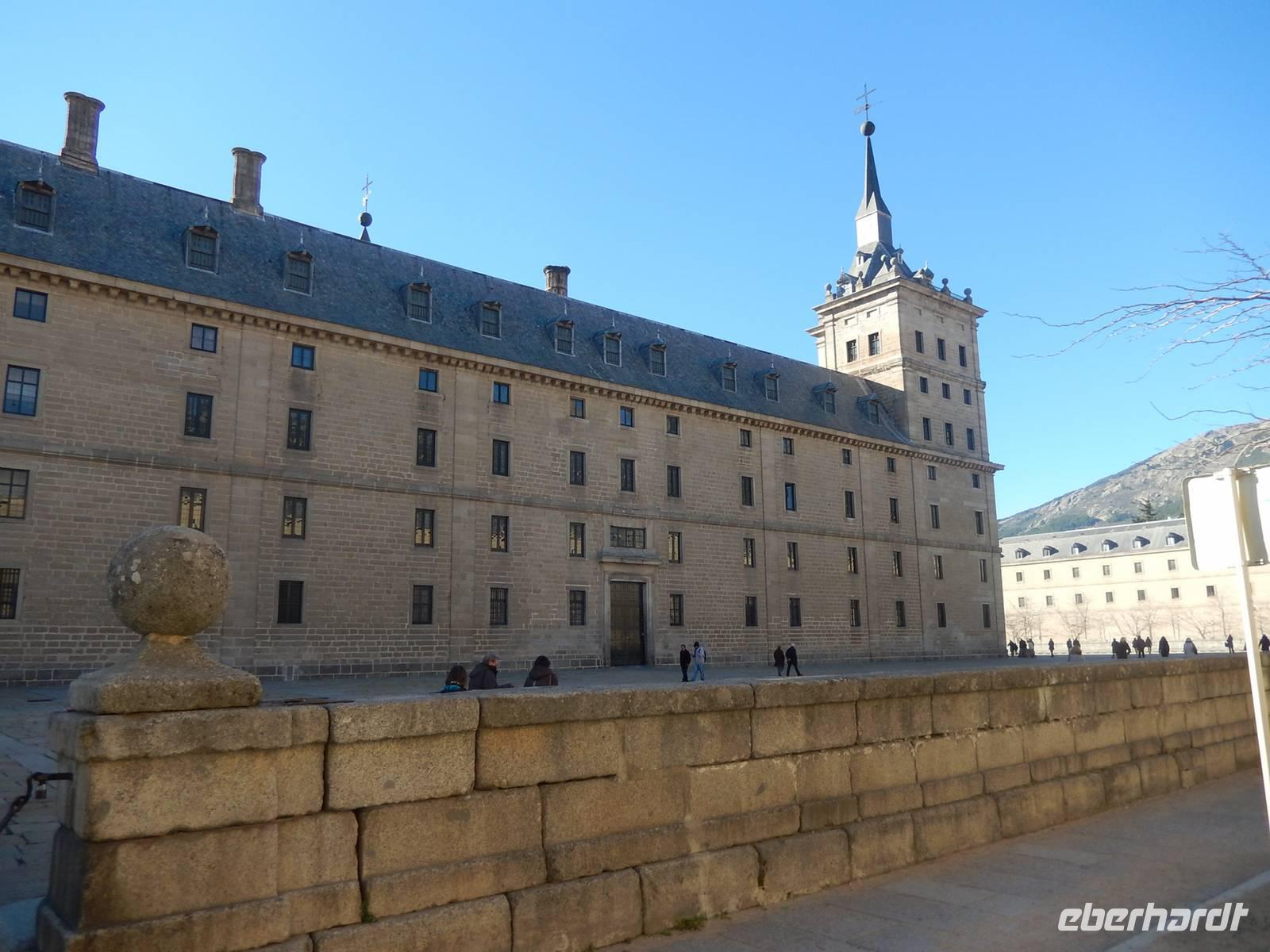 Wir fuhren in das nördliche Umland von Madrid. Zunächst fuhren wir nach El Escorial. Wir genossen einen Spaziergang durch diese historische Umgebung. Bekannt ist das Städtchen für seine einzigartige Kloster- und Schlossanlage. Der "Königliche Sitz des Sankt Laurentius von El Escorial" gilt als größter Renaissancebau der Welt und wirkt aufgrund einer eher nüchternen Außengestaltung nicht wie ein typischer Palast. Zu der pompös großen Anlage gehören eine Kirche, ein Kloster, der eigentliche Königspalast, eine Schule und eine Bibliothek. Phillip der II. wollte der Welt damals zeigen, wie groß seine Macht war, da man dieses Schloss schon von weit her und auf dem Weg von Madrid gut bestaunen konnte. Eigentlich wäre heute am 1.Januar alles geschlossen, aber wir hatten Glück und die Kirche war für den Gottesdienst geöffnet. Obwohl die Kirche heute eigentlich für Touristen geschlossen ist, bekamen wir die Möglichkeit, einen Blick hinein zu werfen.