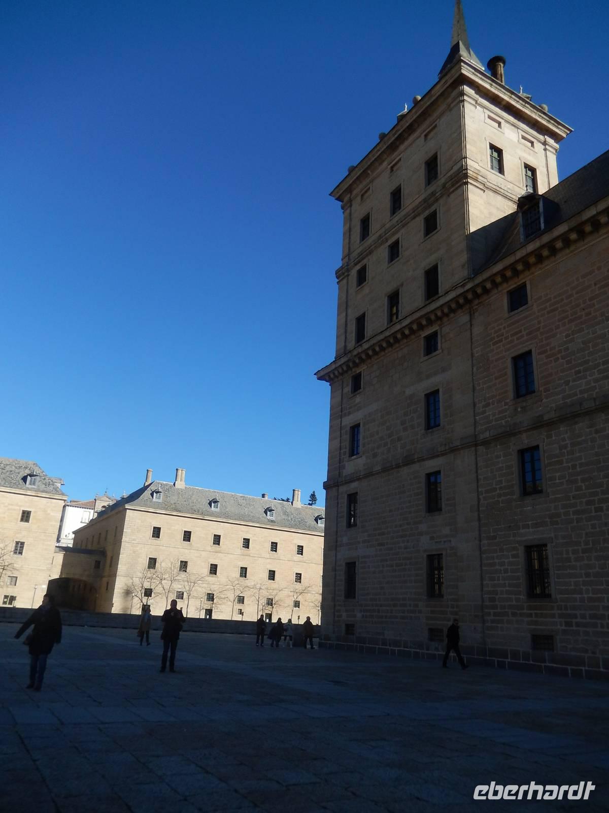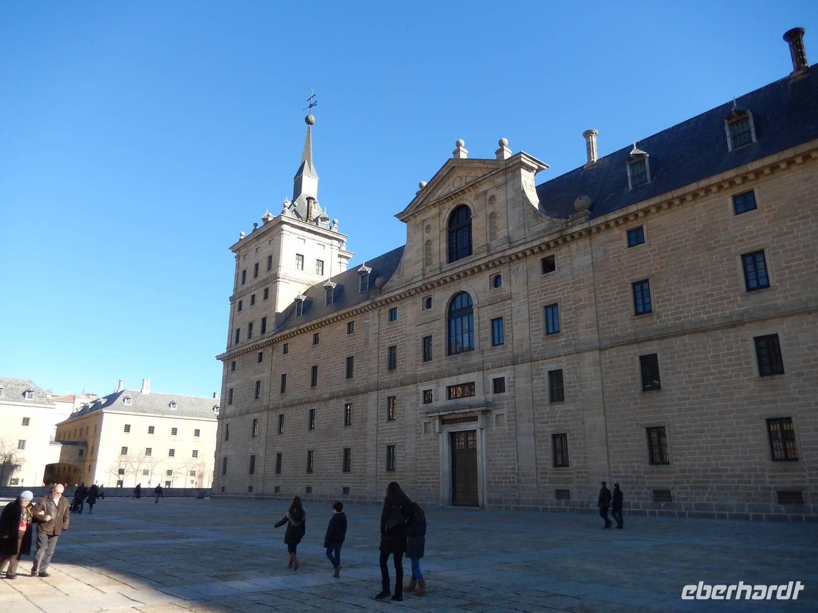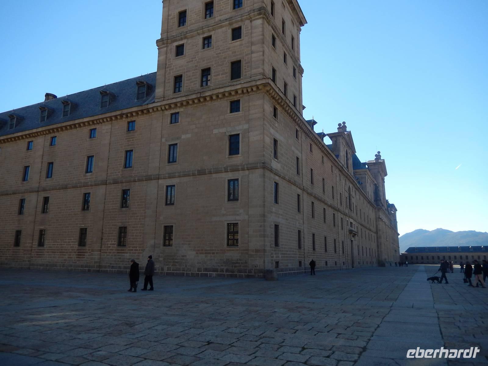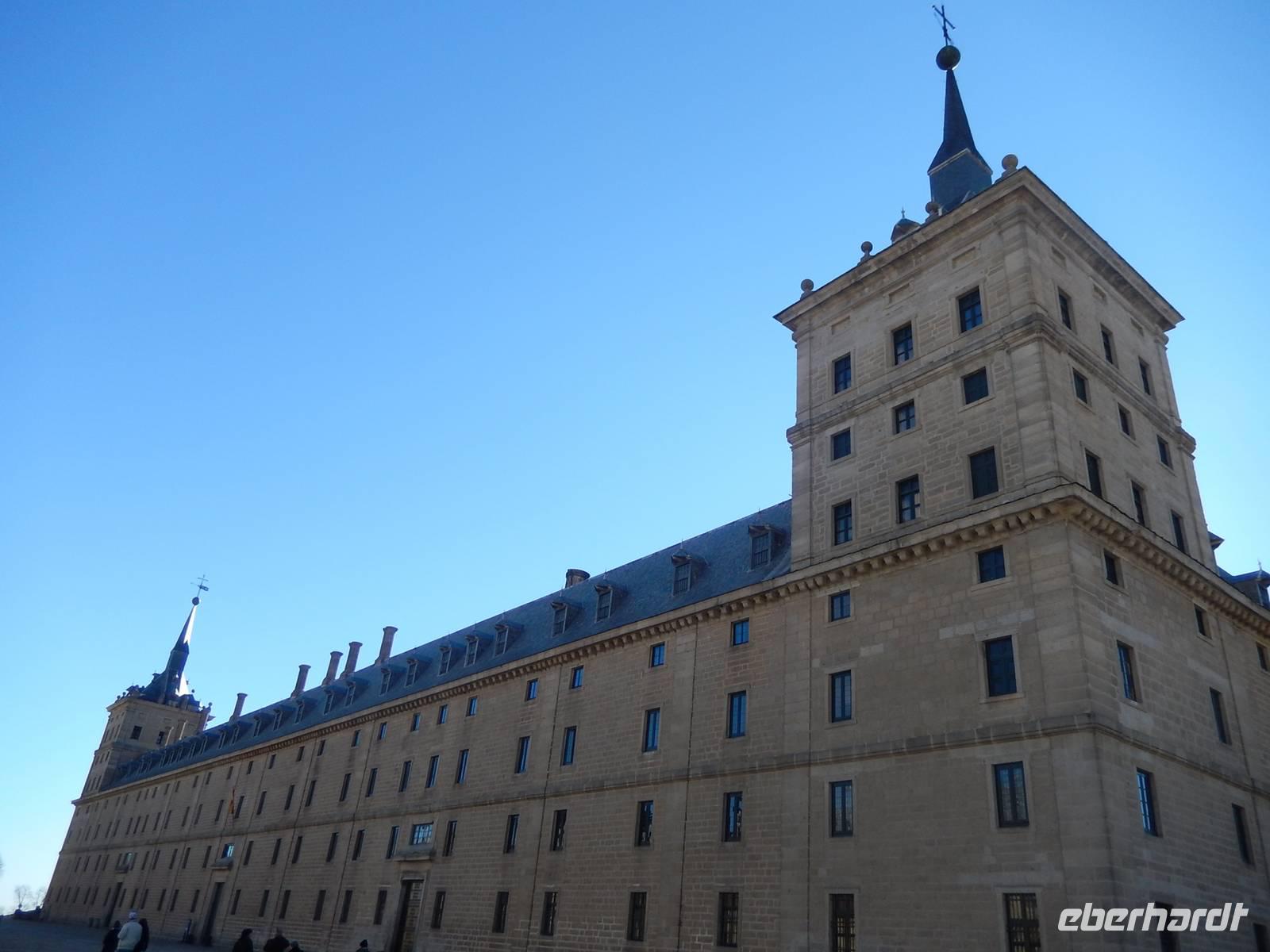 Wir fuhren in das nördliche Umland von Madrid. Zunächst fuhren wir nach El Escorial. Wir genossen einen Spaziergang durch diese historische Umgebung. Bekannt ist das Städtchen für seine einzigartige Kloster- und Schlossanlage. Der "Königliche Sitz des Sankt Laurentius von El Escorial" gilt als größter Renaissancebau der Welt und wirkt aufgrund einer eher nüchternen Außengestaltung nicht wie ein typischer Palast. Zu der pompös großen Anlage gehören eine Kirche, ein Kloster, der eigentliche Königspalast, eine Schule und eine Bibliothek. Phillip der II. wollte der Welt damals zeigen, wie groß seine Macht war, da man dieses Schloss schon von weit her und auf dem Weg von Madrid gut bestaunen konnte. Eigentlich wäre heute am 1.Januar alles geschlossen, aber wir hatten Glück und die Kirche war für den Gottesdienst geöffnet. Obwohl die Kirche heute eigentlich für Touristen geschlossen ist, bekamen wir die Möglichkeit, einen Blick hinein zu werfen.