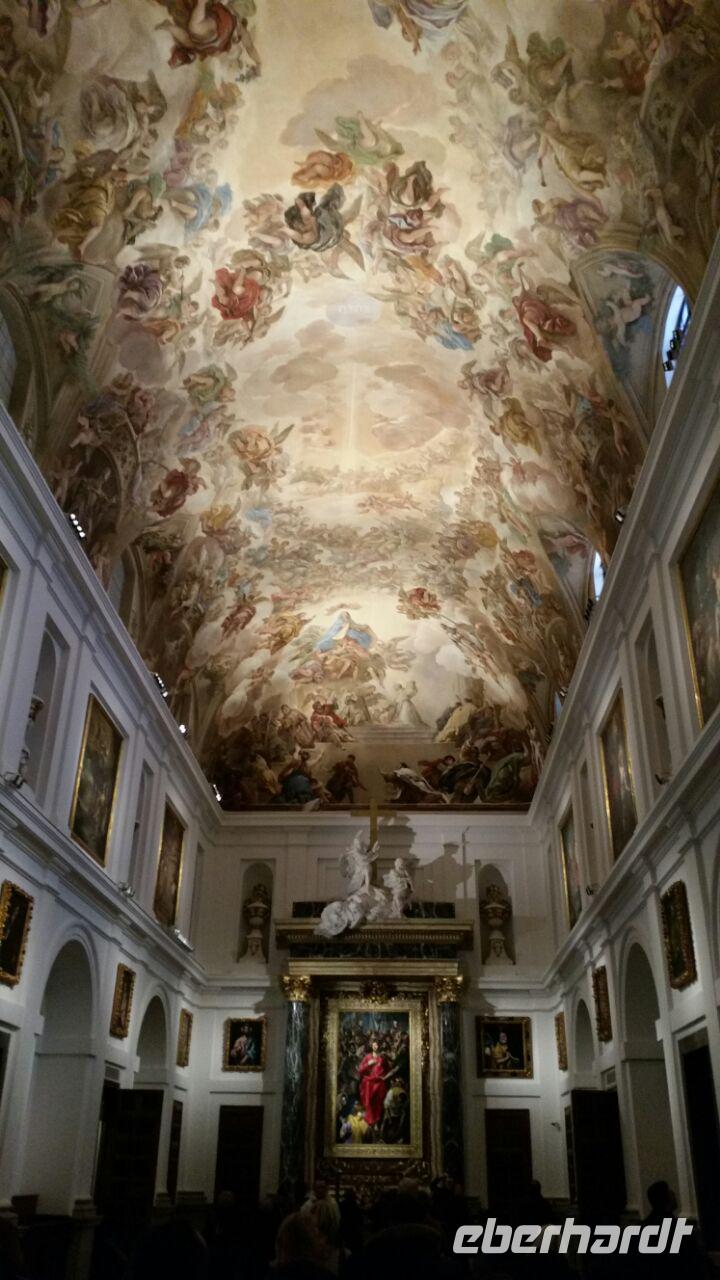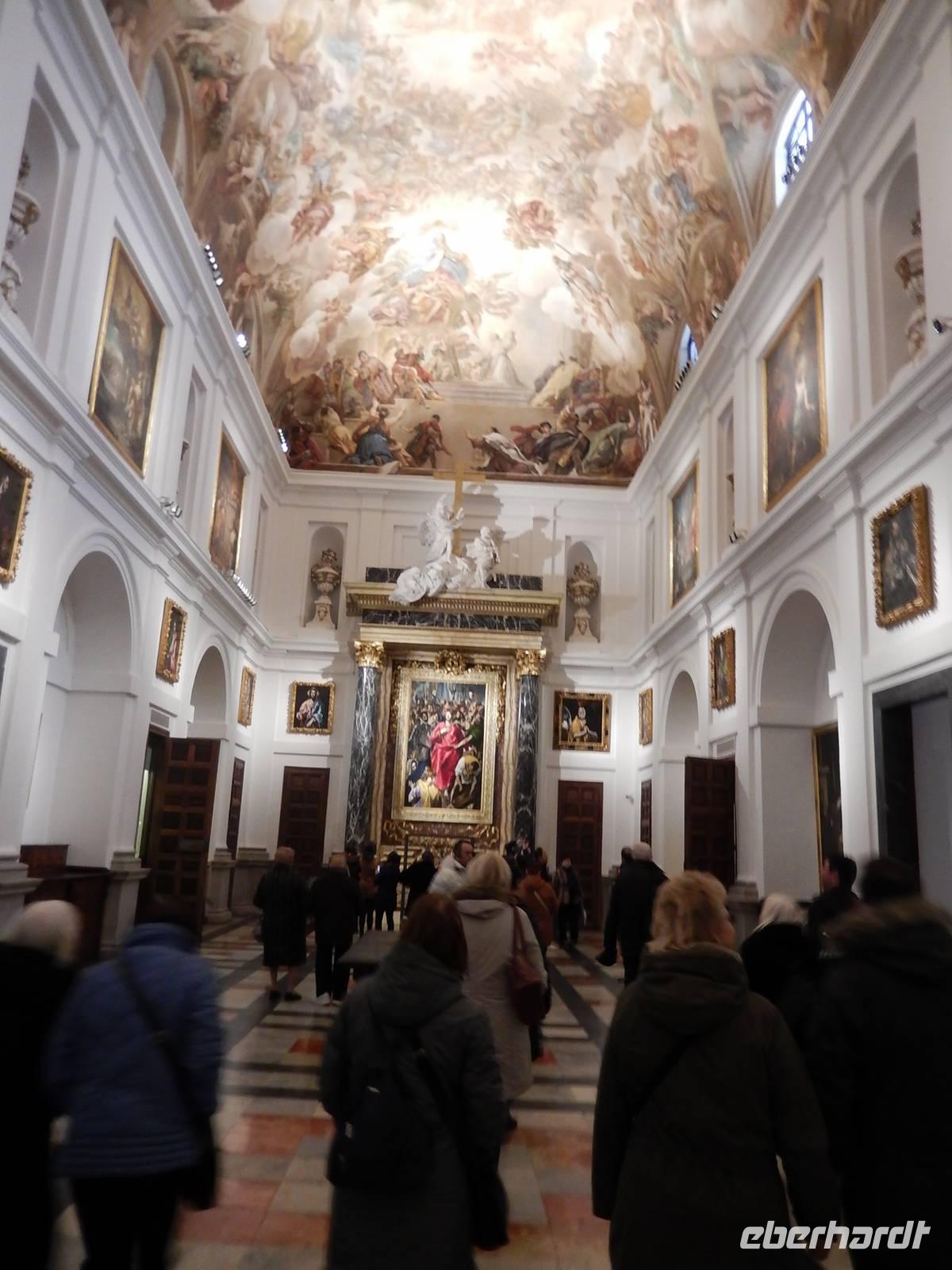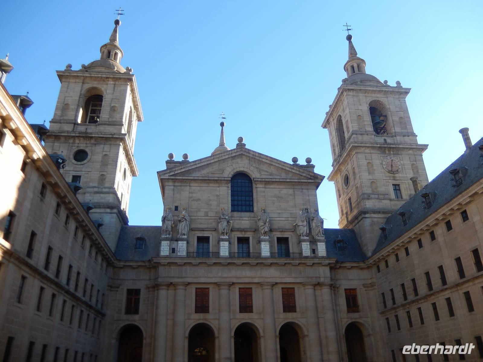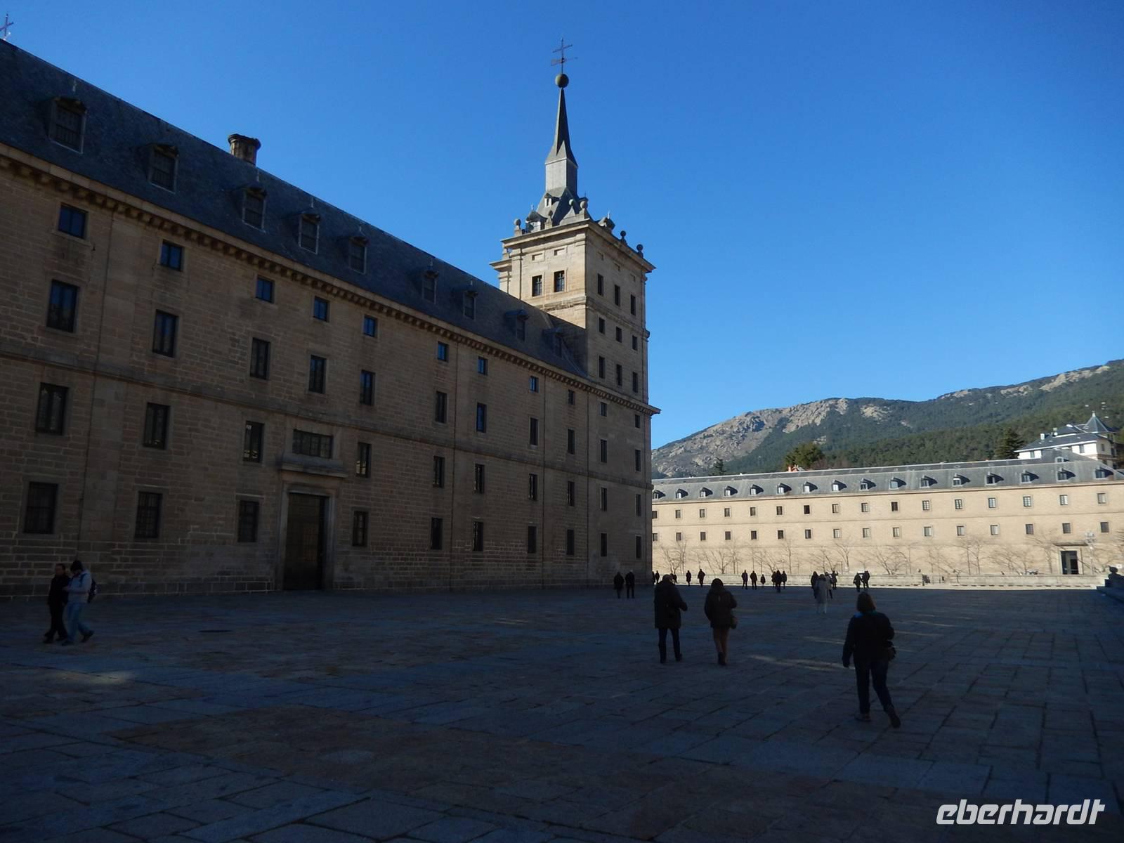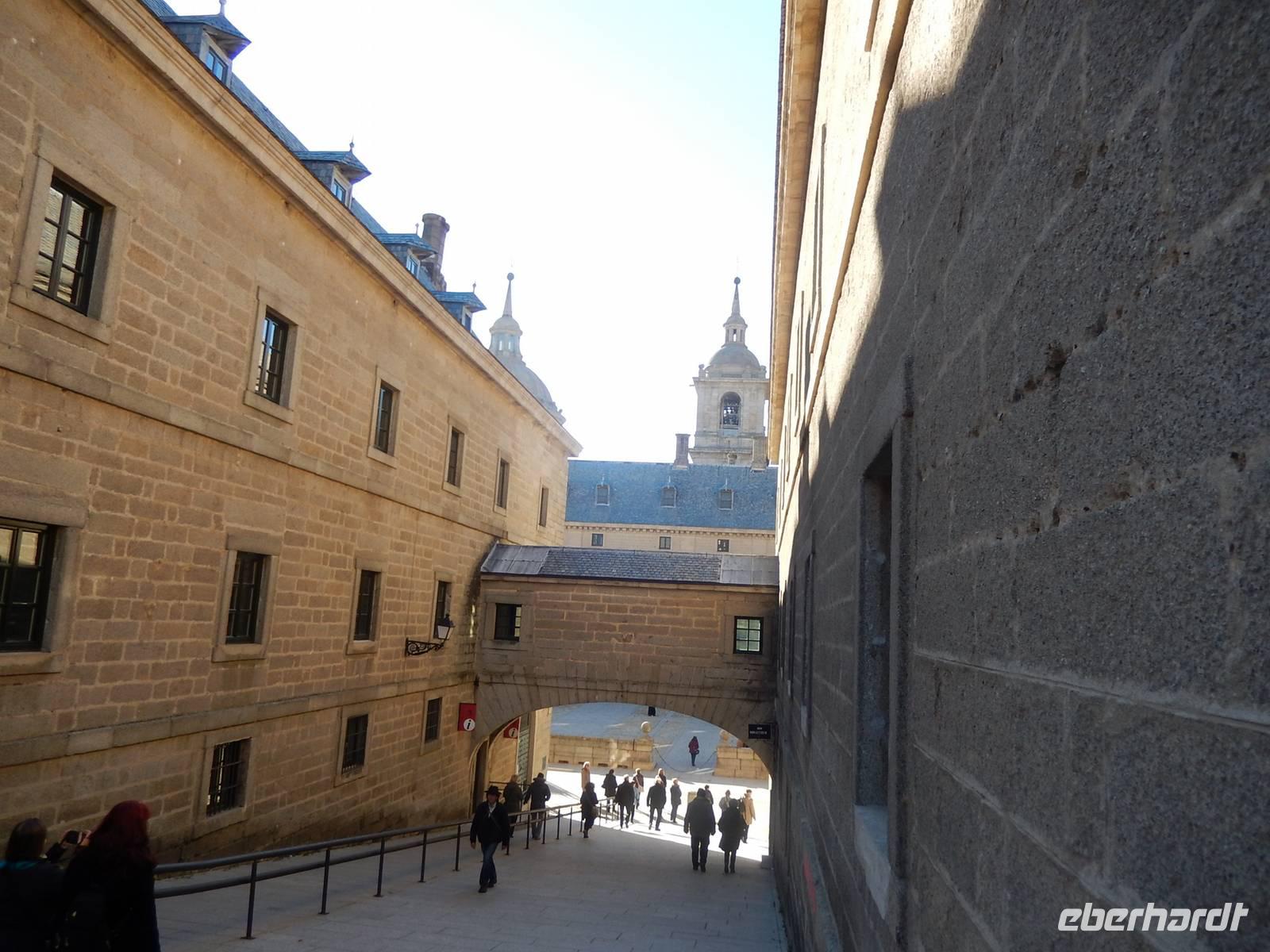 Wir fuhren in das nördliche Umland von Madrid. Zunächst fuhren wir nach El Escorial. Wir genossen einen Spaziergang durch diese historische Umgebung. Bekannt ist das Städtchen für seine einzigartige Kloster- und Schlossanlage. Der "Königliche Sitz des Sankt Laurentius von El Escorial" gilt als größter Renaissancebau der Welt und wirkt aufgrund einer eher nüchternen Außengestaltung nicht wie ein typischer Palast. Zu der pompös großen Anlage gehören eine Kirche, ein Kloster, der eigentliche Königspalast, eine Schule und eine Bibliothek. Phillip der II. wollte der Welt damals zeigen, wie groß seine Macht war, da man dieses Schloss schon von weit her und auf dem Weg von Madrid gut bestaunen konnte. Eigentlich wäre heute am 1.Januar alles geschlossen, aber wir hatten Glück und die Kirche war für den Gottesdienst geöffnet. Obwohl die Kirche heute eigentlich für Touristen geschlossen ist, bekamen wir die Möglichkeit, einen Blick hinein zu werfen.