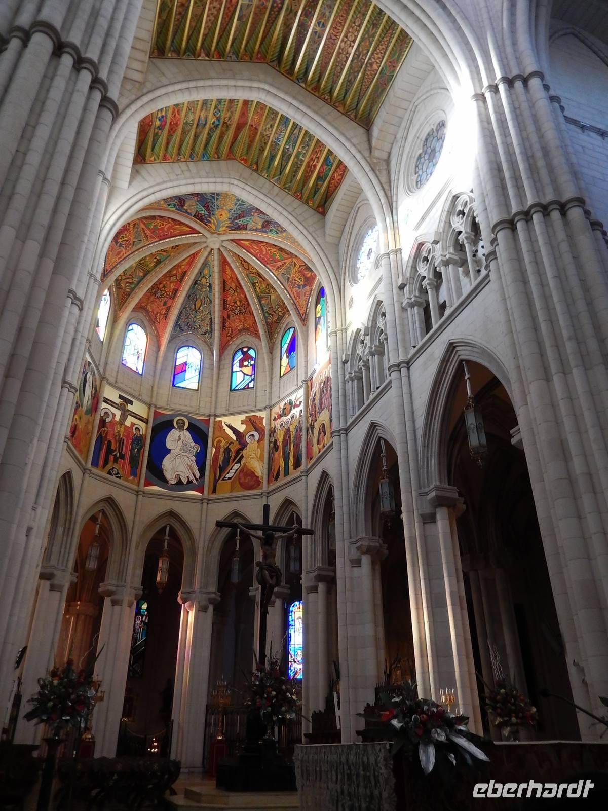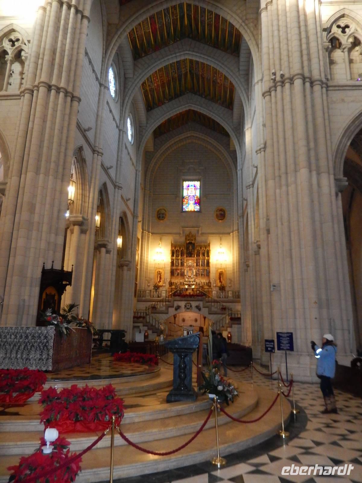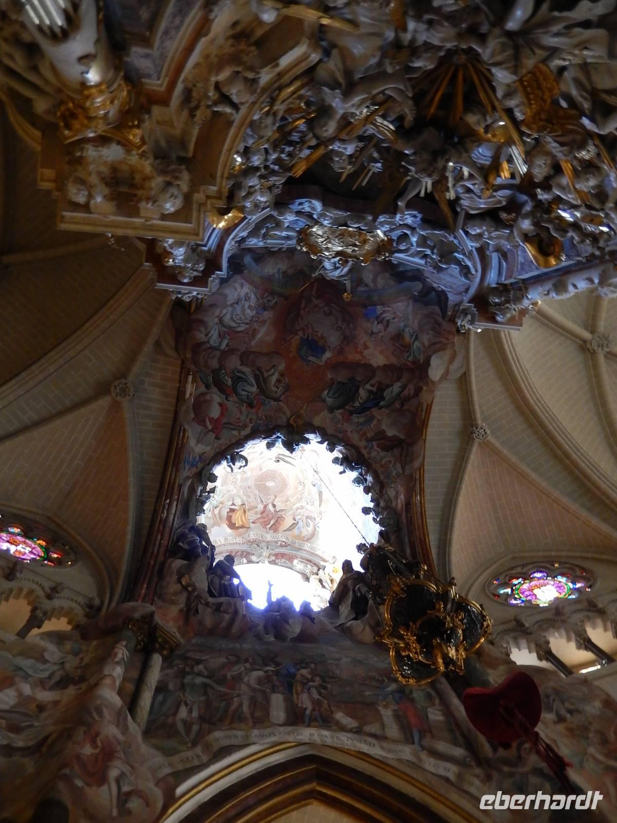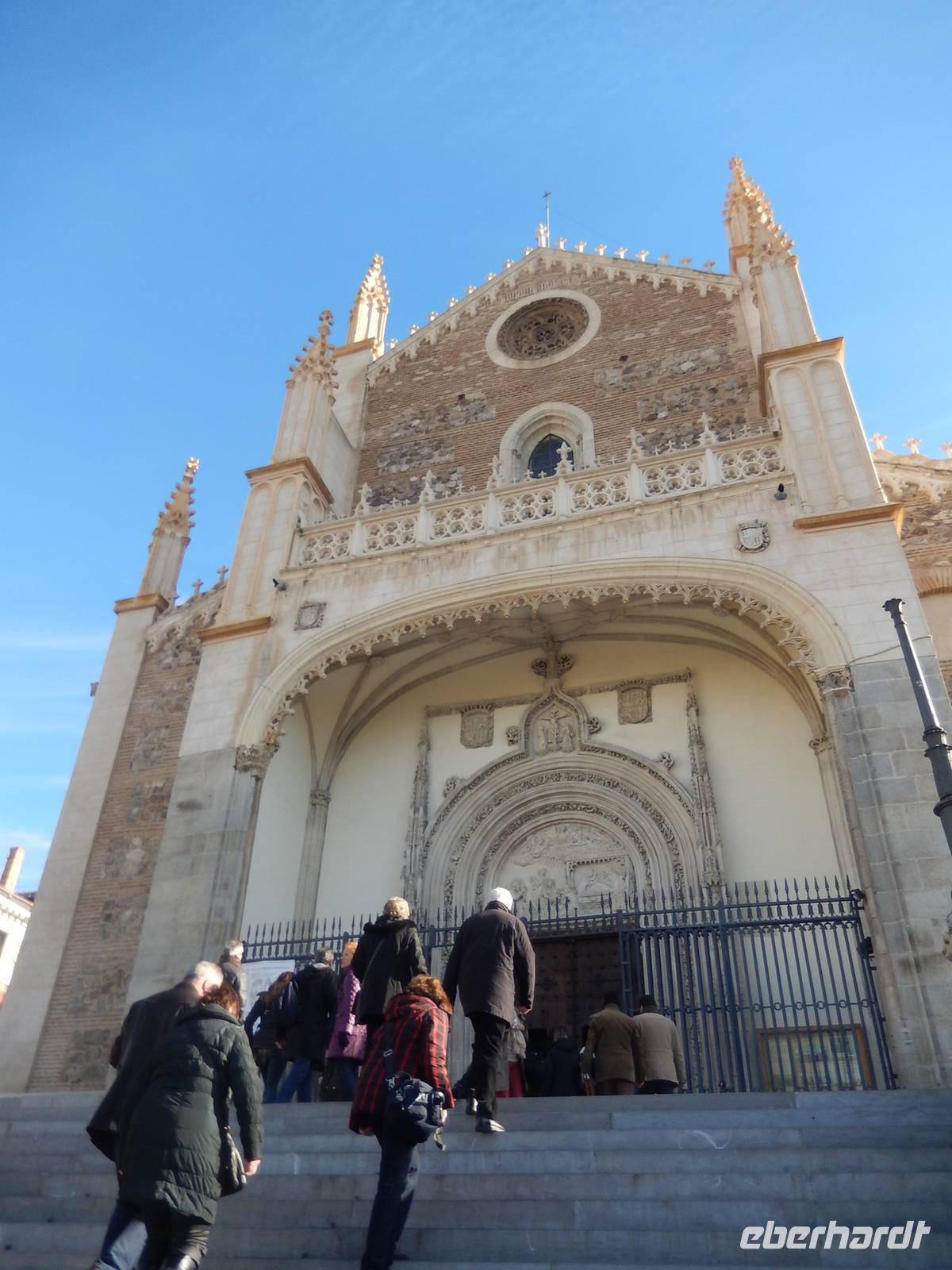 Wir fuhren in das nördliche Umland von Madrid. Zunächst fuhren wir nach El Escorial. Wir genossen einen Spaziergang durch diese historische Umgebung. Bekannt ist das Städtchen für seine einzigartige Kloster- und Schlossanlage. Der "Königliche Sitz des Sankt Laurentius von El Escorial" gilt als größter Renaissancebau der Welt und wirkt aufgrund einer eher nüchternen Außengestaltung nicht wie ein typischer Palast. Zu der pompös großen Anlage gehören eine Kirche, ein Kloster, der eigentliche Königspalast, eine Schule und eine Bibliothek. Phillip der II. wollte der Welt damals zeigen, wie groß seine Macht war, da man dieses Schloss schon von weit her und auf dem Weg von Madrid gut bestaunen konnte. Eigentlich wäre heute am 1.Januar alles geschlossen, aber wir hatten Glück und die Kirche war für den Gottesdienst geöffnet. Obwohl die Kirche heute eigentlich für Touristen geschlossen ist, bekamen wir die Möglichkeit, einen Blick hinein zu werfen.