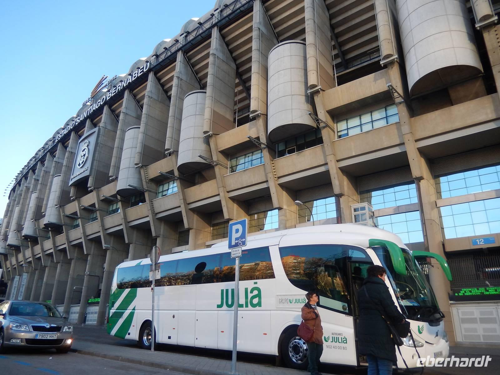 Die ersten Stunden des Vormittags des Neujahrs standen uns zur freien Verfügung. Nach einem späten Frühstück waren Segovia und El Escorial die Ziele unseres halbtägigen Ausfluges. Erster Stopp war heute über die Castellana-Allee das Santiago Bernabeu Stadium, wo die Fußballmannschaft Real Madrid spielt.