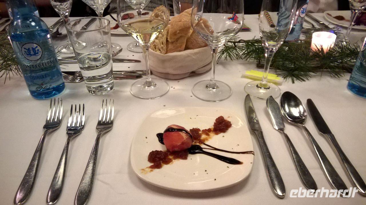 Nun konnten wir den Abend in einer typischen Tapas-Bar mit spanischem Ambiente genießen und den Tag in Ruhe ausklingen lassen. Einige wussten zunächst noch nicht, was Tapas sind, aber man lernte es schnell. Plötzlich brachte der Kellner Teller mit verschiedensten Köstlichkeiten: Chorizo, Jamon Serrano Iberico Schinken, Salami, Manchego Käse, Patatas Bravas Kartoffeln, Spanische Omelette, Pimientos de Padron, Pulpo Octopus oder Chopitos Tintenfische Dazu gab es einen guten Rotwein. Um für morgen Nacht schon einmal den Brauch mit den 12 Glückstrauben zu trainieren, bekam schon heute jeder eine kleine Tüte. Der Besitzer der Bar nahm einen Löffeln und ein Tablett, um die 12 Schäge nachzustellen. Es war ganz lustig und fast alle haben es geschafft, die 12 Trauben zur richtigen Zeit zu essen. Als Überraschung von Eberhardt TRAVEL lud ich alle meine Gästen zu einem Sidra Apfel-Sekt ein, um schon einen Tag eher auf das neue Jahr anzustoßen.