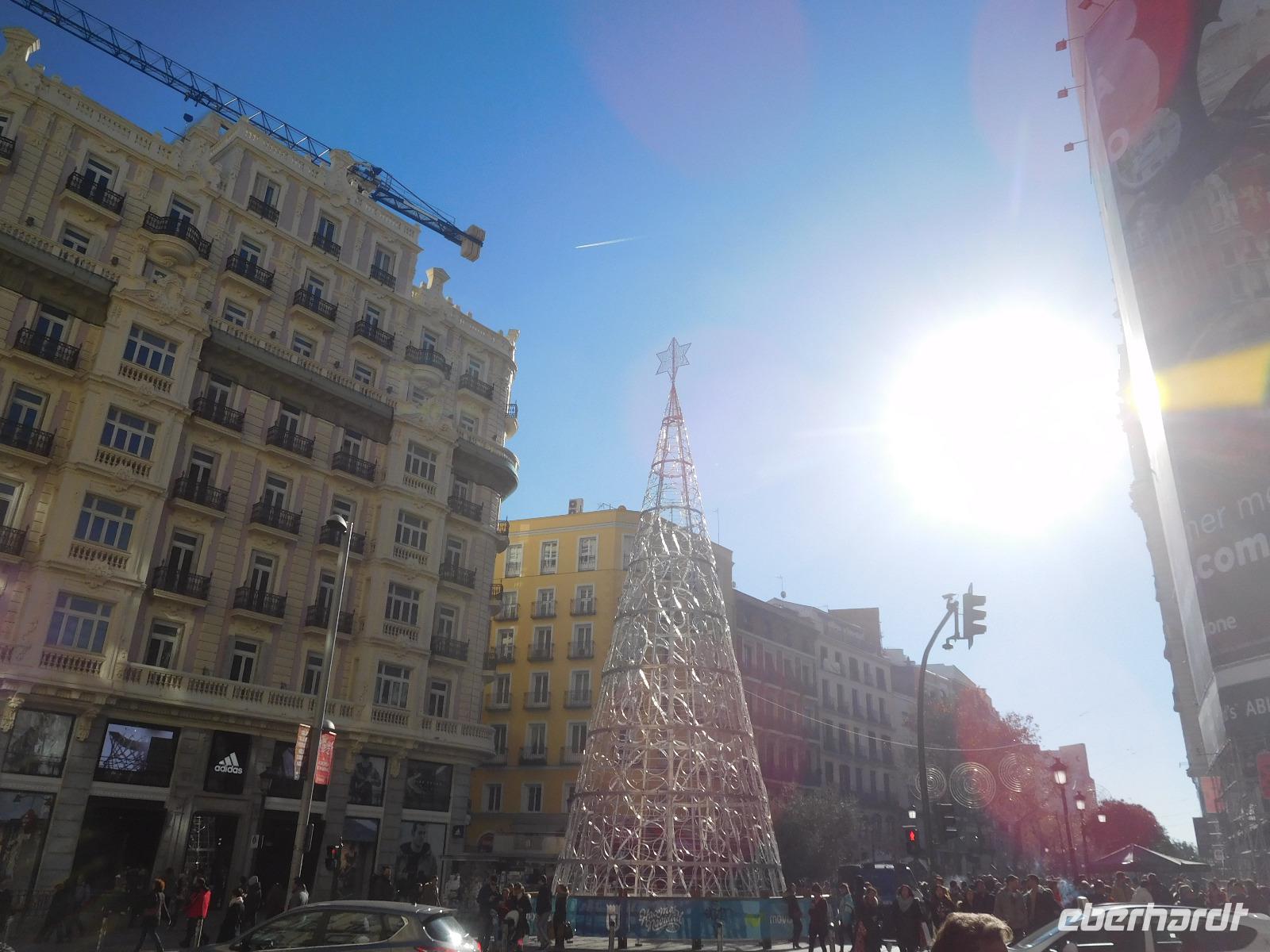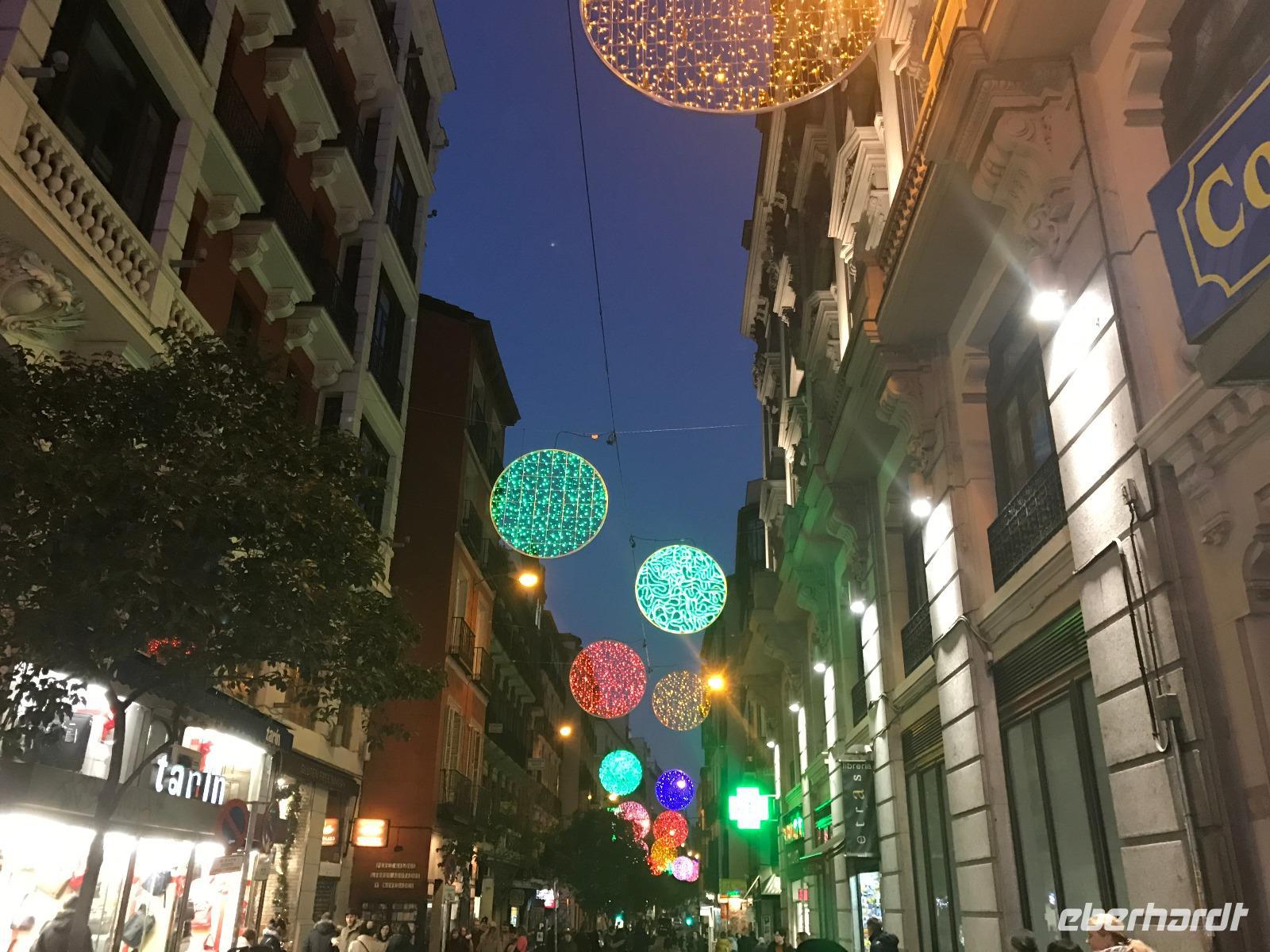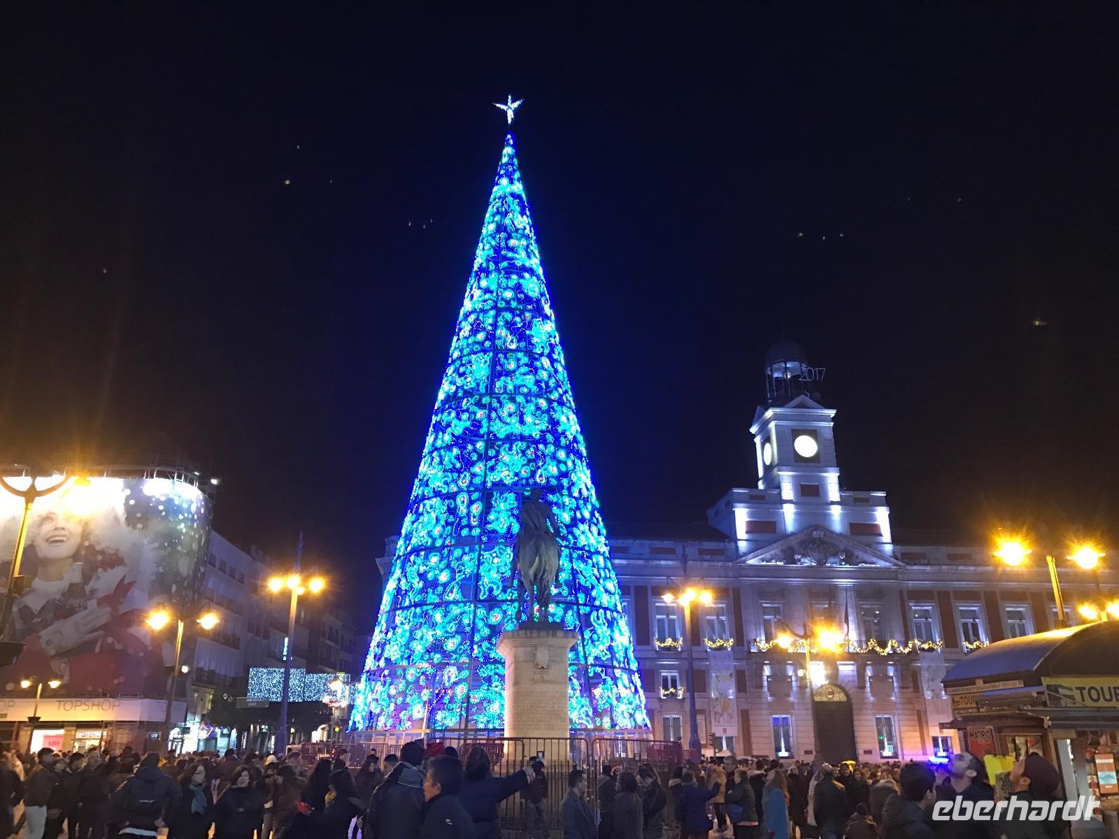 Unser Weg führte uns aber weiter zu einem spanischen Weihnachtsmarkt, auf dem man übrigens keinen Glühwein finden kann, und Punkt 12 Uhr zur Puerta del Sol, dem Platz des Vorabends. Hier hatten sich wieder tausende Menschen zusammen gefunden, um gemeinsam das Traubenessen für Silvester zu "üben". Hier mussten wir einmal quer durch die Menge, was leichter gelang als erst erwartet.