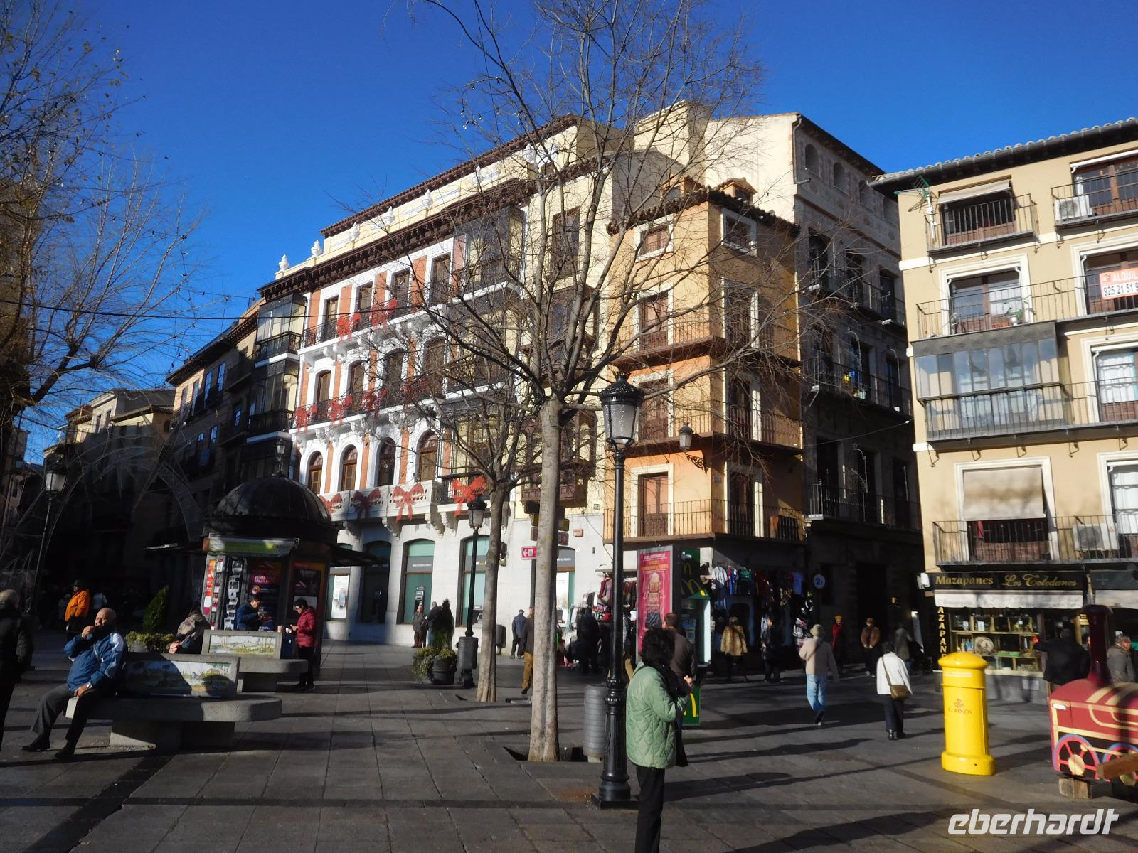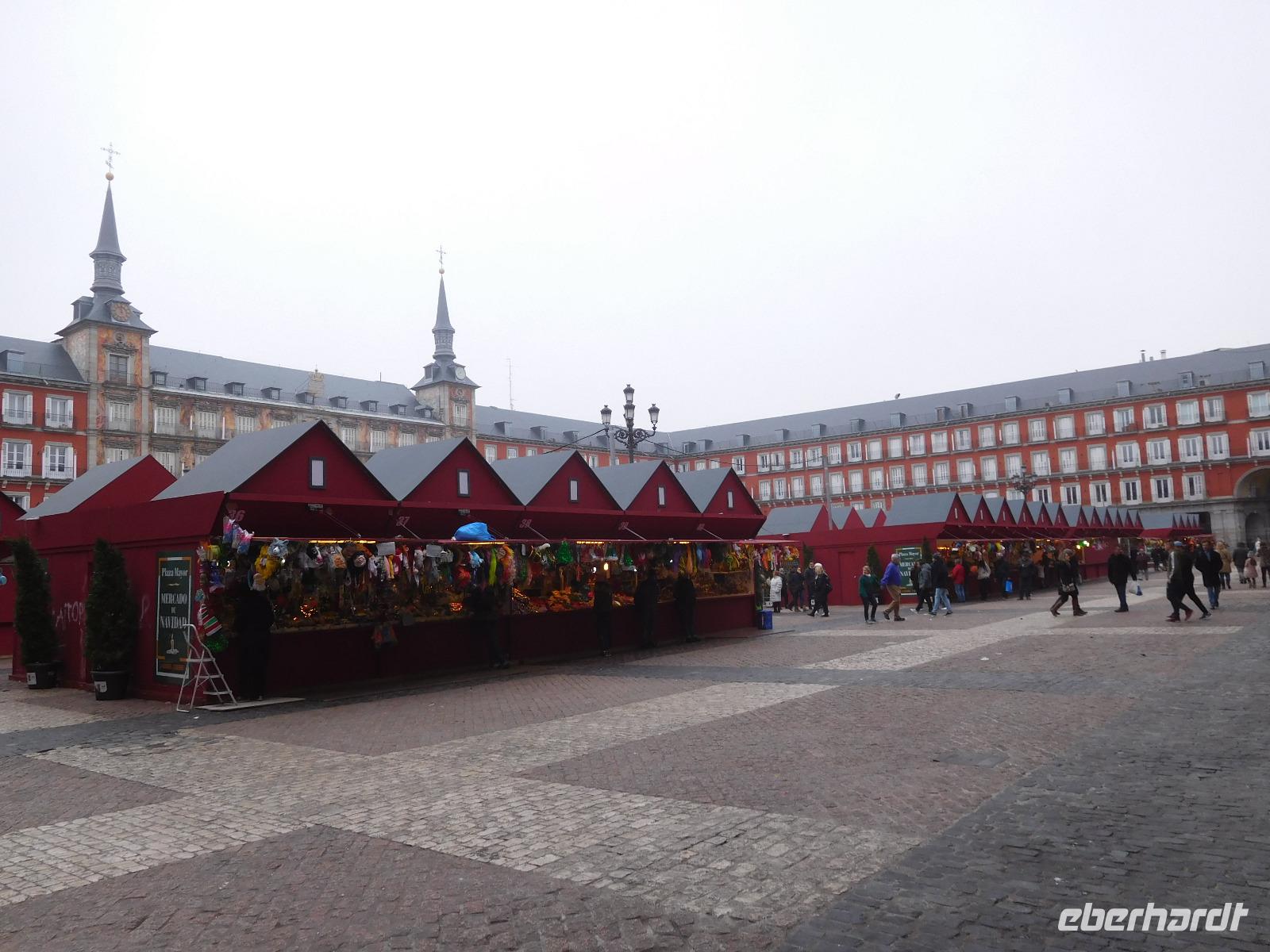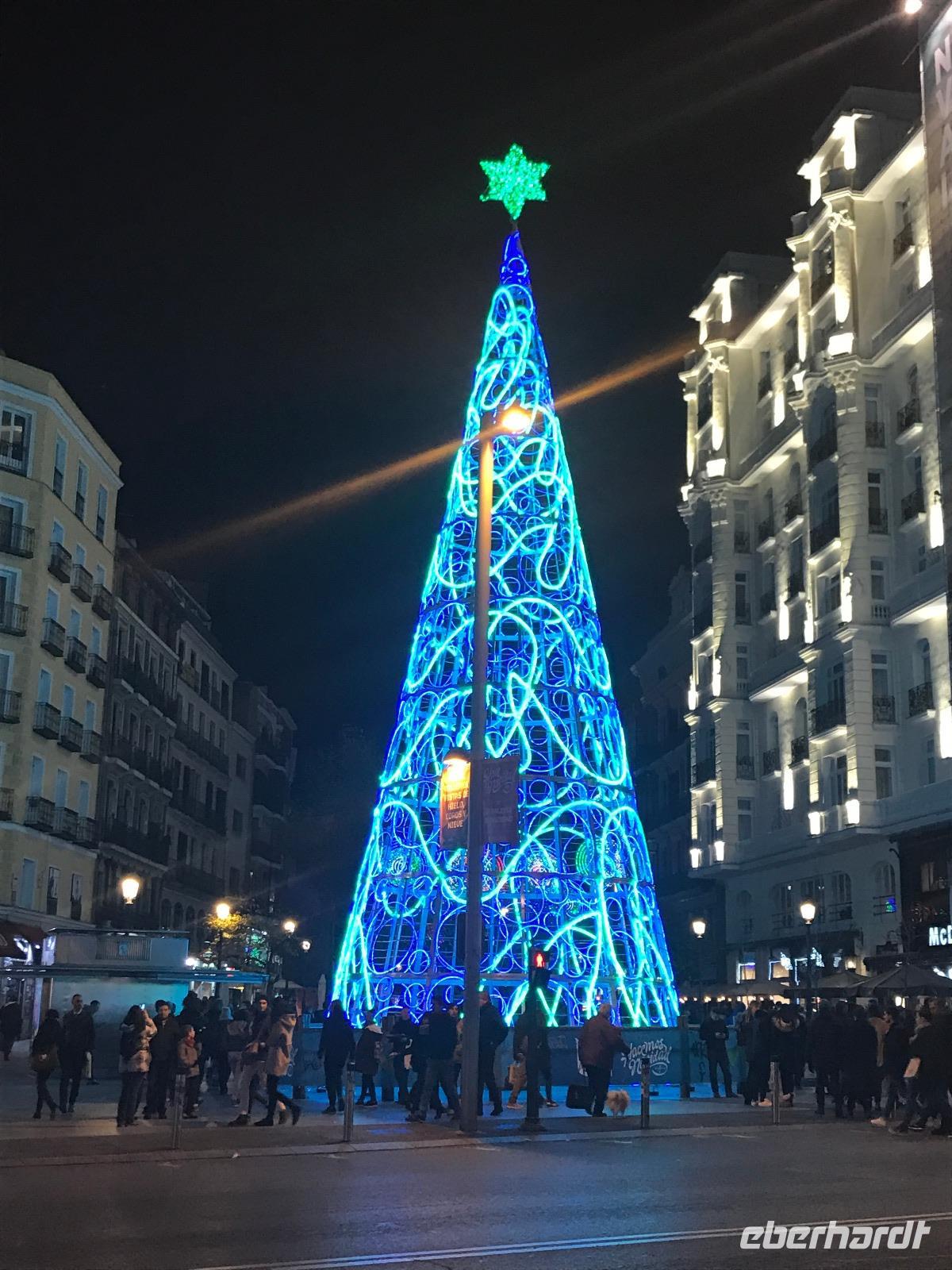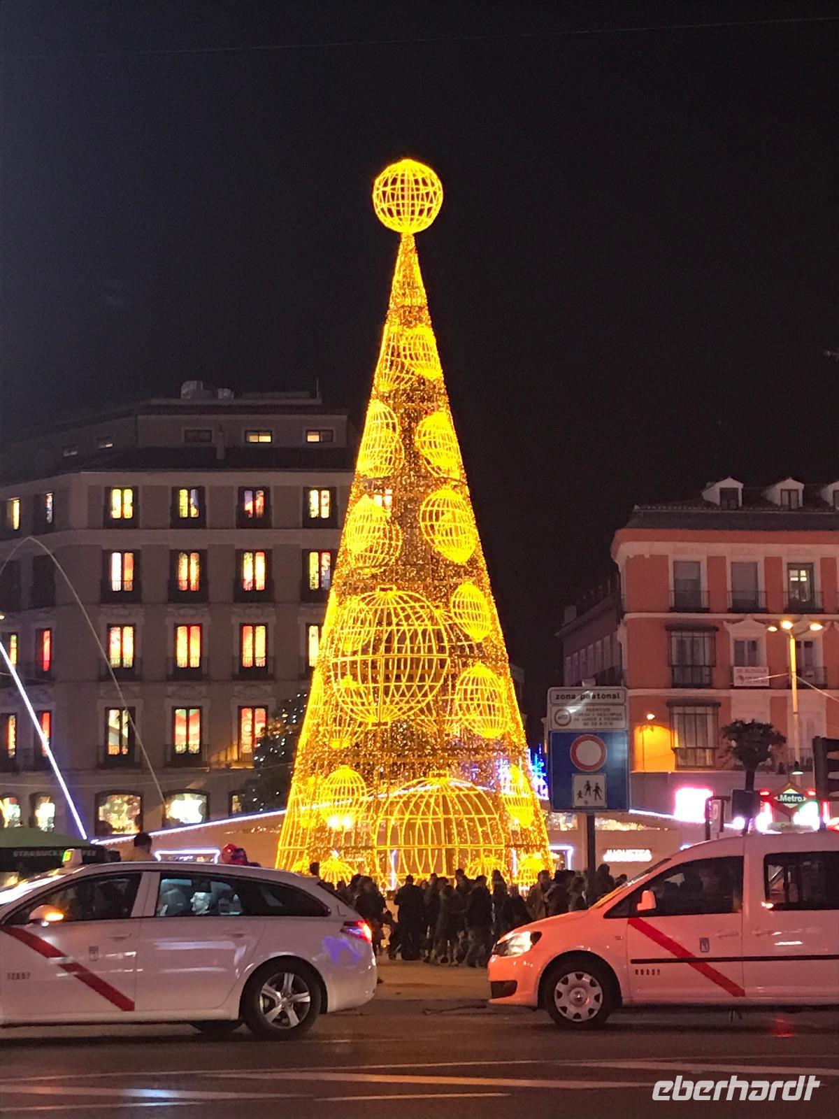 Unser Weg führte uns aber weiter zu einem spanischen Weihnachtsmarkt, auf dem man übrigens keinen Glühwein finden kann, und Punkt 12 Uhr zur Puerta del Sol, dem Platz des Vorabends. Hier hatten sich wieder tausende Menschen zusammen gefunden, um gemeinsam das Traubenessen für Silvester zu "üben". Hier mussten wir einmal quer durch die Menge, was leichter gelang als erst erwartet.