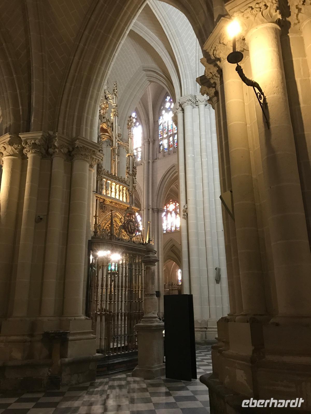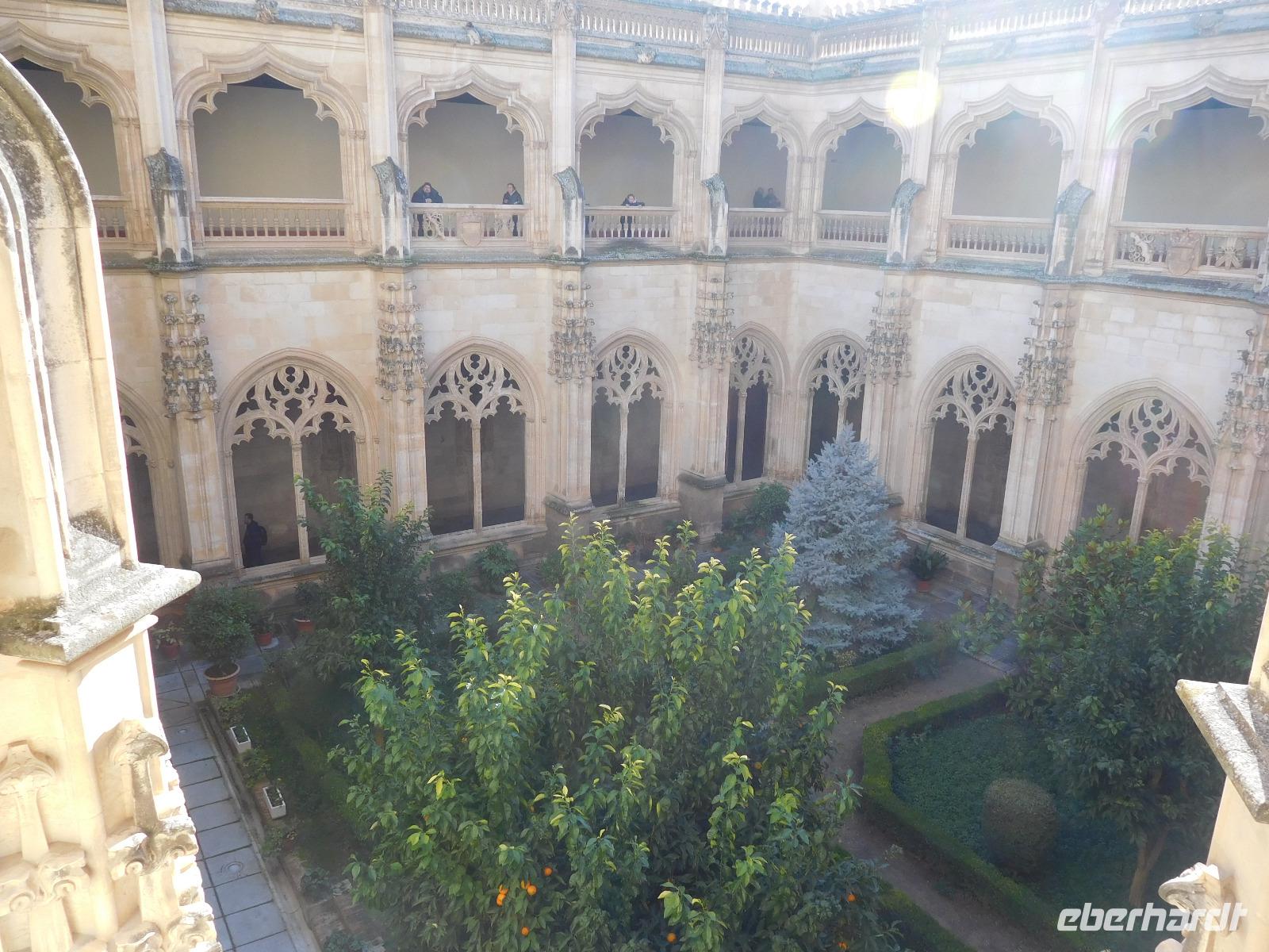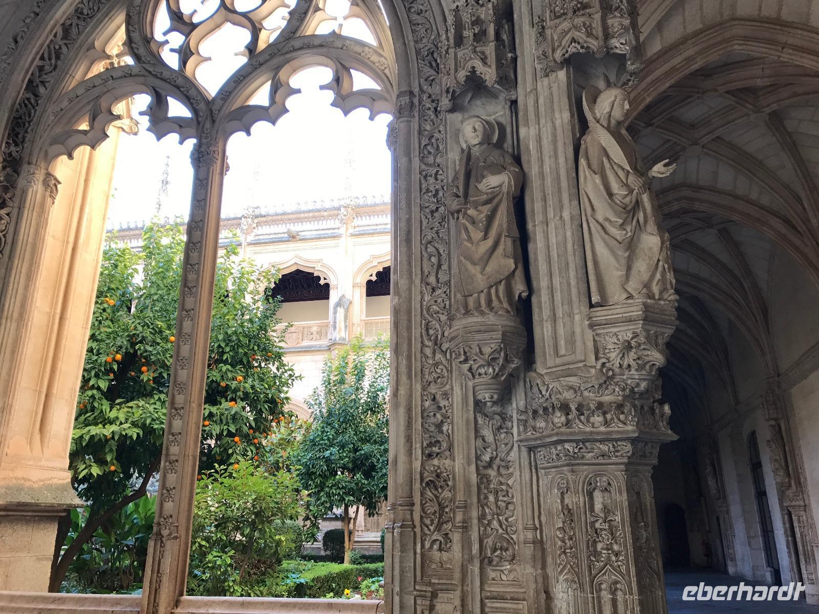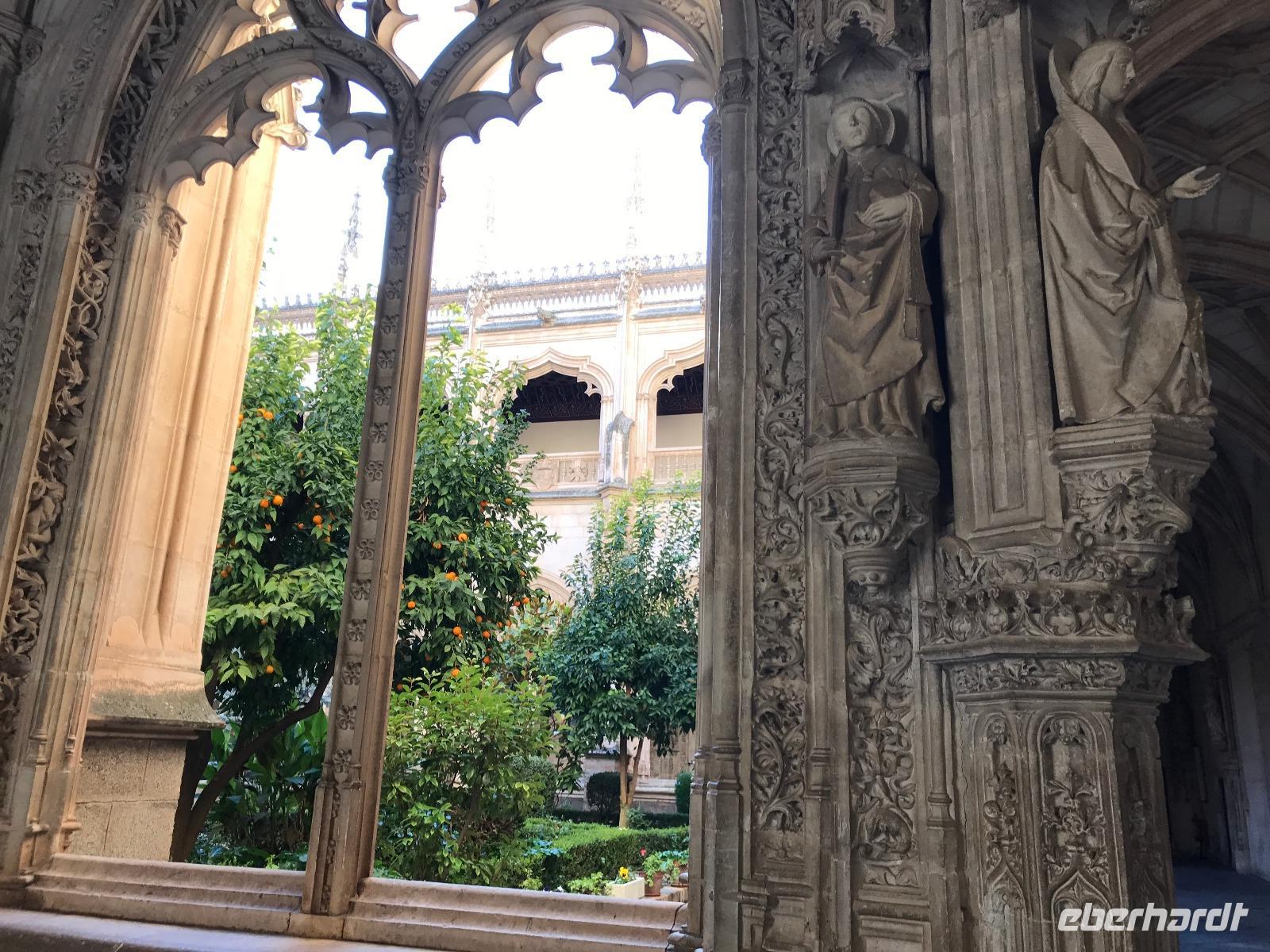 Die nächste Besichtigung führte uns zum Kloster von Toledo mit seinem detailverliebten Kreuzgang, in dessen Mitte Orangenbäume saftige Früchte trugen. Die Kirche erzählt die Geschichte von Isabel und Fernando, die siegreich um die spanische Krone kämpften und zum Dank dieses Kloster in Toledo errichten ließen.