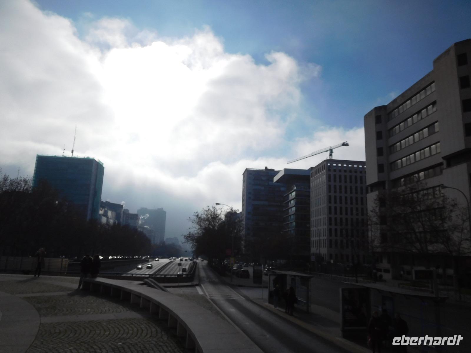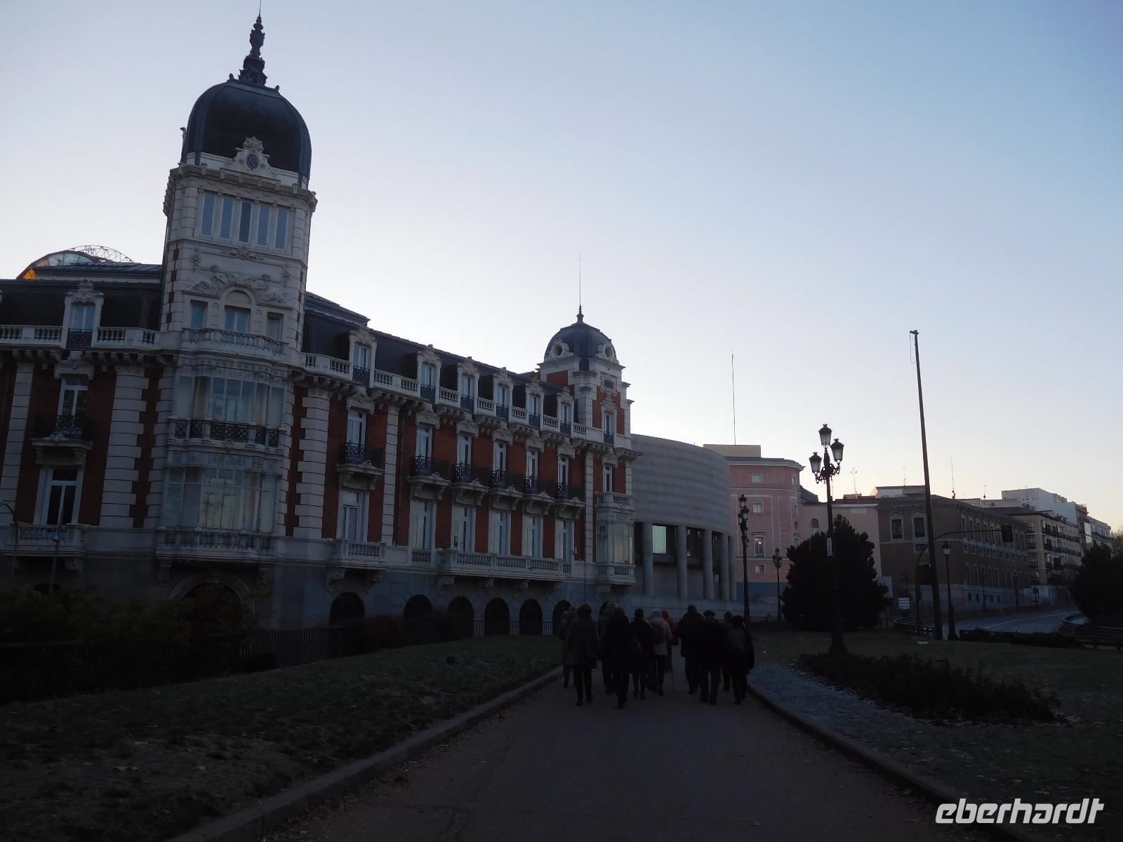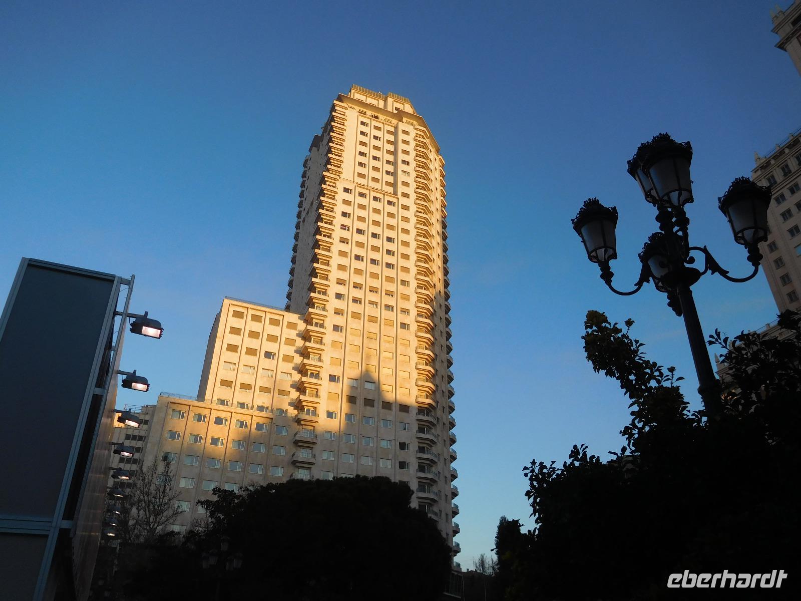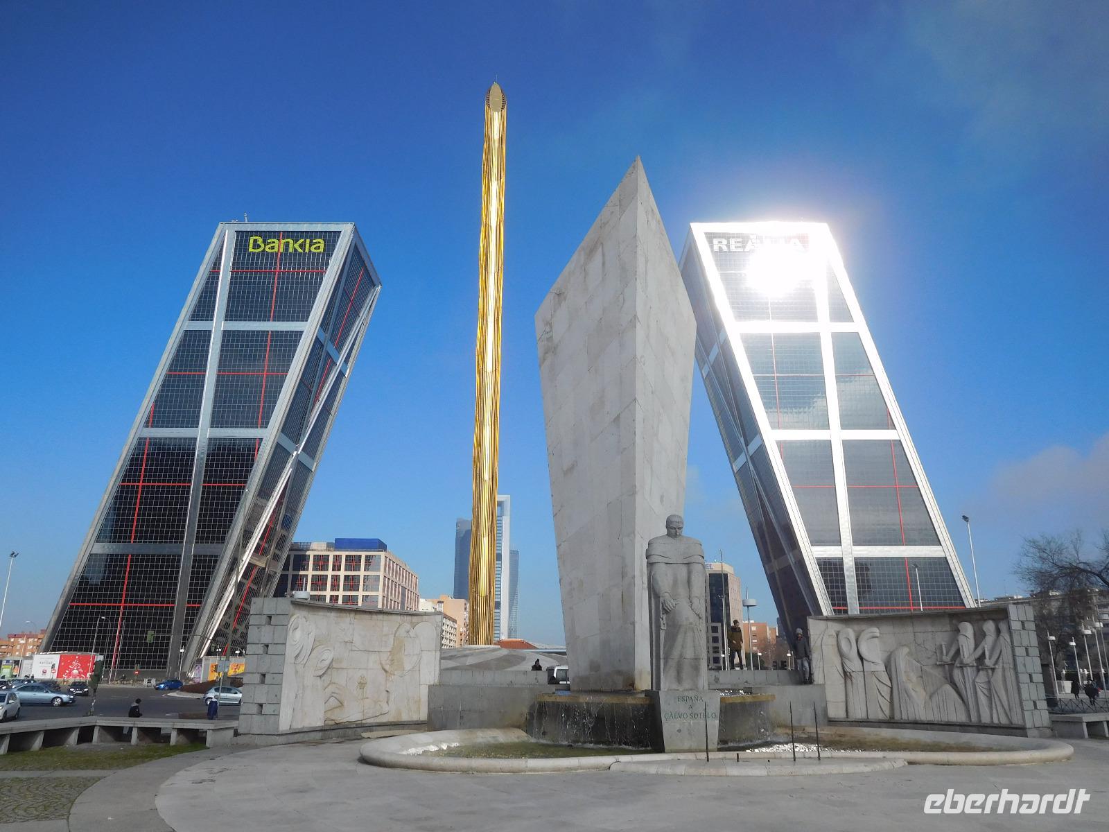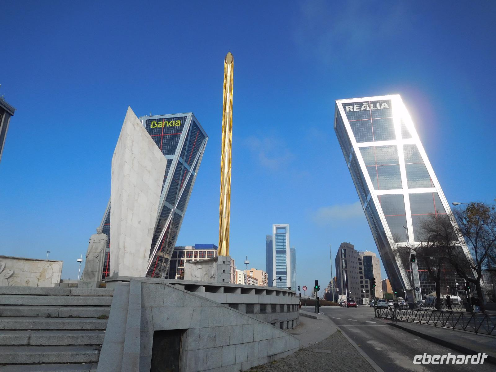 Nach so vielem Spazierengehen war es nun Zeit für eine wärmende Panorama-Busfahrt durch Madrid zu weiter entfernten Sehenswürdigkeiten, wie dem Bernabeu-Stadion des Fußball-Vereins Real Madrid, den markanten schrägen Bankia-Hochhäusern an der sogenannten Puerta de Europa oder den neu entstehenden fünf Hochhäusern.