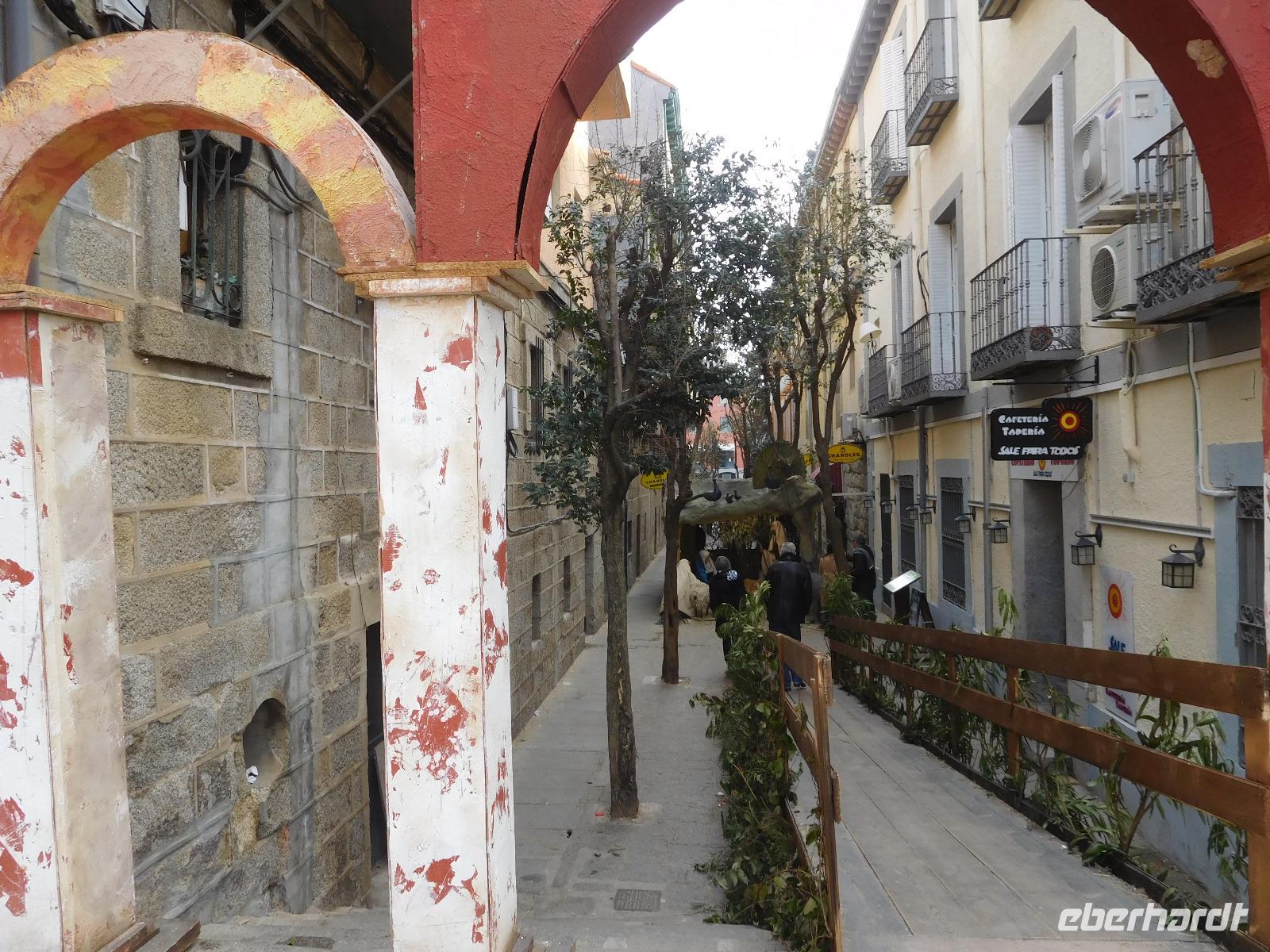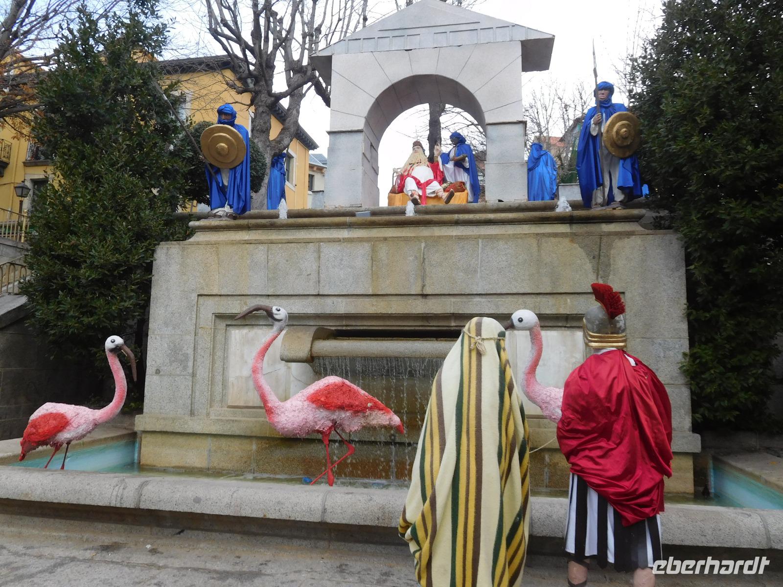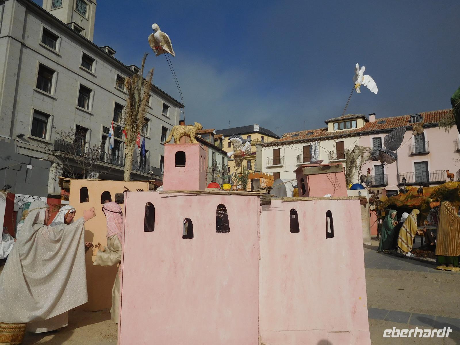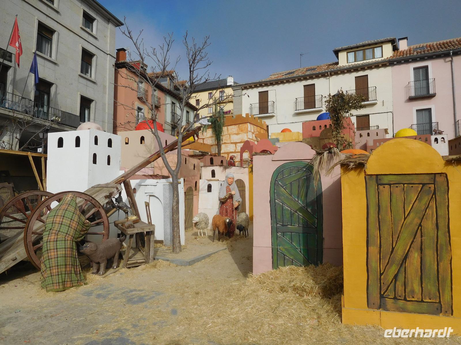 Wenn wir noch nicht genug von Madrids Umgebung beeindruckt gewesen sein sollten, erfüllten uns heute El Escorial und Segovia mit tieferer Begeisterung. Erneut allein unterwegs, konnten wir uns heute von den riesigen Ausmaßen des Klosters El Escorial überzeugen: Immerhin ist der Real Sitio de San Lorenzo de El Escorial der größte Renaissancebau der Welt! Für die Spanier ist diese Klosteranlage auch deshalb von Bedeutung, weil hier große Teile des spanischen Königshauses beigesetzt wurden. Zugegeben, mit dieser Pracht hatten wir gerechnet. Viel überraschender war aber die Krippe der Stadt, deren liebevoll ausstaffierten Figuren, Häuser und Tiere überall in der Altstadt zu finden waren!