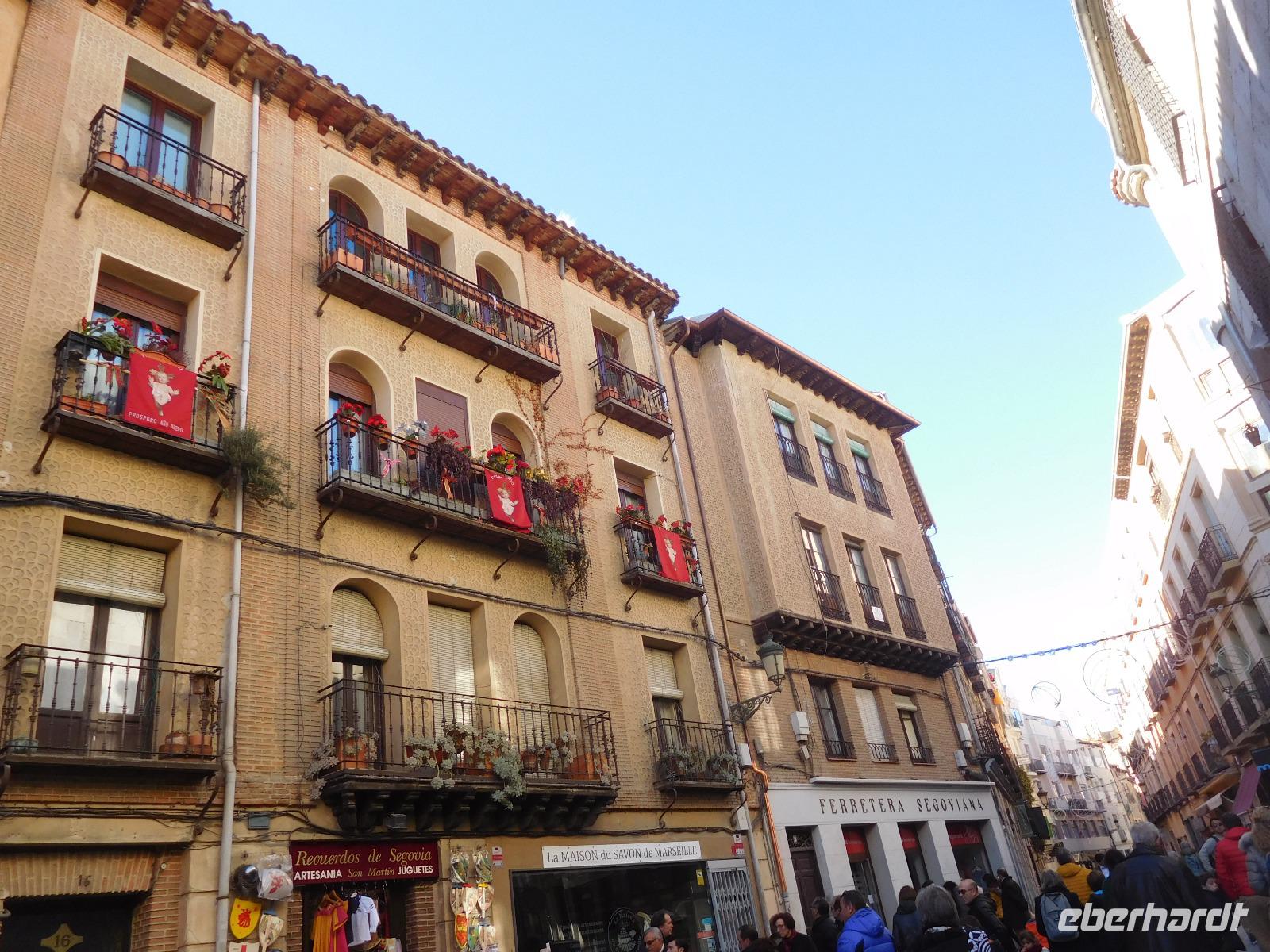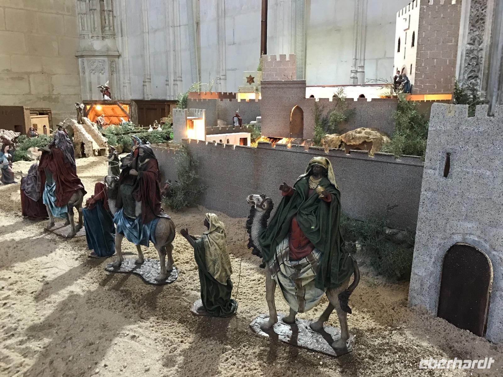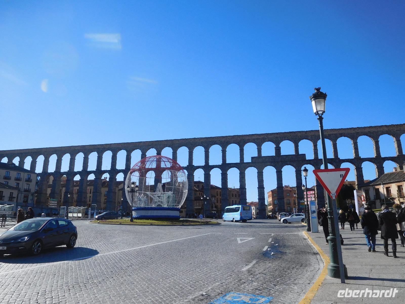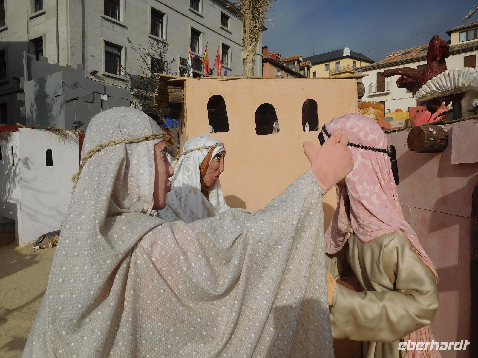 Wenn wir noch nicht genug von Madrids Umgebung beeindruckt gewesen sein sollten, erfüllten uns heute El Escorial und Segovia mit tieferer Begeisterung. Erneut allein unterwegs, konnten wir uns heute von den riesigen Ausmaßen des Klosters El Escorial überzeugen: Immerhin ist der Real Sitio de San Lorenzo de El Escorial der größte Renaissancebau der Welt! Für die Spanier ist diese Klosteranlage auch deshalb von Bedeutung, weil hier große Teile des spanischen Königshauses beigesetzt wurden. Zugegeben, mit dieser Pracht hatten wir gerechnet. Viel überraschender war aber die Krippe der Stadt, deren liebevoll ausstaffierten Figuren, Häuser und Tiere überall in der Altstadt zu finden waren!