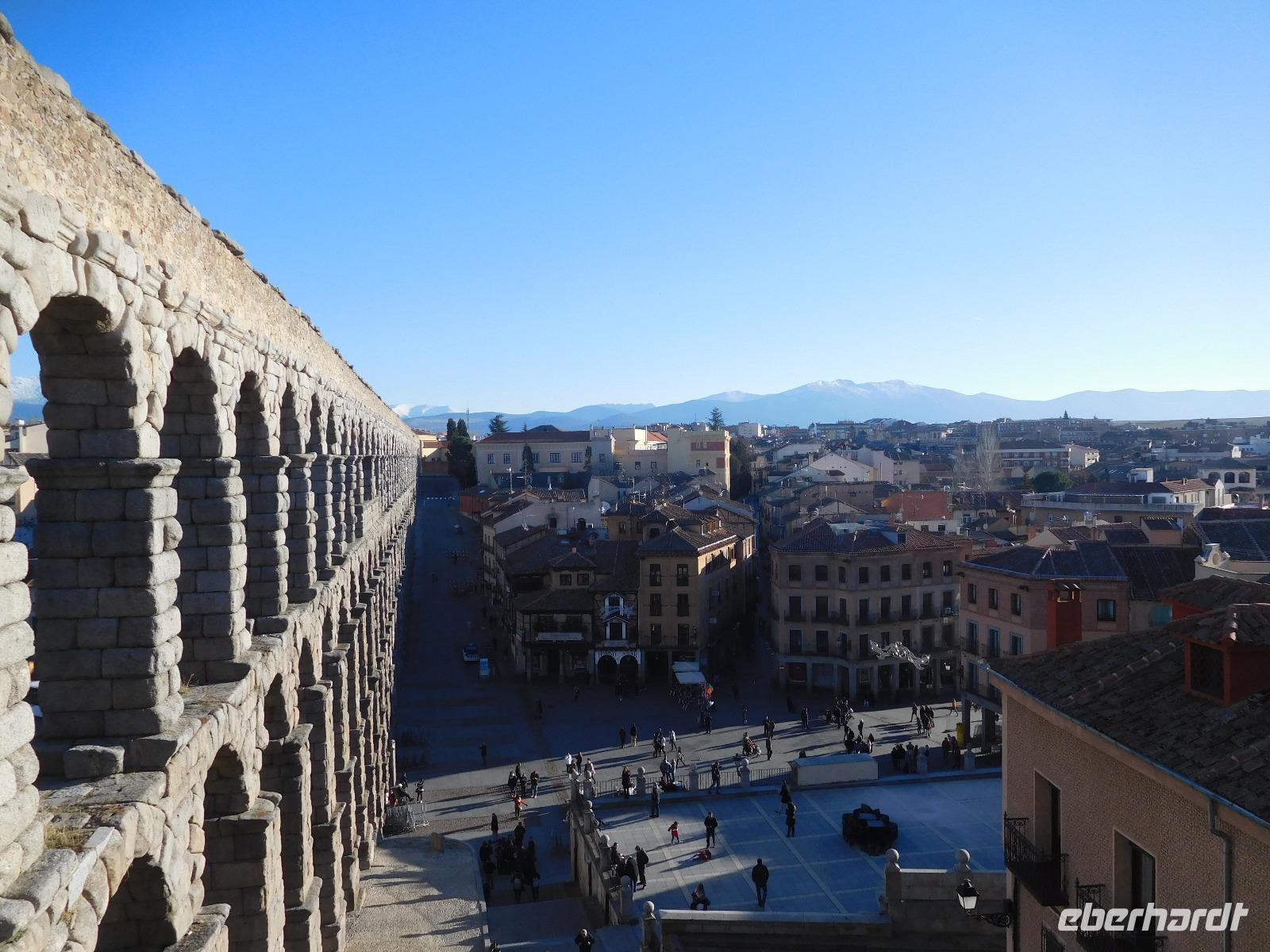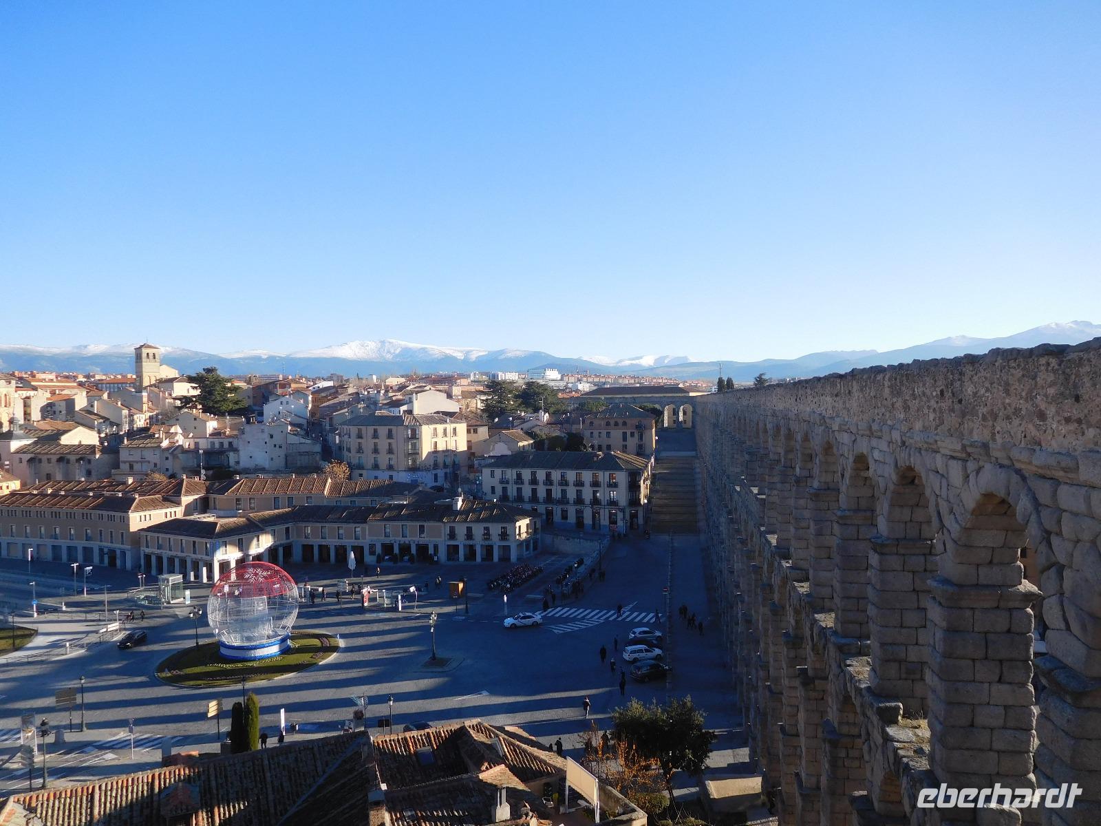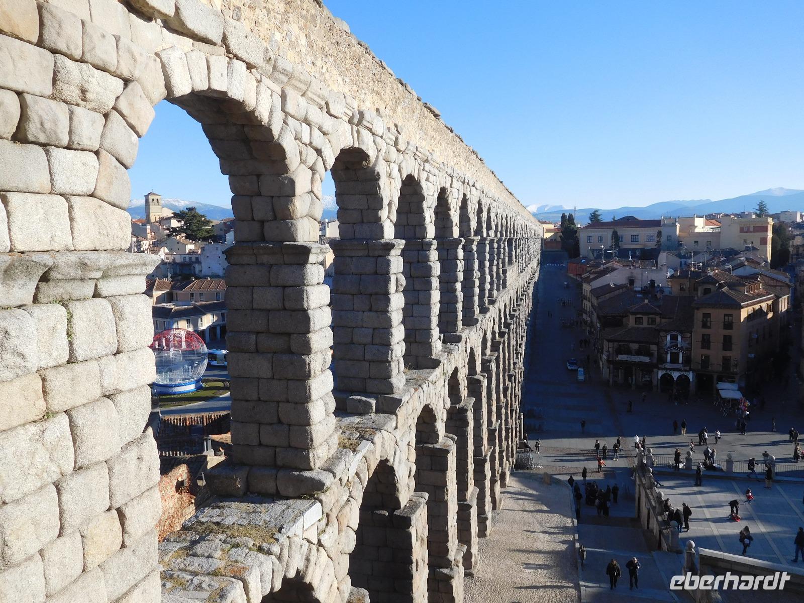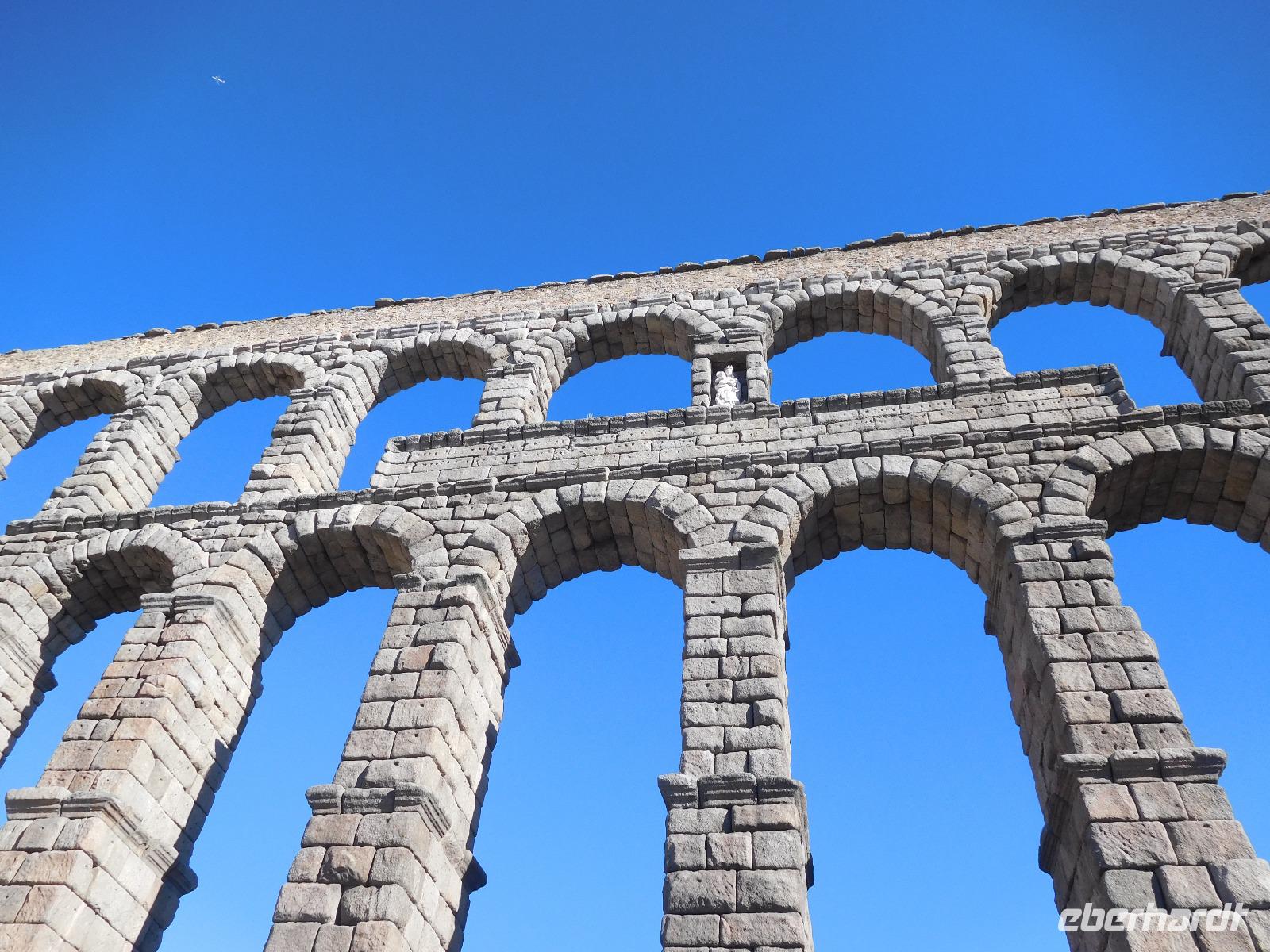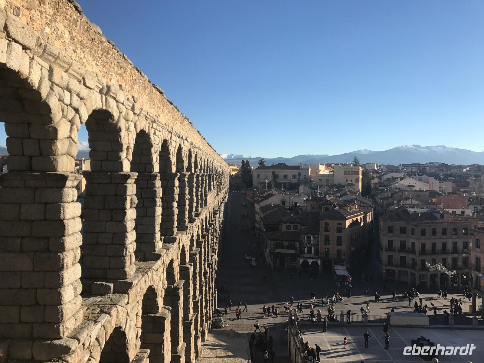 Schweren Herzens fuhren wir weiter nach Segovia, berühmt für sein römisches Aquädukt. Natürlich kann man in Segovia auch die schmalen Gassen, mediterranen Fassaden, eine prächtige Kathedrale und eine gewaltige Stadtmauer bewundern. Letztere führt zur Burg von Segovia, dem Alcazar de Segovia. Nach einem gemütlichen Spaziergang durch die sonnigen Straßen war es auch schon Zeit für die Rückfahrt nach Madrid.