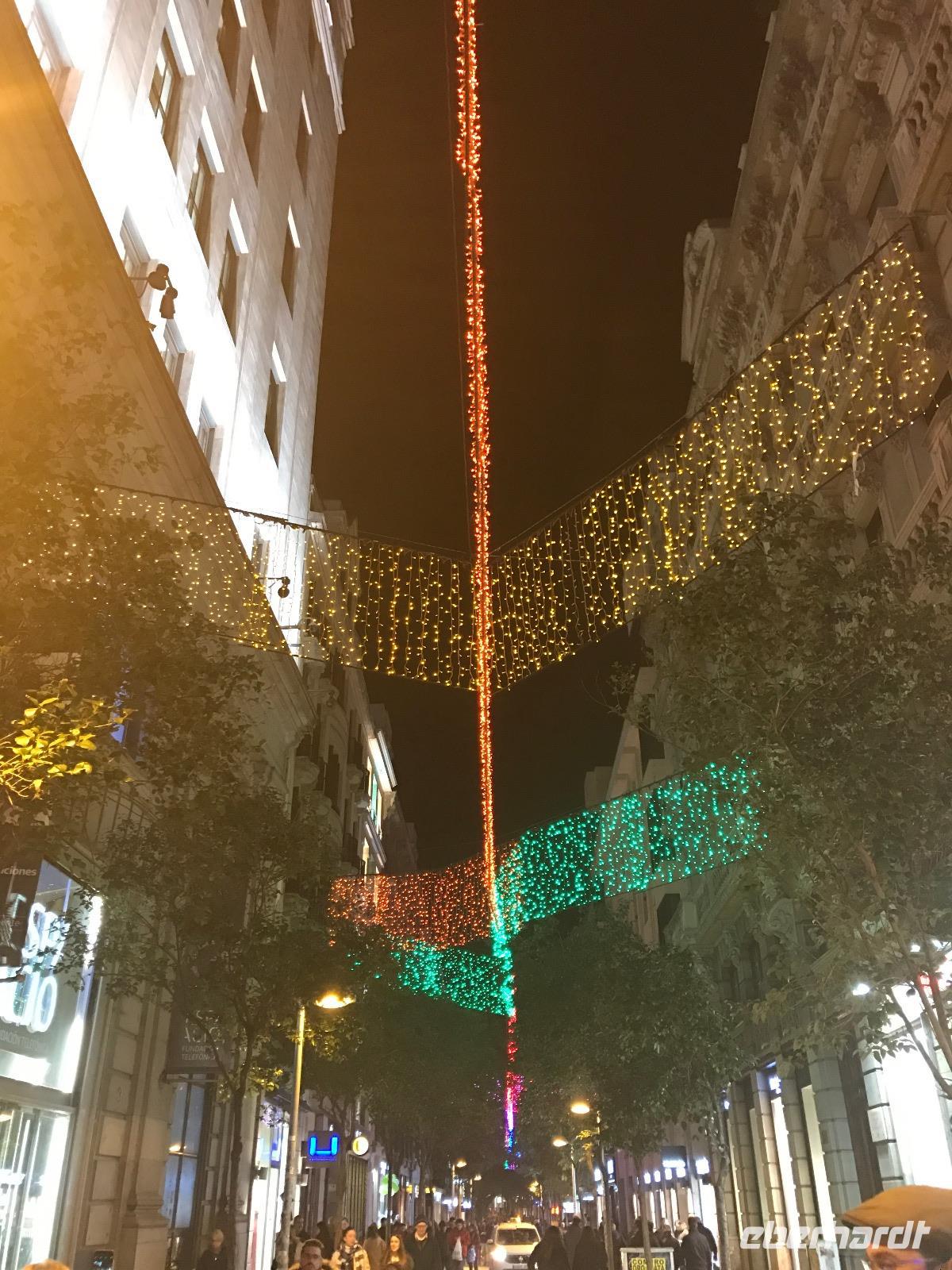 Am Abend trafen wir uns also, um gemeinsamm zum Restaurant zu spazieren und staunten abermals nicht schlecht, als nun die sonst so übervolle Gran Via menschenleer war. Leider mussten wir auf den Einlass vor dem Restaurant warten. Die Wartezeit versüßte erst ein Schluck Sekt und wurde später vom perfekt organisierten und überaus leckeren Abendessen wett gemacht. Mit glitzernden Hüten und Tröten und später auch wieder mit den 12 Weintrauben schlossen wir mit 2016 ab und begrüßten freudig 2017: feliz ano!