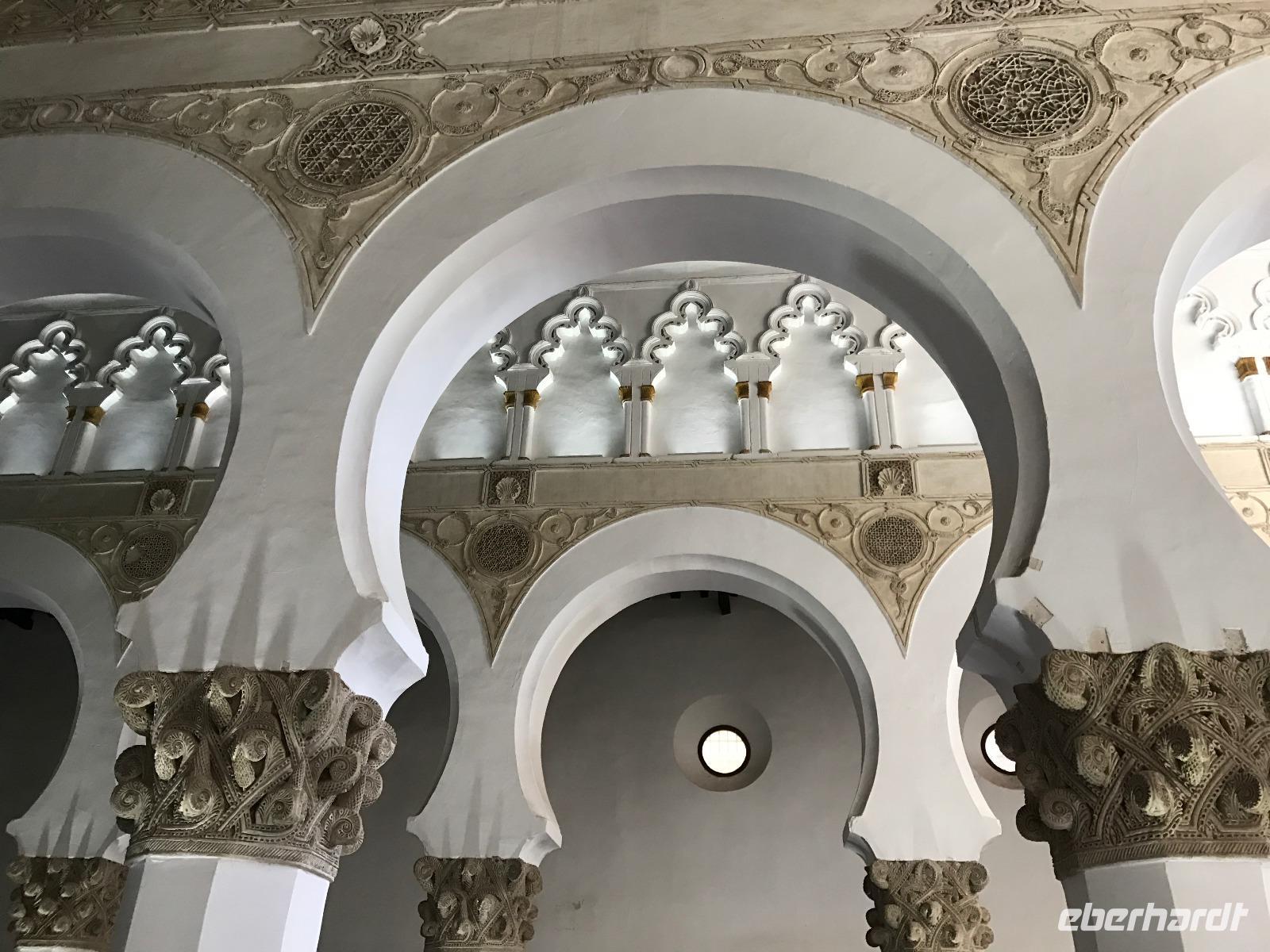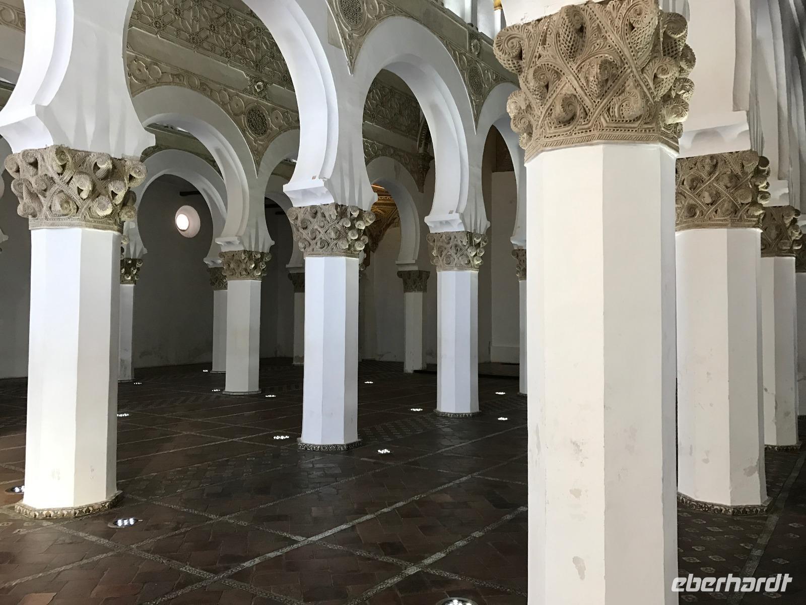 Nach so vielen Eindrücken nutzten wir erst einmal die Pause, um für die weitere Entdeckung Energie zu tanken - und die Lädchen und kleinen Restaurants der Stadt zu erproben. Dann führte uns Christine in die alte Synagoge der Stadt, deren weißgemaltes Inneres mit Säulen und dezenten Mustern verziert war. Christine erzählte uns von der Vertreibung der spanischen Juden, von denen es heute nur noch kleine Gemeinden in Spanien gibt.
