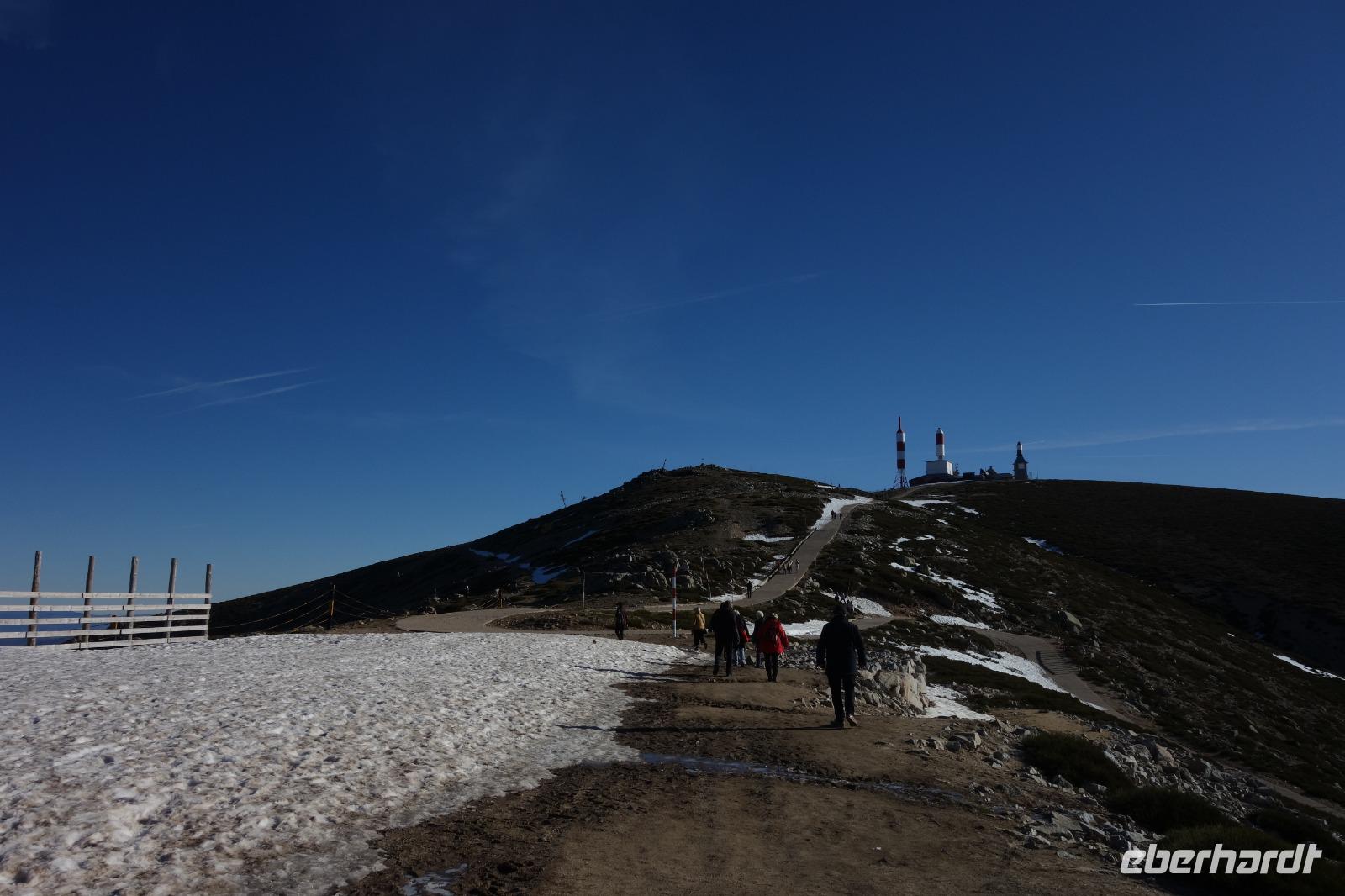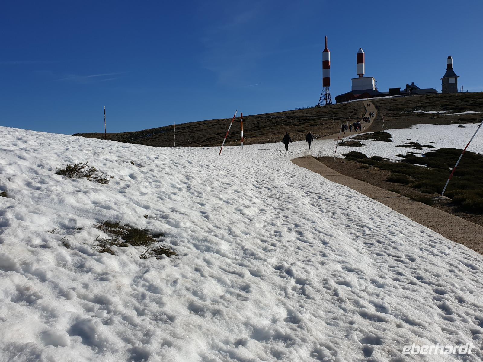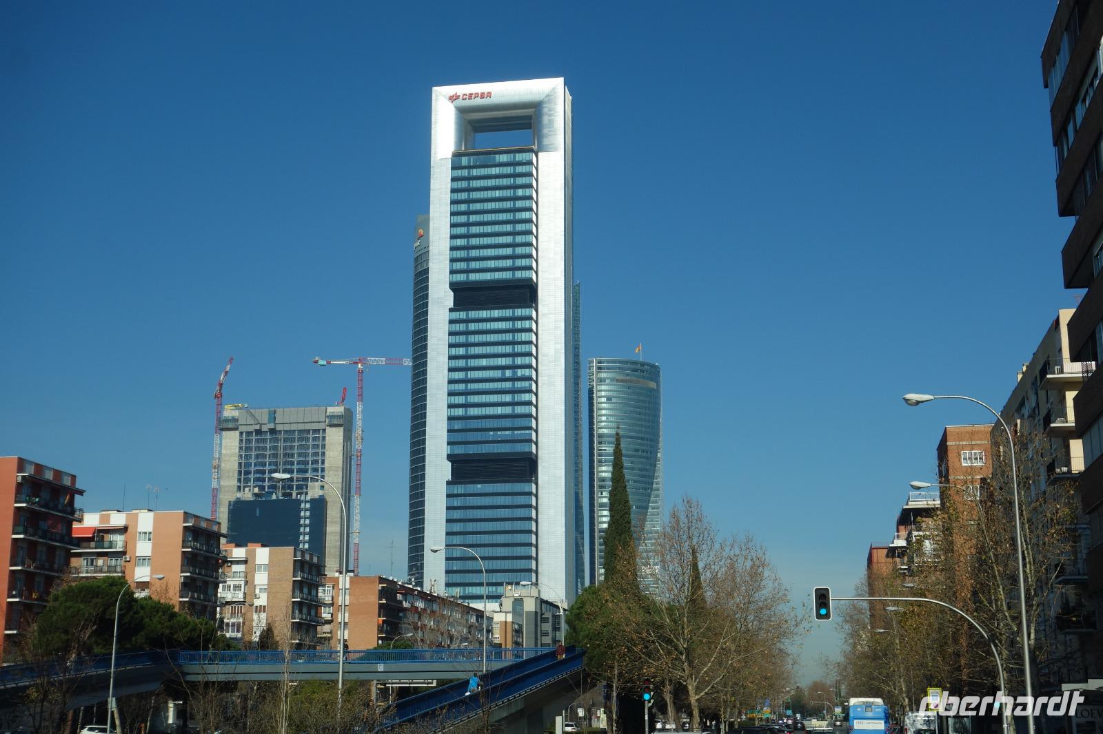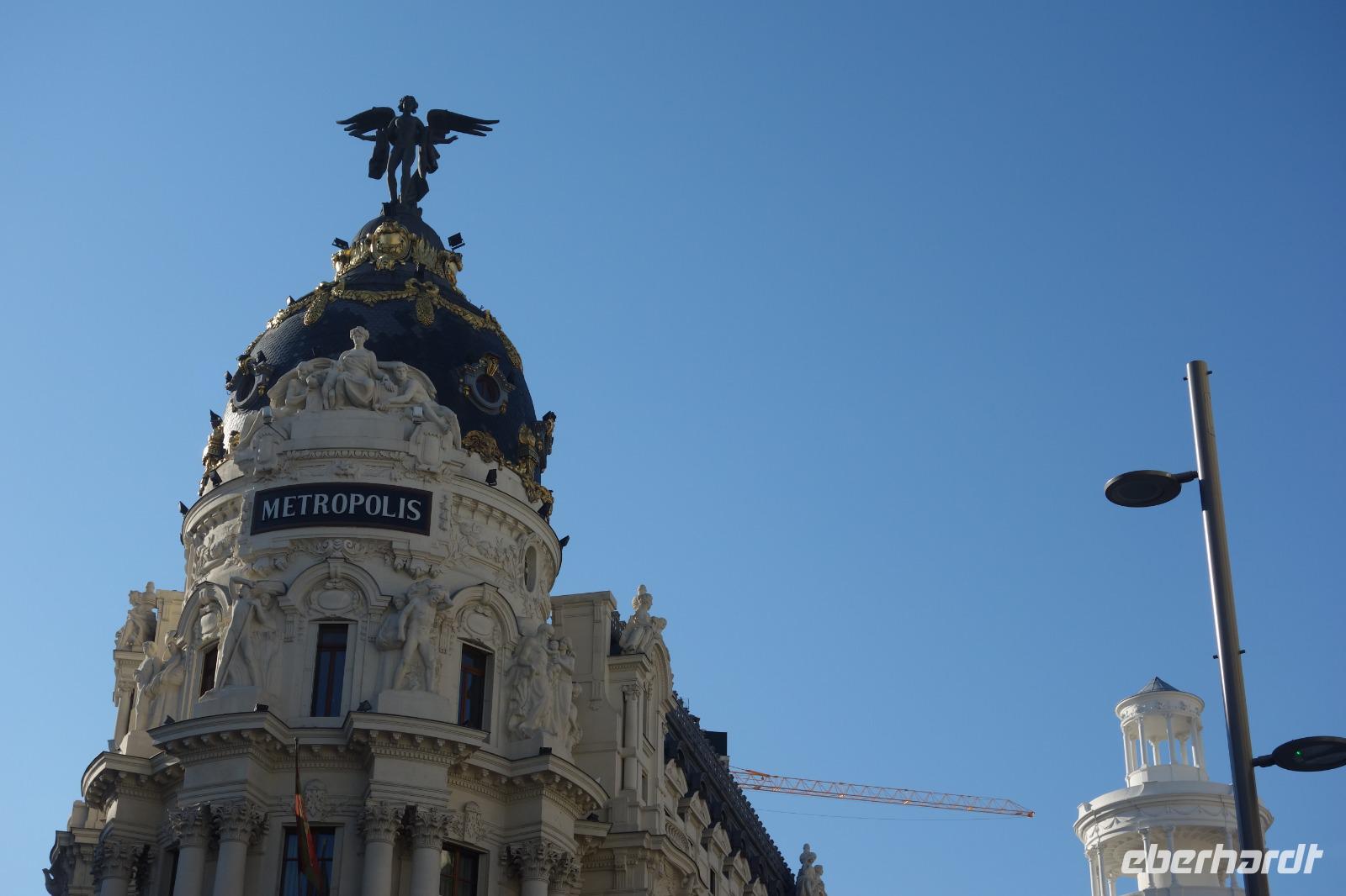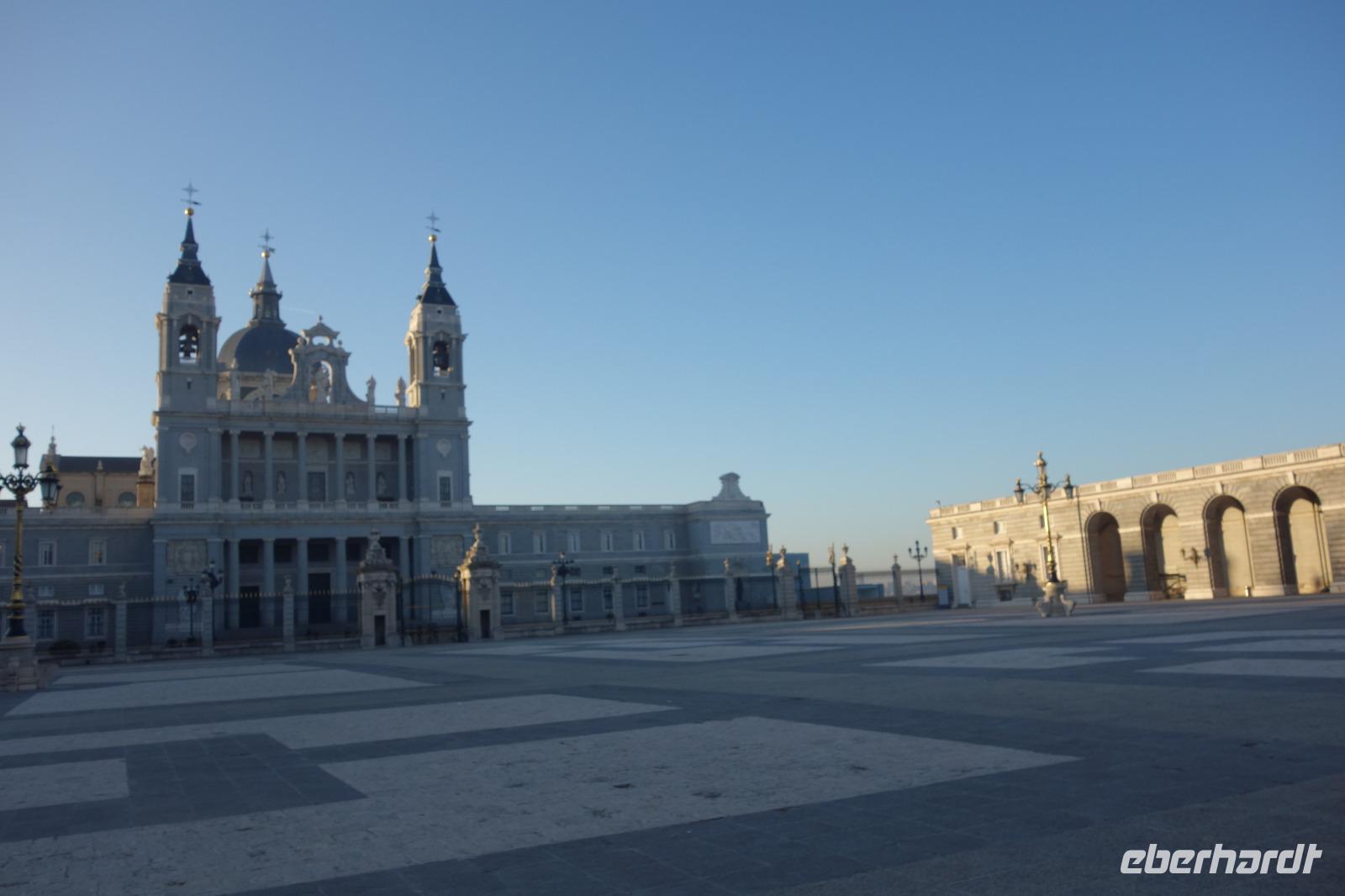 Anschließend gingen wir zu der berühmte „Templo de Debod", dem kleinen altägyptischen Tempel und ältesten Bauwerk Madrids. Es war ein Geschenk der ägyptischen Regierung an Spanien zum Dank für die Hilfe der spanischen Archäologen bei der Rettung Abu Simbels während des Baus des Asusanstaudamms vor mehr als 50 Jahren. Von hier hat man einen der besten Ausblicke von Madrid bis zu den Gebirgsketten voller Schnee über den Königspalast und die Casa de Campo. Wir wollten heute gar nicht viel mehr sehen, da wir noch einen richtigen Stadtrundgang am Mittwoch haben würden, aber einen erste Eindruck von meiner Heimat wollte ich meinen Gästen schon heute geben. Wir hatten riesig Glück mit dem Wetter in diesen Tage, da es immer sonnig war. Man darf nicht vergessen, dass sich Madrid in einer Höhe von 665 Metern befindet. Wenn die Sonne scheint, ist es sehr angenehm, aber am Abend und in der Nacht kann richtig frisch und kalt sein.