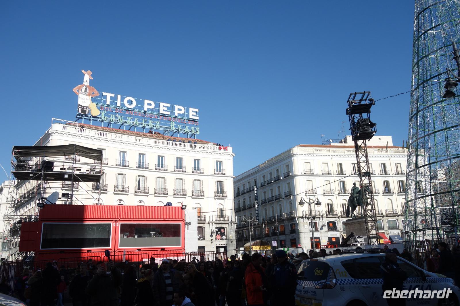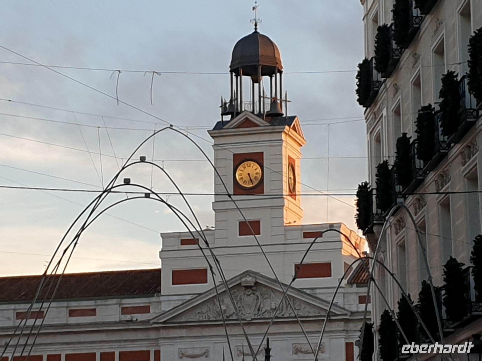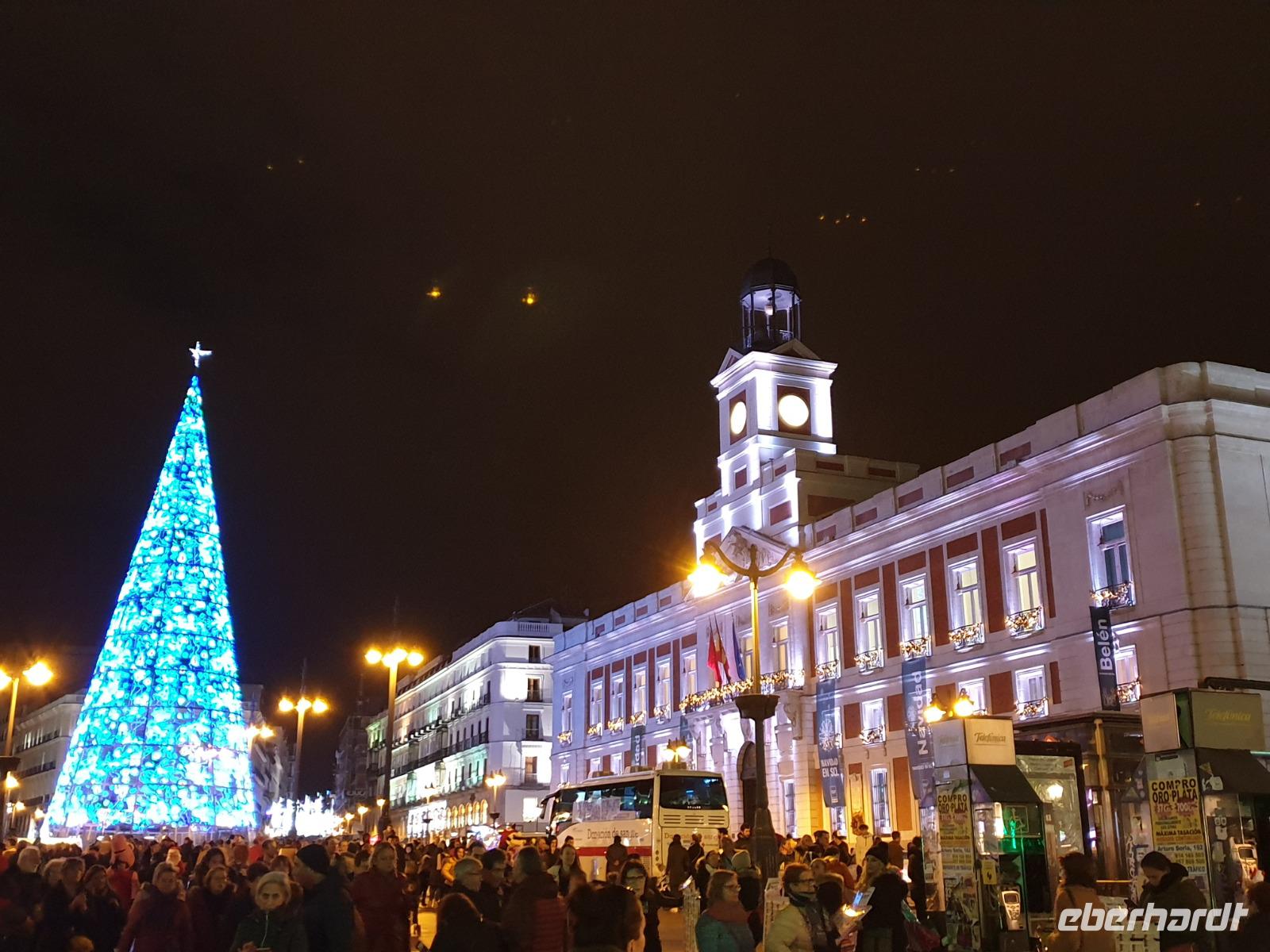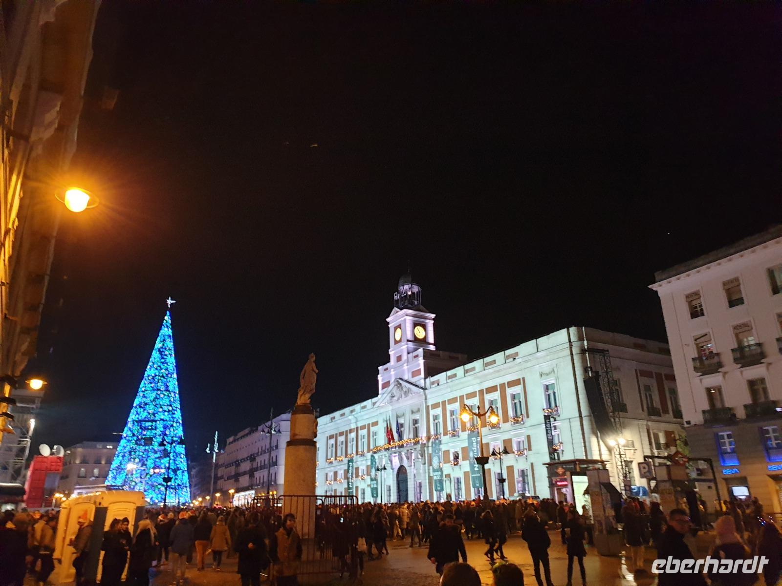 Abendessen hatten wir heute bei einem Restaurant an der Gran Via. Im Anschluss gingen einige von uns auf dem Platz Puerta del Sol, der schon voll mit Menschen war, wo wir an der Pre-Silvesterfeier teilnahmen. Genau hier würde auch morgen das neue Jahr gefeiert werden. Da dieser Platz zu Silvester am 31.12 überfüllt ist, treffen sich viele Menschen, wie auch wir heute, schon einen Tag vorher am 30.12, um traditionell die 12 Trauben zu essen. Uns hat es gefallen und mit den Massen von Leute gingen wir zurück ins Hotel.