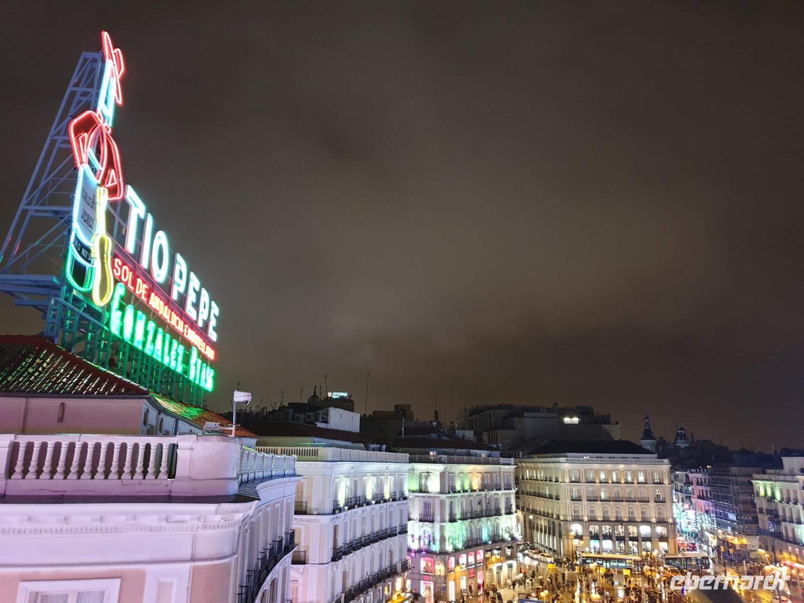 Madrid ist eine sehr beliebte Stadt, um Silvester zu feiern. Deshalb waren die Straßen Sehr belebt, aber mit dem Eberhardt Schild, welches ich immer hoch hielt, konnten wir uns nicht so einfach verlieren. Und Rene war immer am Ende damit niemand sich verliert. Heute lernten wir richtig was Tapas Essen in Spanien ist. So viel und so gutes hatten wir seit lange nicht mehr gegessen, oder? So konnten wir den Abend in einer nicht nur typischen Tapas-Bar sondern feines Restaurant mit spanischem Ambiente und Einheimischen genießen und den ersten Tag in Ruhe ausklingen lassen. Einige wussten zunächst noch nicht, was Tapas sind, aber man lernte es schnell. Plötzlich brachte der Kellner Teller mit verschiedensten Köstlichkeiten: Empanada, Jamon Serrano Iberico Schinken, Käse, Spanische Omelette, Pimientos de Padron, Pulpo Octopus, Fisch oder Rindfleisch. Dazu gab es einen guten Rotwein.Geschafft von dem langen Tag, gingen wir schon bald zu Bett.