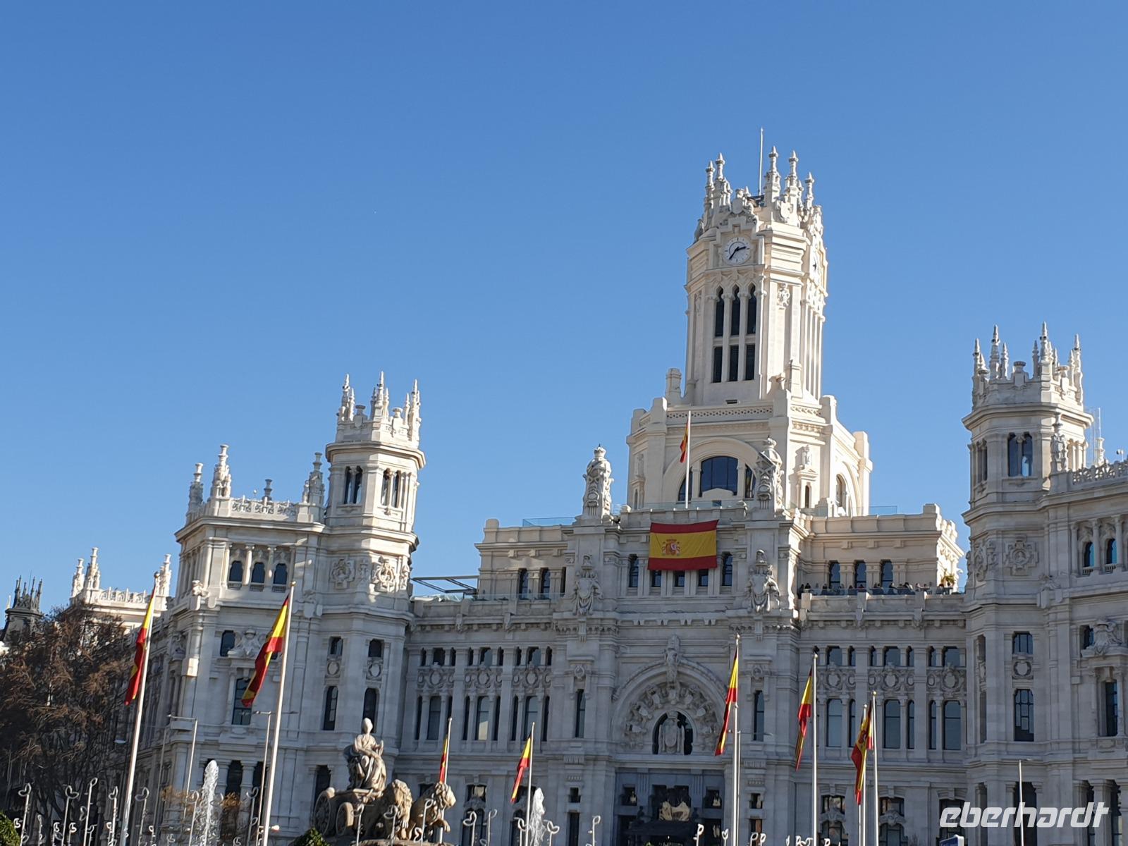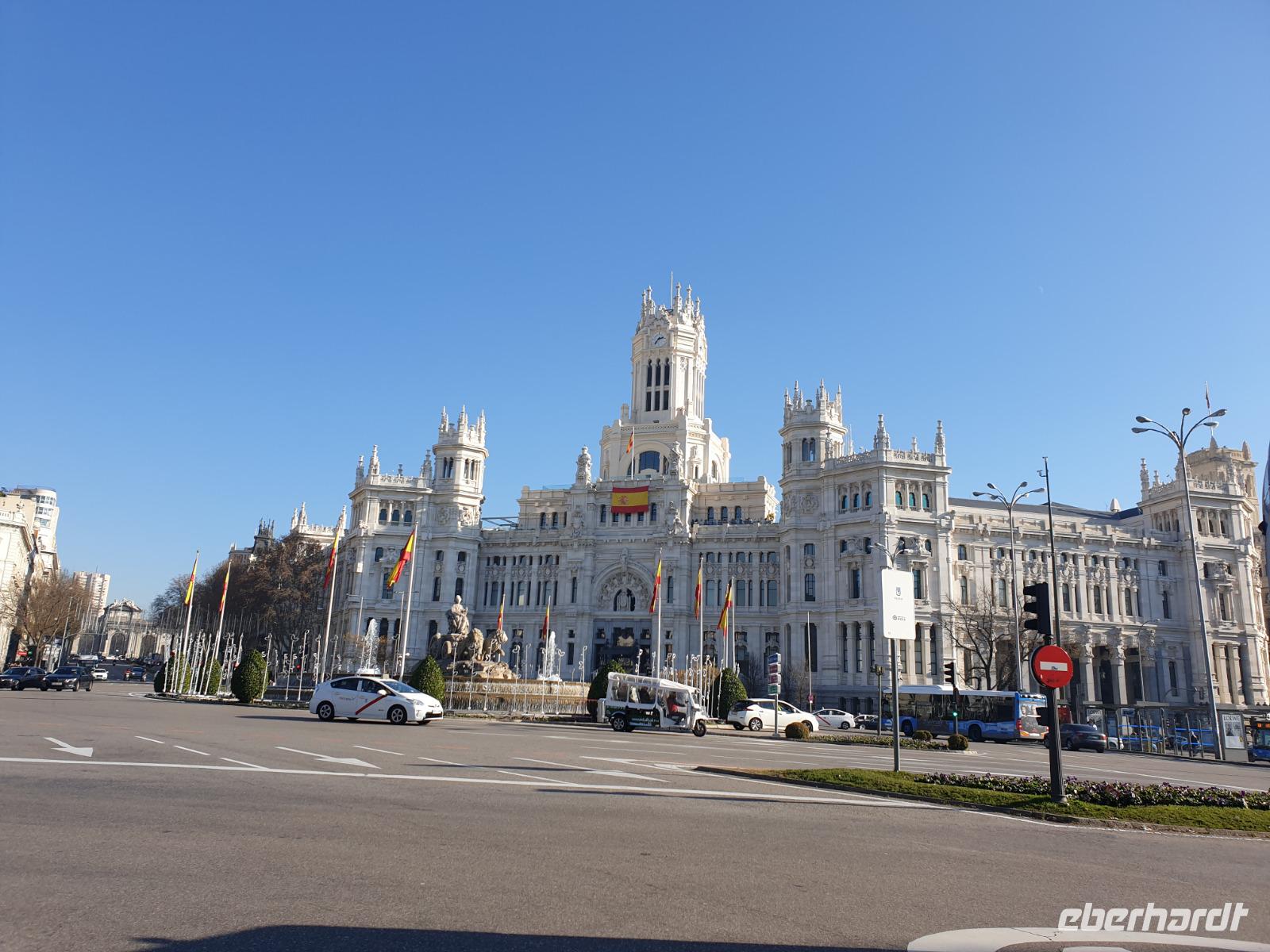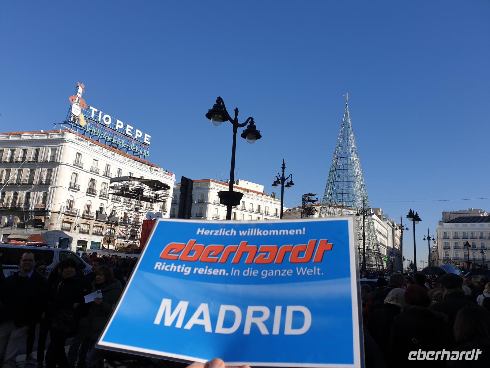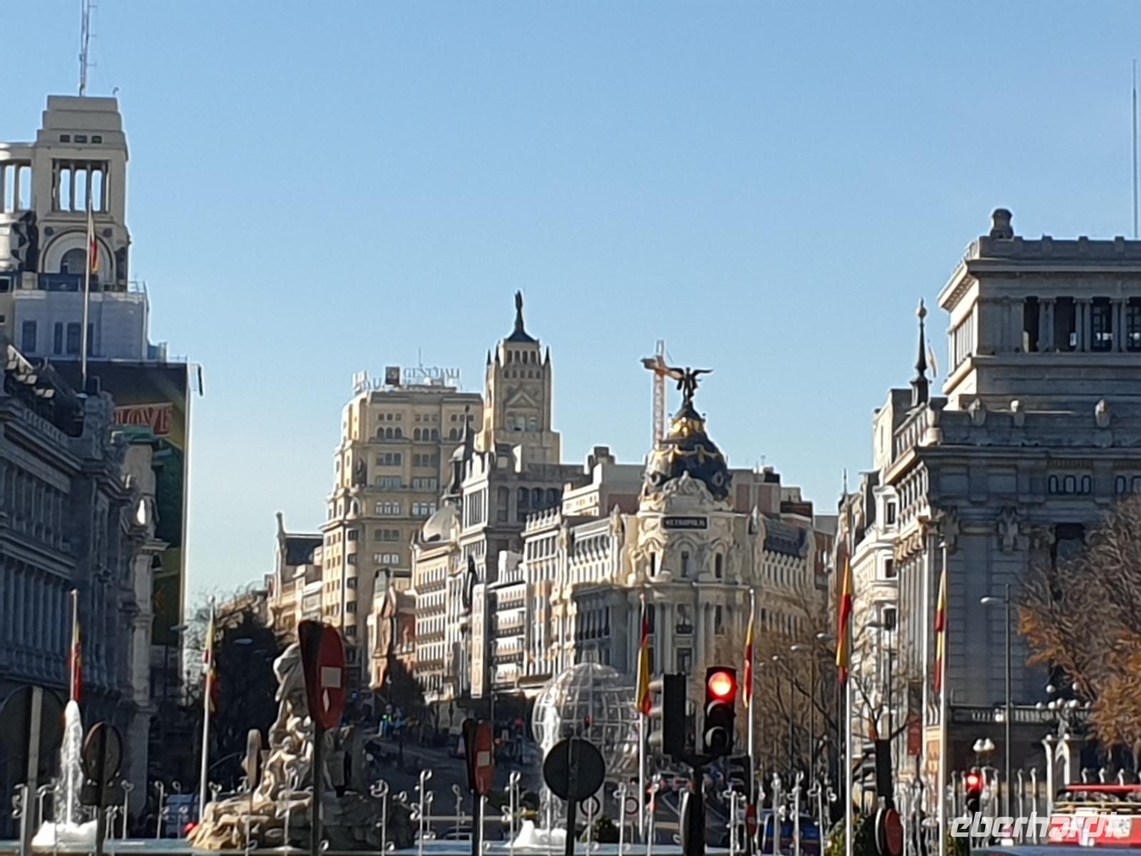 Kein Wintereinbruch in Deutschland dieses Jahr aber die Sonne von Spanien wartet sowieso auf uns. Nachdem ich Weihnachten mit meiner Familie in Madrid gefeiert hatte, war ich zwei Tage zuvor erst wieder in Dresden angekommen, um meine lieben Gäste abzuholen und gemeinsam mit Ihnen wieder nach Madrid zu fliegen. Wie gesagt, kein Schnee im Sicht dieses Jahr. In Frankfurt trafen wir noch 4 Gäste, die aus Frankfurt kamen und gemeinsam flogen wir weiter in die spanische Hauptstadt Madrid. Die Sonne begrüßte uns in Madrid, wo ich 1976 zur Welt gekommen war, und wir freuten uns alle schon auf die gemeinsamen letzten Stunden des Jahres 2019. Alle Koffer waren da und um 15 Uhr waren wir alle 26 Gäste im Hotel gut eingetroffen. Die Fahrt von Flughafen zum Hotel führte uns über die Puerta de Alcala und Plaza de Cibeles.