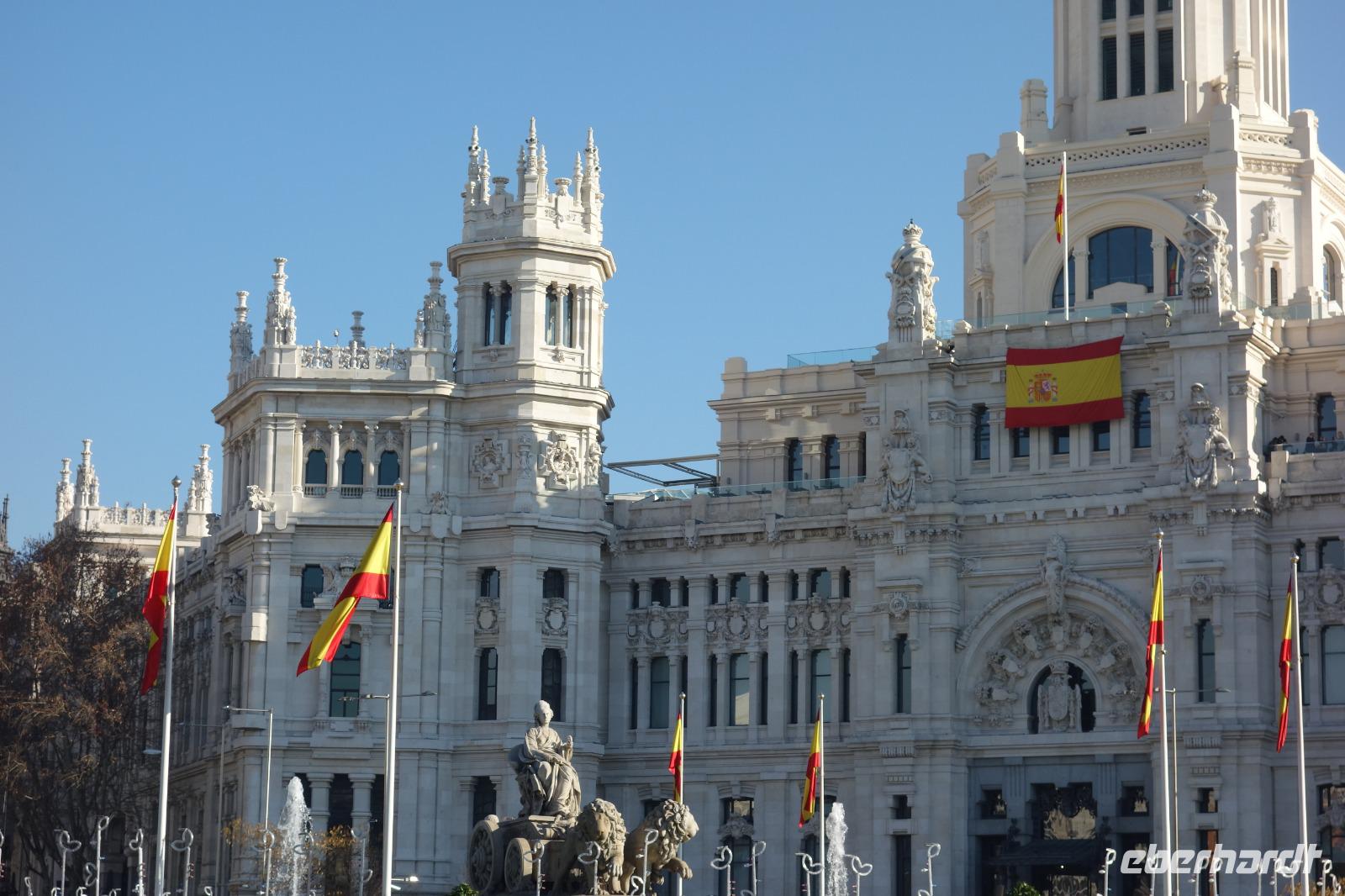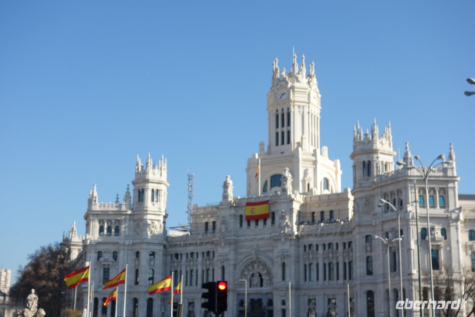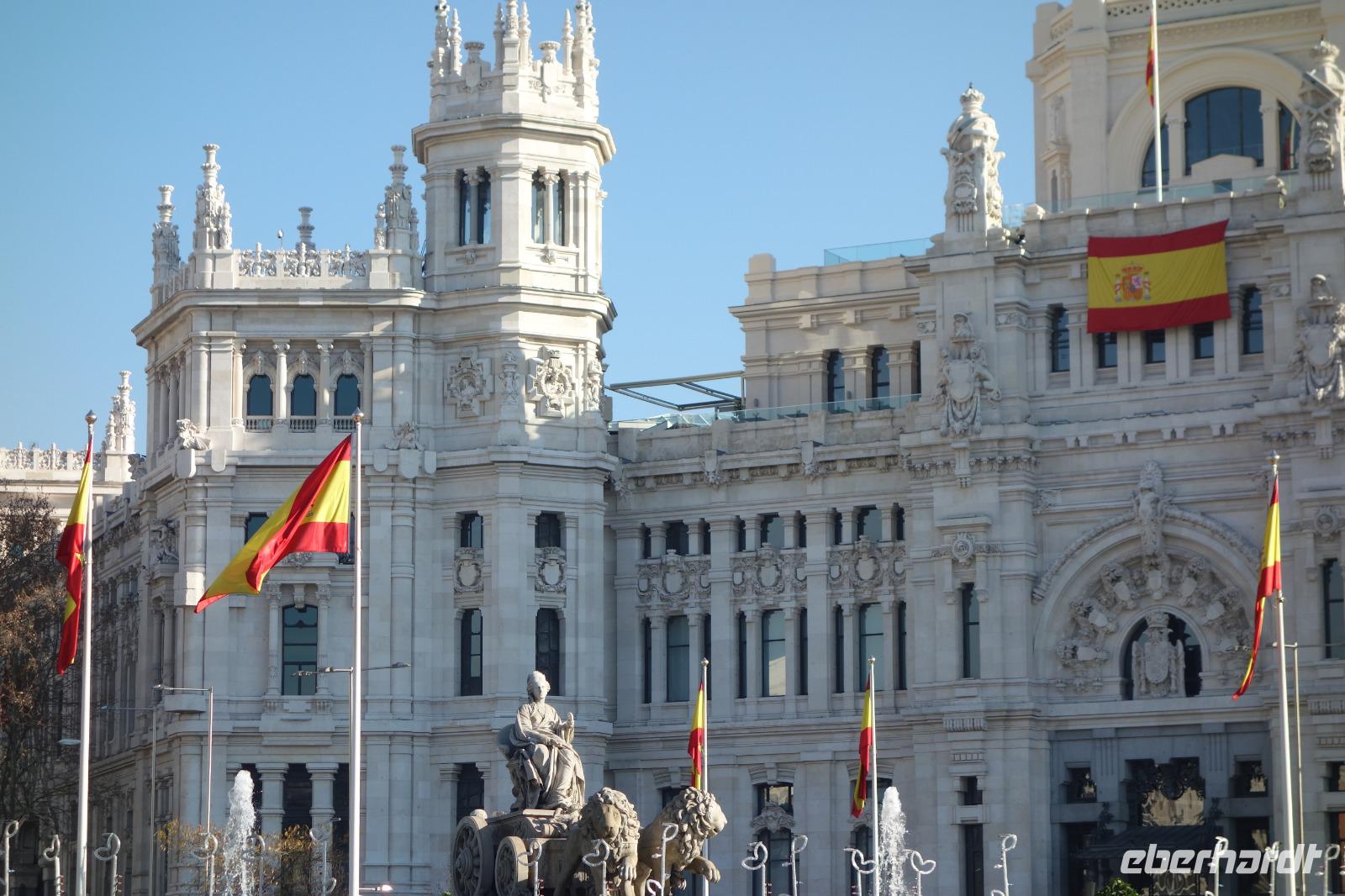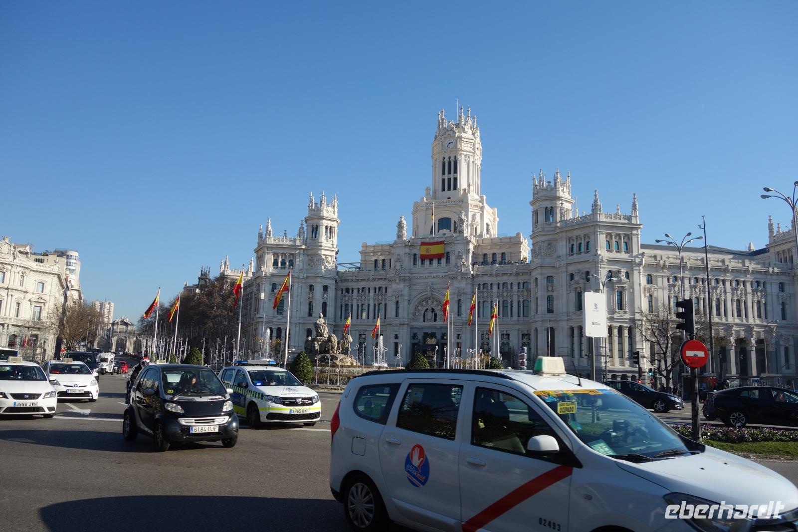 Kein Wintereinbruch in Deutschland dieses Jahr aber die Sonne von Spanien wartet sowieso auf uns. Nachdem ich Weihnachten mit meiner Familie in Madrid gefeiert hatte, war ich zwei Tage zuvor erst wieder in Dresden angekommen, um meine lieben Gäste abzuholen und gemeinsam mit Ihnen wieder nach Madrid zu fliegen. Wie gesagt, kein Schnee im Sicht dieses Jahr. In Frankfurt trafen wir noch 4 Gäste, die aus Frankfurt kamen und gemeinsam flogen wir weiter in die spanische Hauptstadt Madrid. Die Sonne begrüßte uns in Madrid, wo ich 1976 zur Welt gekommen war, und wir freuten uns alle schon auf die gemeinsamen letzten Stunden des Jahres 2019. Alle Koffer waren da und um 15 Uhr waren wir alle 26 Gäste im Hotel gut eingetroffen. Die Fahrt von Flughafen zum Hotel führte uns über die Puerta de Alcala und Plaza de Cibeles.
