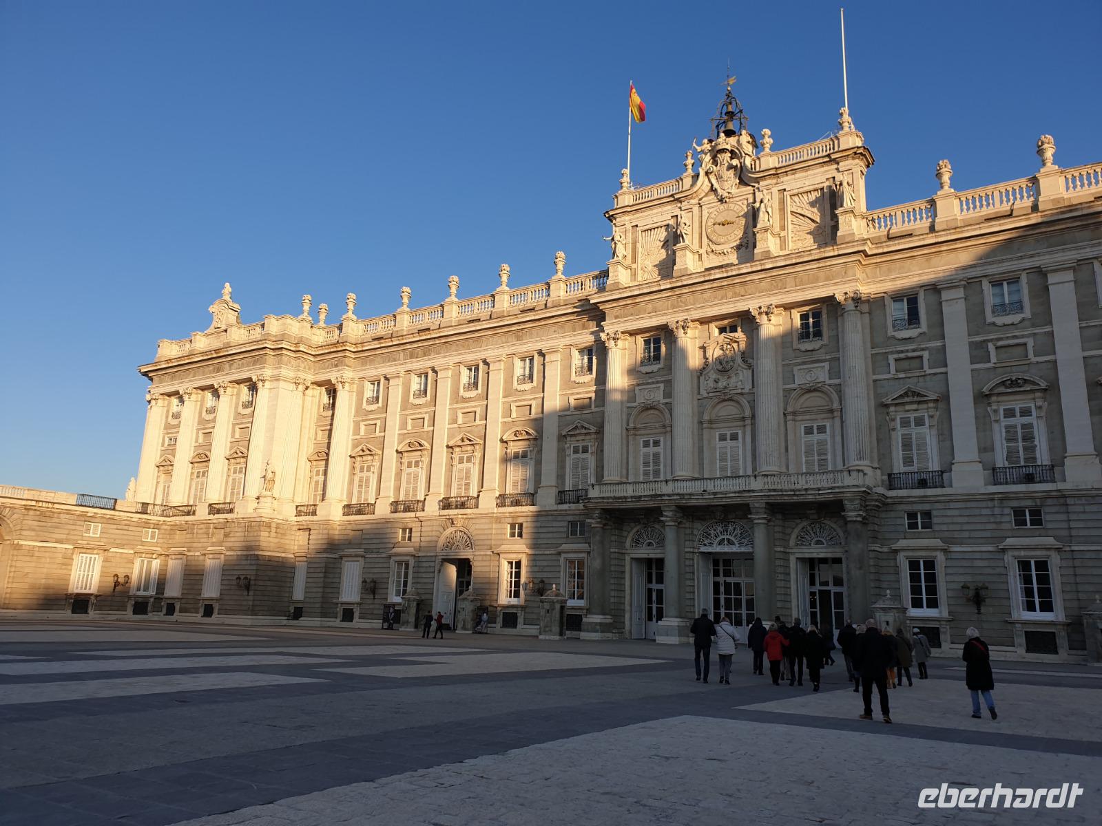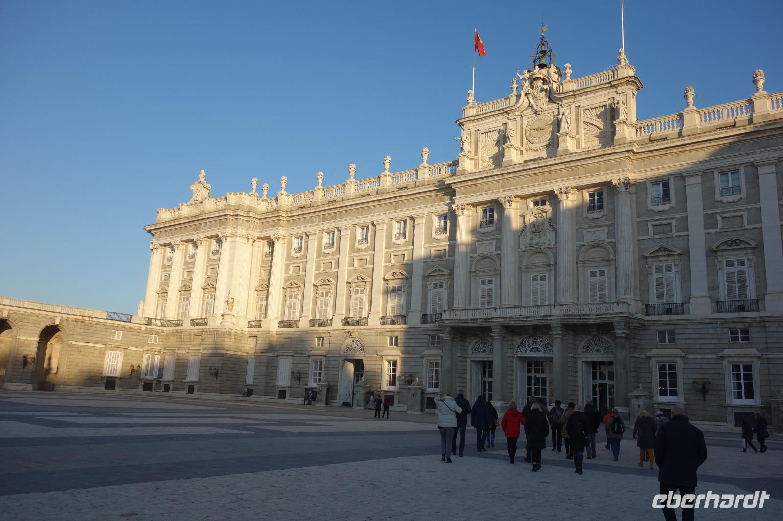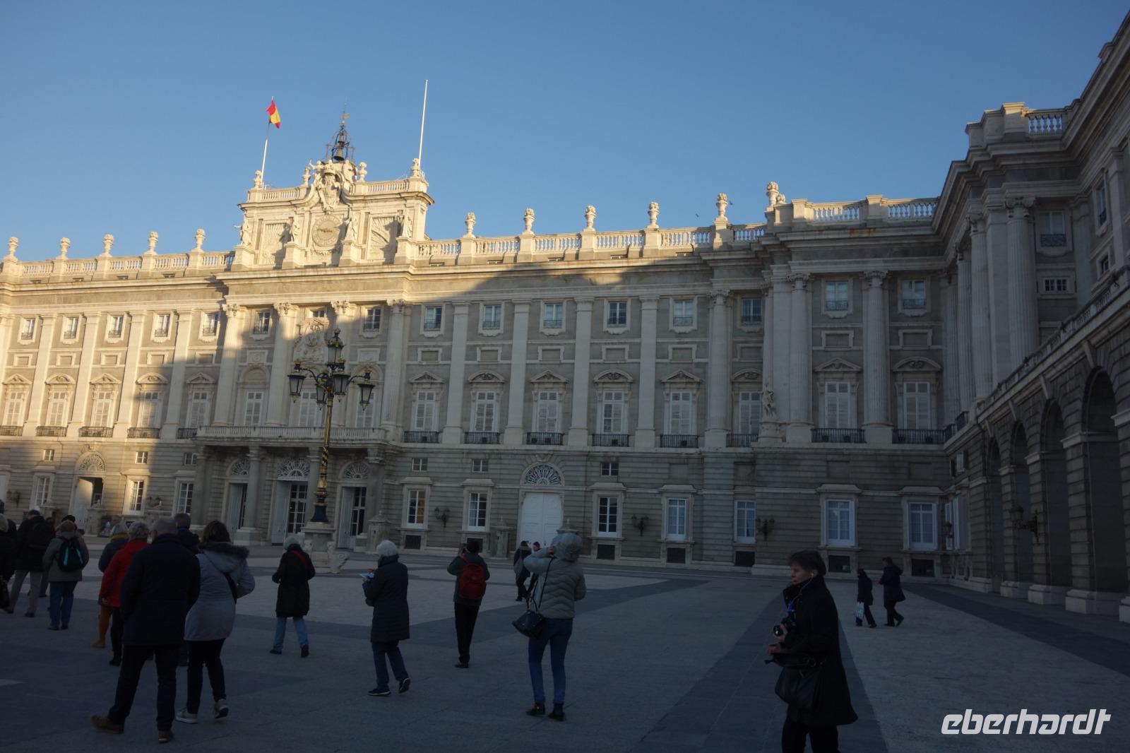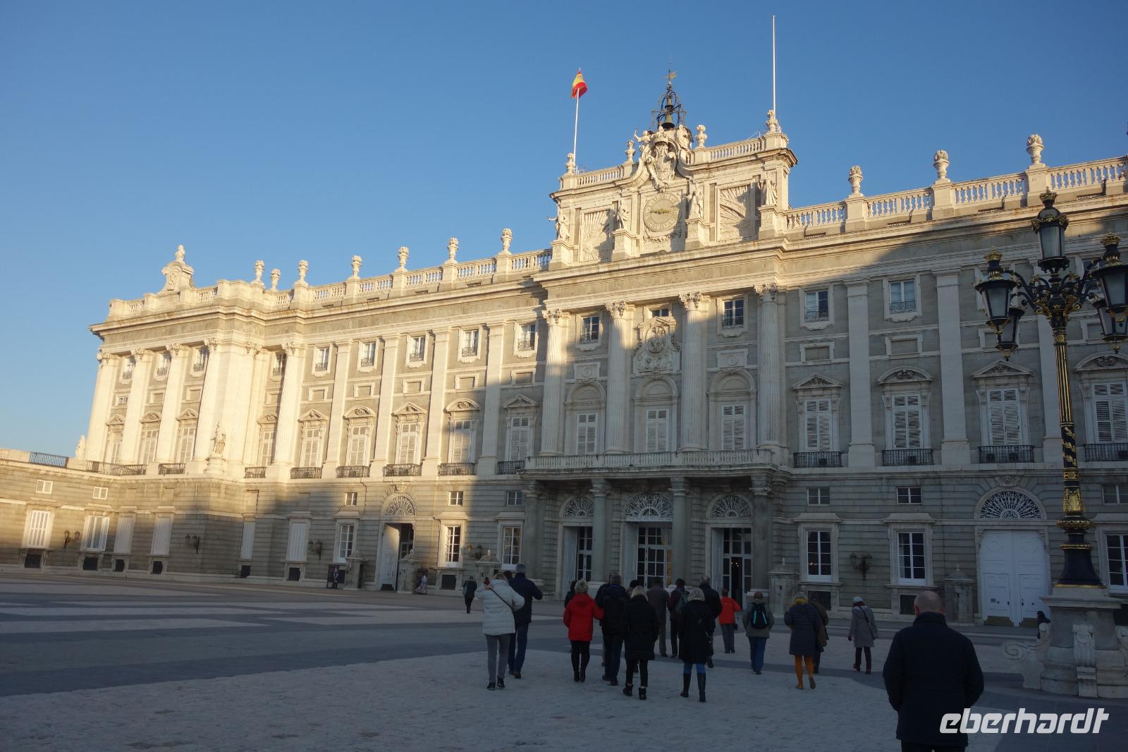 Nach dem herrlichen Frühstück mit Blick auf der Gran Via, begannen wir den Tag mit einem umfassenden Stadtrundgang durch Madrid. Auf diese Weise lernten Sie die bedeutendsten Sehenswürdigkeiten, wie wieder den Plaza de España, den Königspalast oder den Plaza de Mayor kennen. Um 9.15 Uhr besuchten wir den imposanten Königspalast, wo wir die verschiedenen Räume und Thronsaal erstaunen konnten. Gemeinsam mit Reiseleiterin Christine erkundeten wir nun die wunderschöne Altstadt. Wir schlenderten über den weltbekannten Platz Puerta de Sol und wir besuchten auch den San Miguel Markt. Unseren Stadtrundgang beendeten wir auf dem Platz Neptuno und gemeinsam genossen wir die letzten Sonnenstrahlungen des Jahres. Anschliessend fuhren wir noch kurz mit dem Bus zur Stierkampfarena Las Ventas, wo wir einen Fotostopp machten, und weiter über die Paseo Castellana mit dem Real Madrid Stadion und die Hochhäuser Viertel wo wir eine Pause machten. Auf dem Weg zum Hotel fuhren wir auch an dem Columbus Platz vorbei, wo sich die größte spanische Flagge überhaupt befindet.