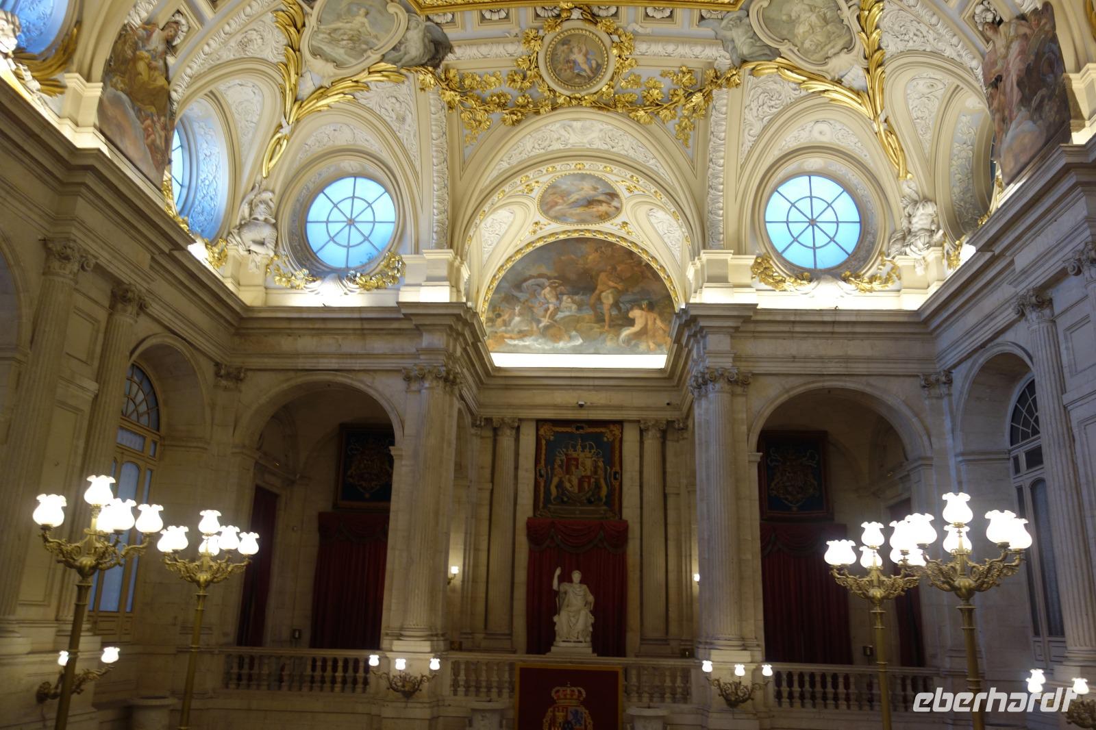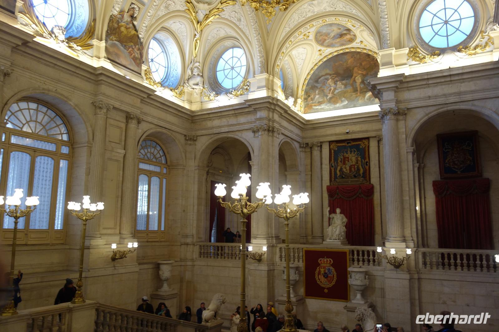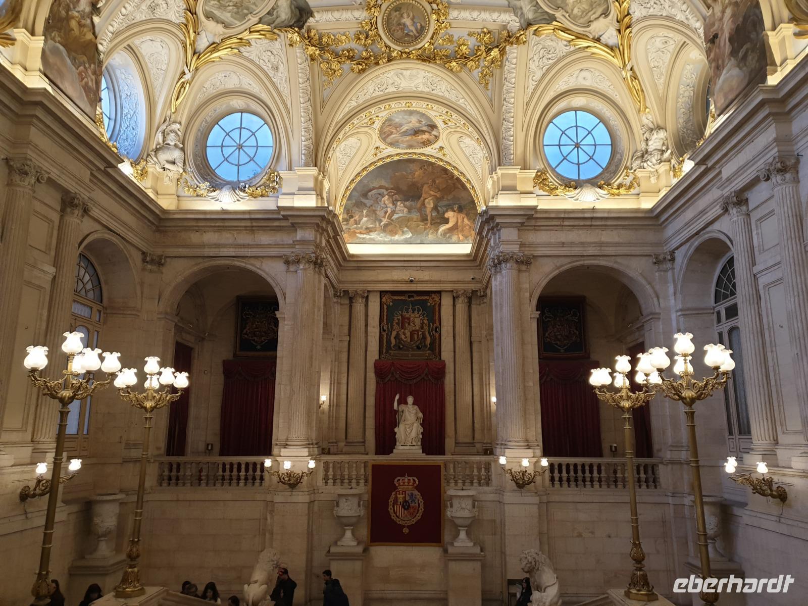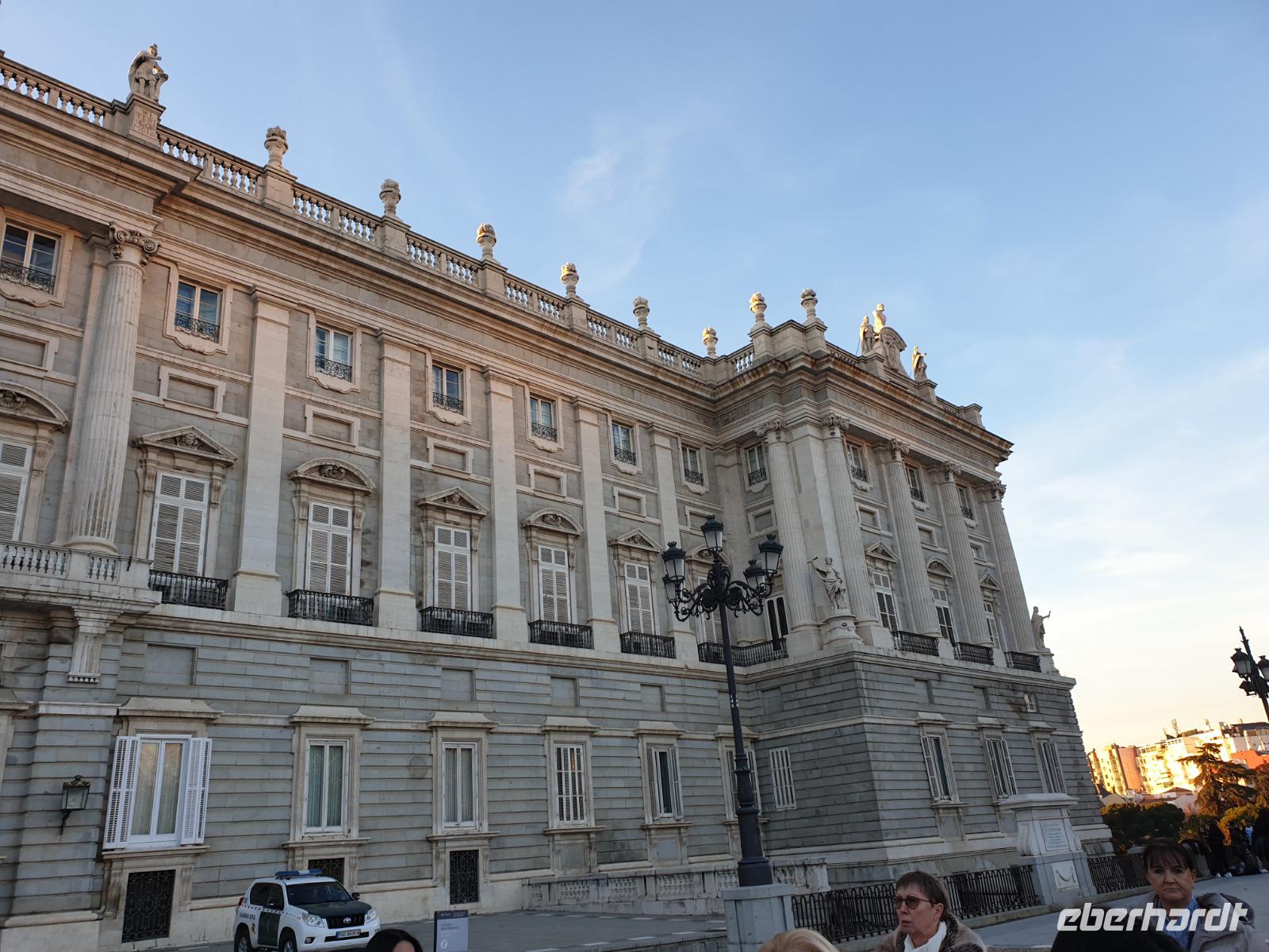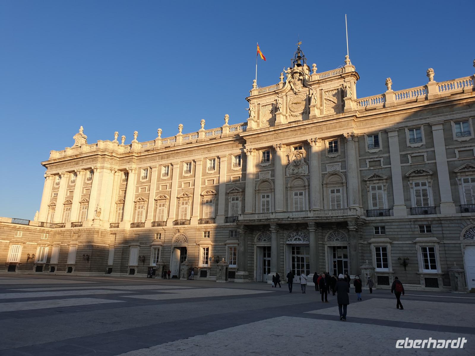 Nach dem herrlichen Frühstück mit Blick auf der Gran Via, begannen wir den Tag mit einem umfassenden Stadtrundgang durch Madrid. Auf diese Weise lernten Sie die bedeutendsten Sehenswürdigkeiten, wie wieder den Plaza de España, den Königspalast oder den Plaza de Mayor kennen. Um 9.15 Uhr besuchten wir den imposanten Königspalast, wo wir die verschiedenen Räume und Thronsaal erstaunen konnten. Gemeinsam mit Reiseleiterin Christine erkundeten wir nun die wunderschöne Altstadt. Wir schlenderten über den weltbekannten Platz Puerta de Sol und wir besuchten auch den San Miguel Markt. Unseren Stadtrundgang beendeten wir auf dem Platz Neptuno und gemeinsam genossen wir die letzten Sonnenstrahlungen des Jahres. Anschliessend fuhren wir noch kurz mit dem Bus zur Stierkampfarena Las Ventas, wo wir einen Fotostopp machten, und weiter über die Paseo Castellana mit dem Real Madrid Stadion und die Hochhäuser Viertel wo wir eine Pause machten. Auf dem Weg zum Hotel fuhren wir auch an dem Columbus Platz vorbei, wo sich die größte spanische Flagge überhaupt befindet.
