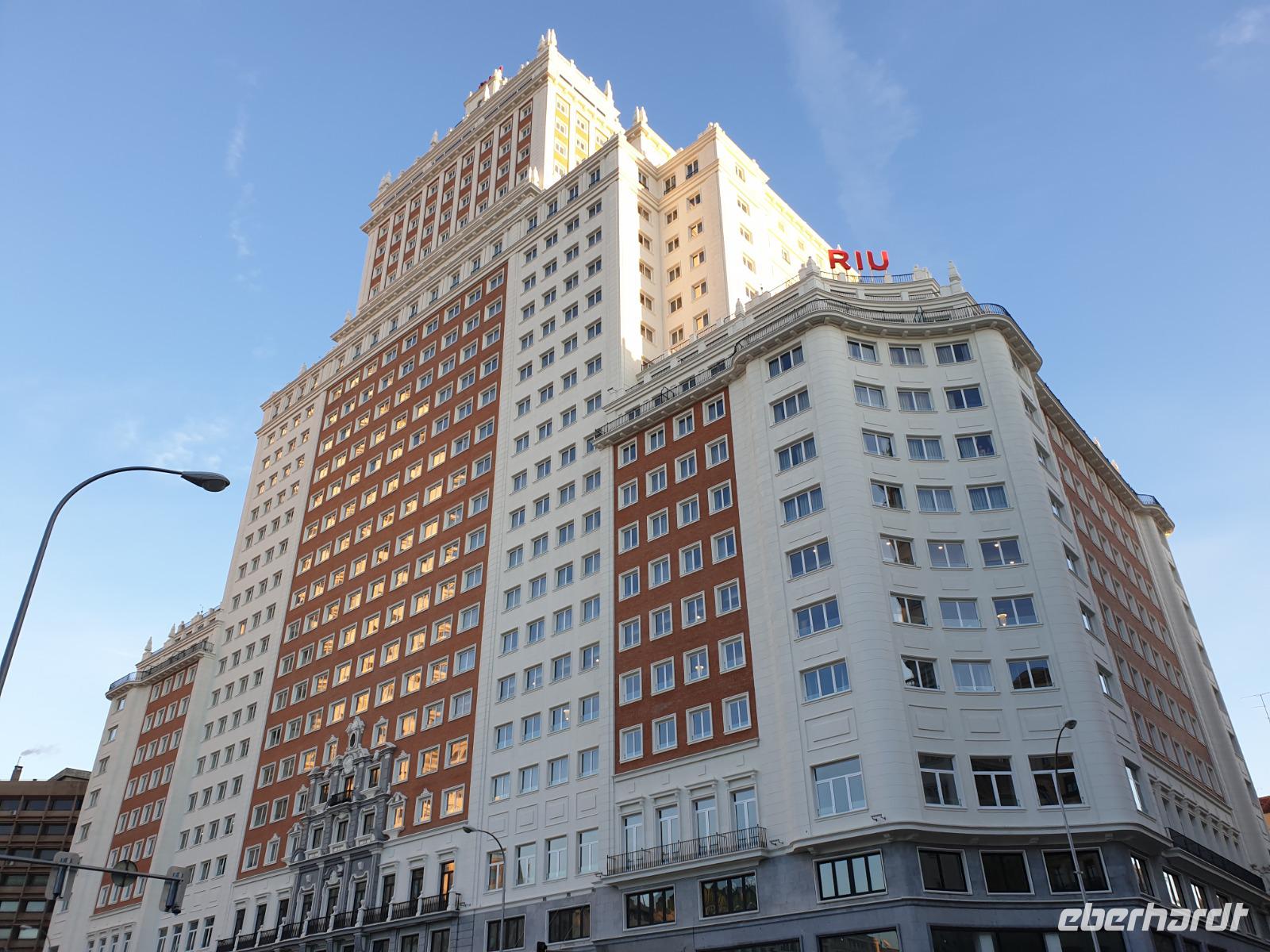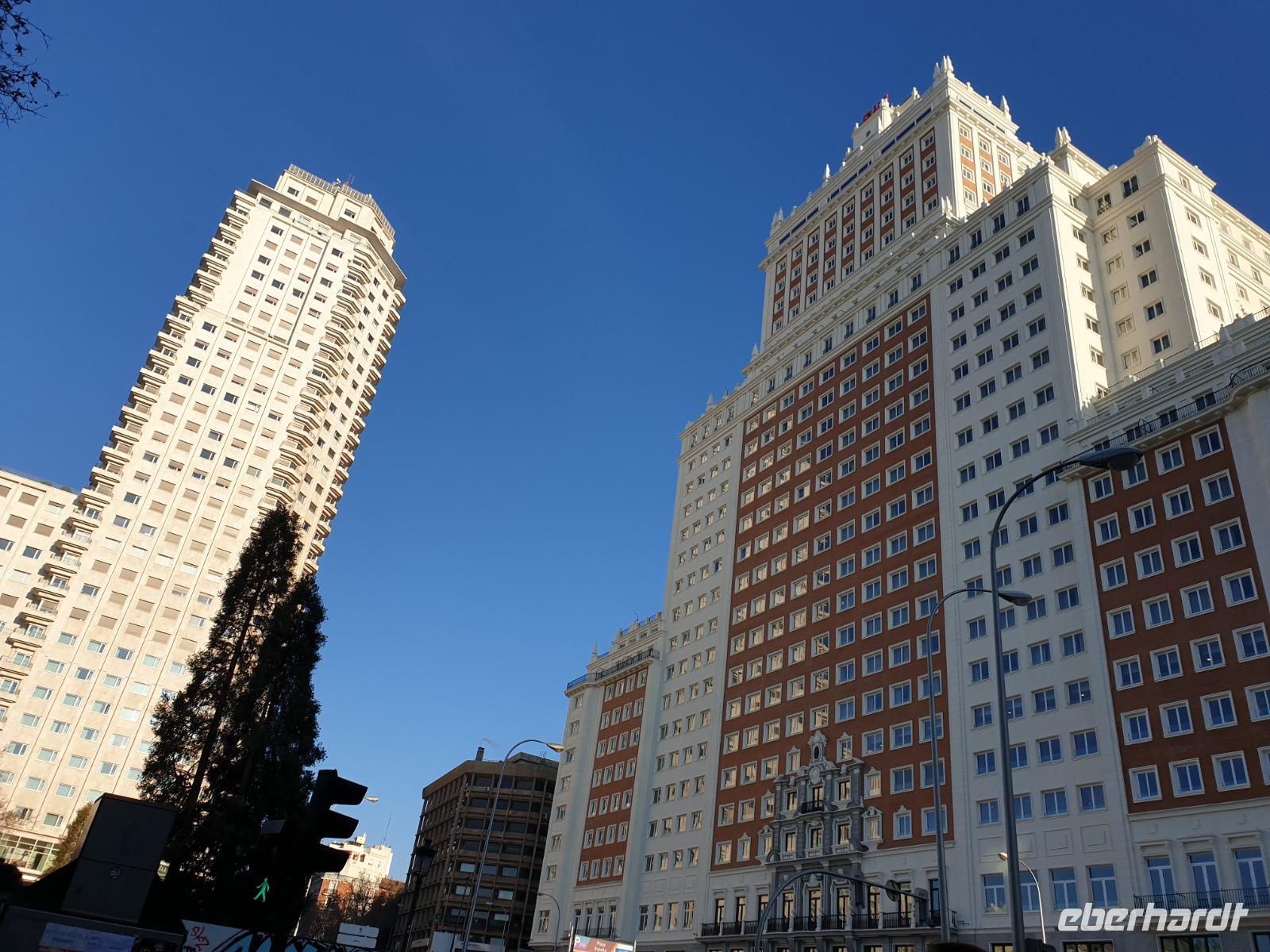 Kurze Zeit später checkten wir in unserem, im Herzen von Madrid gelegenen, 4-Sterne-Hotel Senator Gran Via 70 ein. Nun blieb Zeit, um sich frisch zu machen oder sich bei einem kleinen Nickerchen zu erholen, denn einige von uns waren am Morgen schon kurz nach Mitternacht abgeholt wurden. Um 16.15 Uhr trafen wir uns an der Rezeption vom Hotel. Um erst einmal ein bisschen Orientierung in meiner Heimatstadt zu gewinnen, starteten wir zu einer kleiner Stadtrundgang. So hatten wir die Gelegenheit, erste Eindrücke dieser wunderbar pulsierenden Metropole zu gewinnen und die Umgebung unseres Hotels im Zentrum der Stadt zu erkunden. Gemeinsam unternahmen wir zu Fuß einen Stadtrundgang. Zunächst ging es auf die Plaza de España, wo sich Denkmäler berühmter Schriftsteller befinden. Diesmal alles in Baustelle aber die waren da.