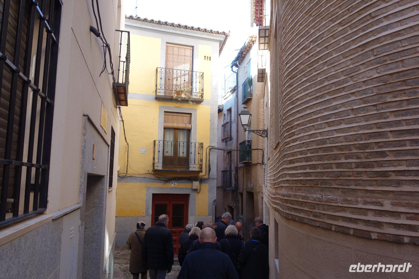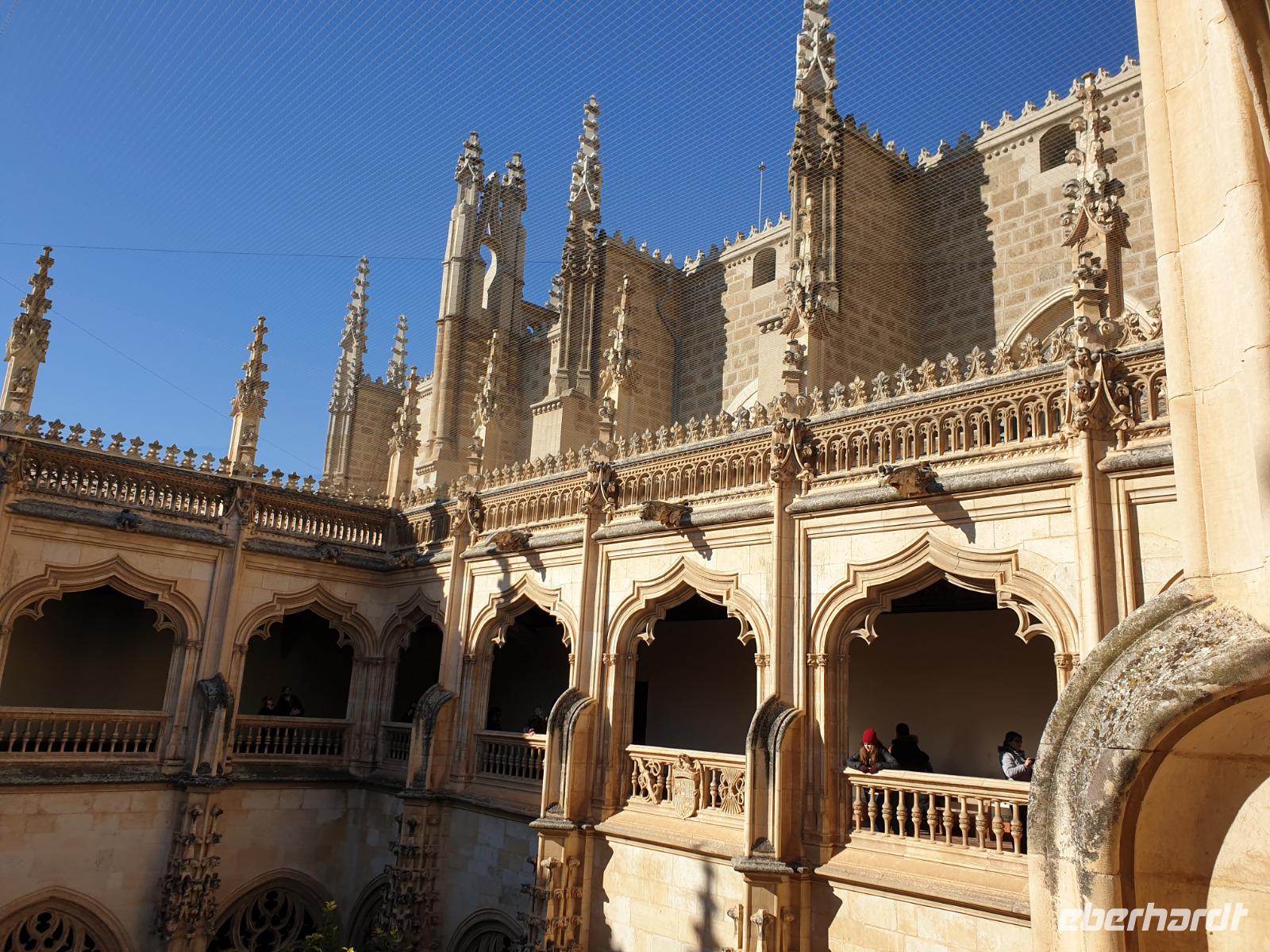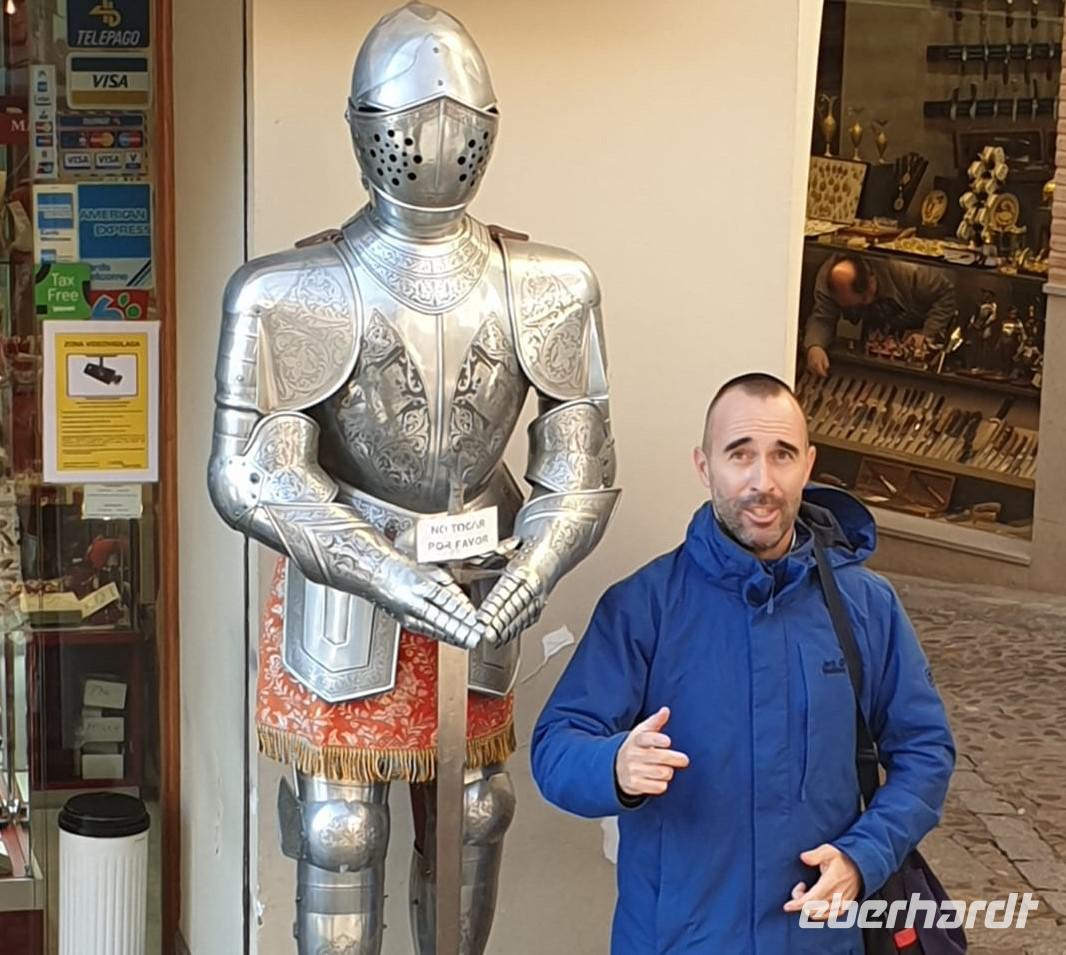Eines der Wahrzeichen der Stadt, den Arco de la Sangre, lernten wir am Ende bei der Stadtführung mit David kennen. Der aus Cervantes "Don Quijote" bekannte Bogen mit dem dahinter liegenden Alcazar (Palast) ist ein traumhaftes Fotomotiv. Aber das war am Ende des Tage wo wir uns von David am Zocodover Platz uns verabschiedeten. Erstmal spazierten wir gemeinsam durch die Straßen von Toledo. Weiter ging zu der jüdische Synagoge „Santa Maria La Blanca" oder "San Juan de los Reyes" Kloster. Toledo ist ein einziges und gutes Beispiel wie damals Christen, Juden und Muslime in Friede zusammenleben konnten.