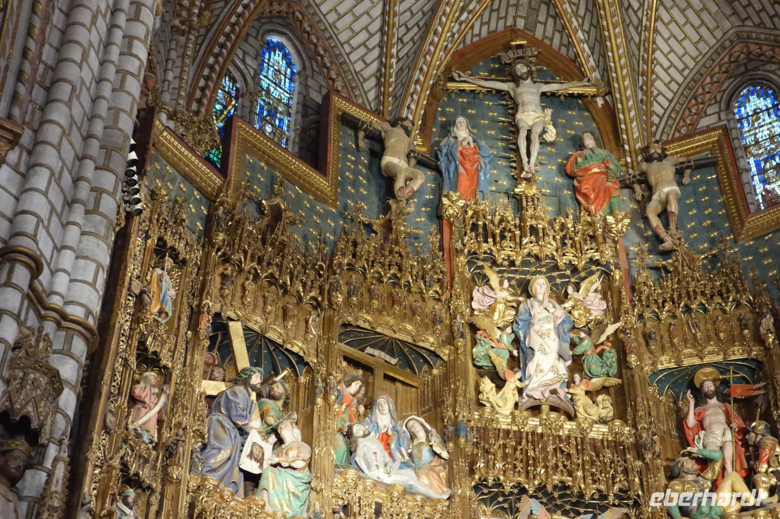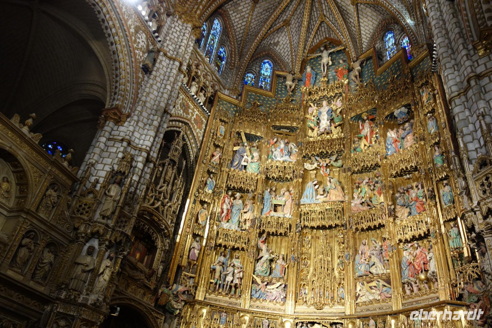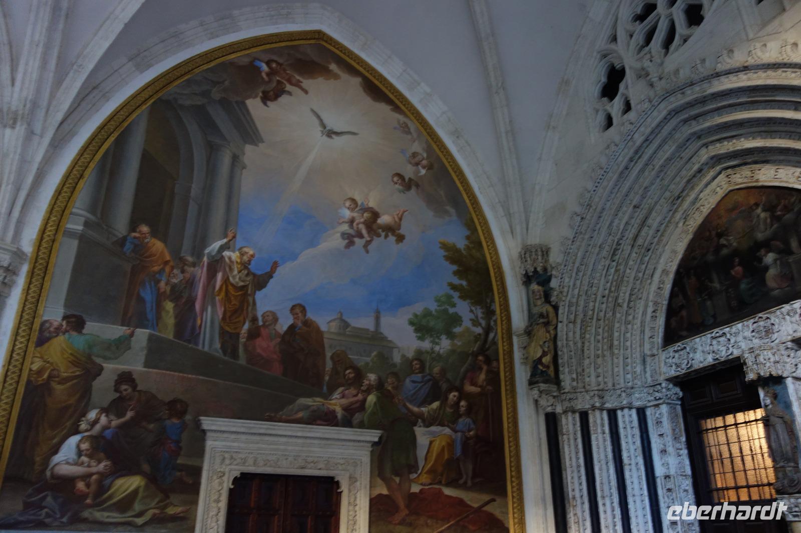 Eines der Wahrzeichen der Stadt, den Arco de la Sangre, lernten wir am Ende bei der Stadtführung mit David kennen. Der aus Cervantes "Don Quijote" bekannte Bogen mit dem dahinter liegenden Alcazar (Palast) ist ein traumhaftes Fotomotiv. Aber das war am Ende des Tage wo wir uns von David am Zocodover Platz uns verabschiedeten. Erstmal spazierten wir gemeinsam durch die Straßen von Toledo. Weiter ging zu der jüdische Synagoge „Santa Maria La Blanca" oder "San Juan de los Reyes" Kloster. Toledo ist ein einziges und gutes Beispiel wie damals Christen, Juden und Muslime in Friede zusammenleben konnten.