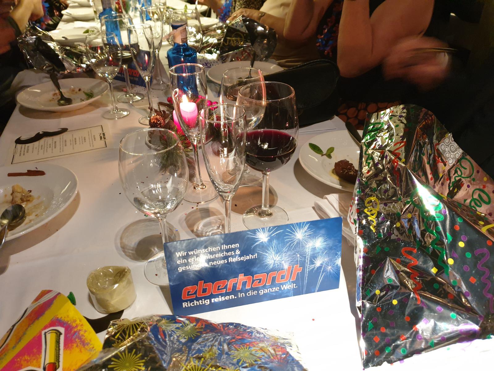 Der Nachmittag stand uns zur freien Verfügung, um uns für die Nacht auszuruhen, ehe wir am Abend zum nahe gelegenen Restaurant „Mercado de la Reina" aufbrachen. Es erwartet uns ein einzigartiges Silvester - Abendessen mit typisch spanischem Essen, Musik und Tanz. In einem urigen und auch modernen spanischen Ambiente erlebten wir die hiesigen Silvesterbräuche hautnah. Eine unterhaltsame Besonderheit ist das Essen von Weintrauben, den sogenannten "Glückstrauben" um Mitternacht, mit den wir schon bekannt und Profis waren. Jeder bekam eine kleine Tüte. Um 12 Uhr gab es ein klein technisches Problem aber Benjamin nahm einen Löffeln und ein Glas, um die 12 Schäge nachzustellen. Es war ganz lustig und alle haben es geschafft, die 12 Trauben zur richtigen Zeit zu essen. Für unsere Gruppe waren drei Tische reserviert und um uns herum gab es andere Tische mit Einheimischen. Es war lustig. Die 5 Gänge-Menü war einfach Spitze und sehr lecker sowie die spanische Weine. Nach Mitternacht kam die Musik, vor allem Boney M. und das berühmtes Lied von Mecano „En la Puerta del Sol", mit dem wir bei uns in Spanien das Jahr verabschieden und begrüßen. Wie wünschten uns alle ein gesundes und frohes neues Jahr 2020. Nun bestand die Möglichkeit, sich ein erstes alkoholisches Getränk gratis zu holen und zu tanzen. Kurz vor 2 Uhr waren wir langsam müde und gingen deshalb langam über die Gran Via Alle hintunter zurück ins Hotel.