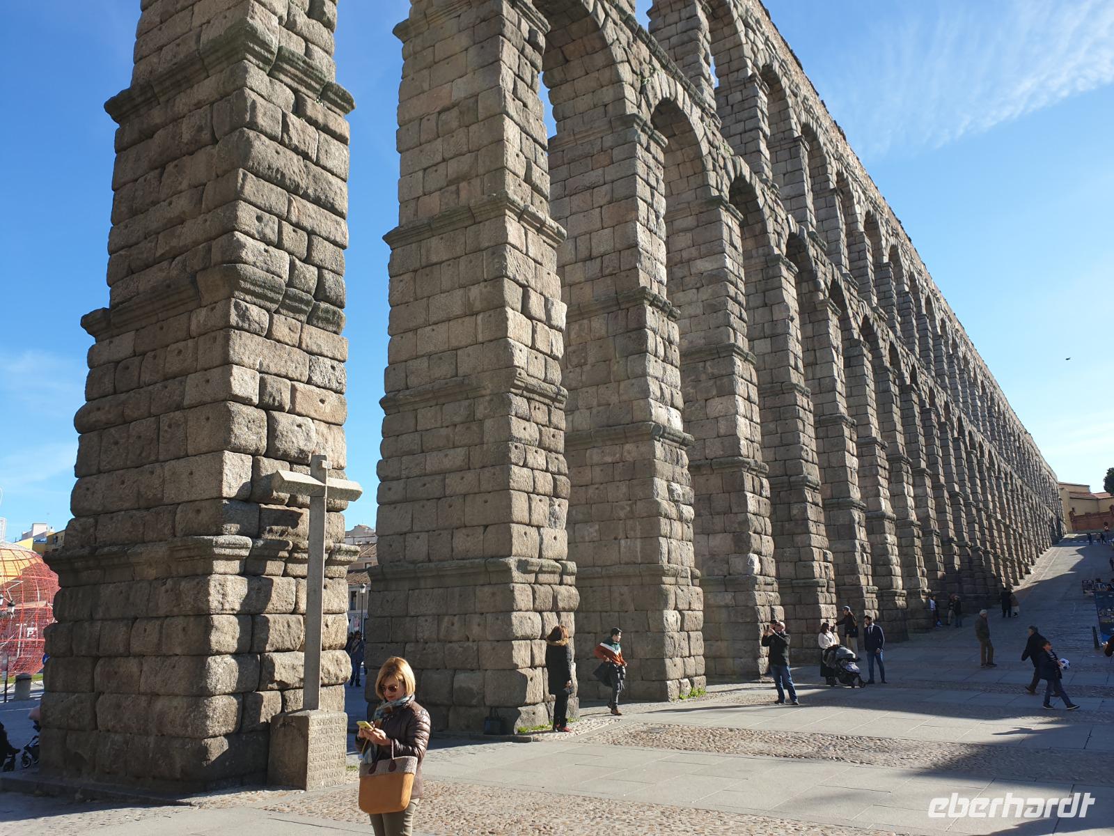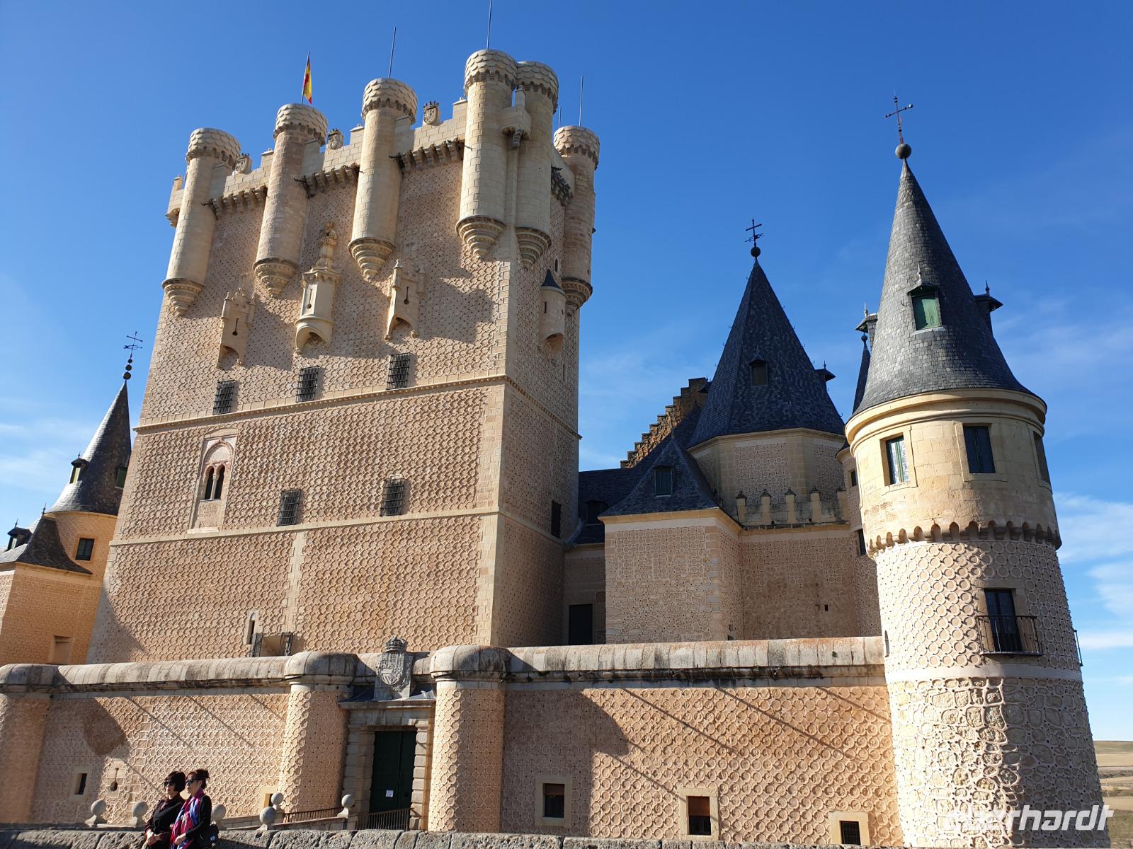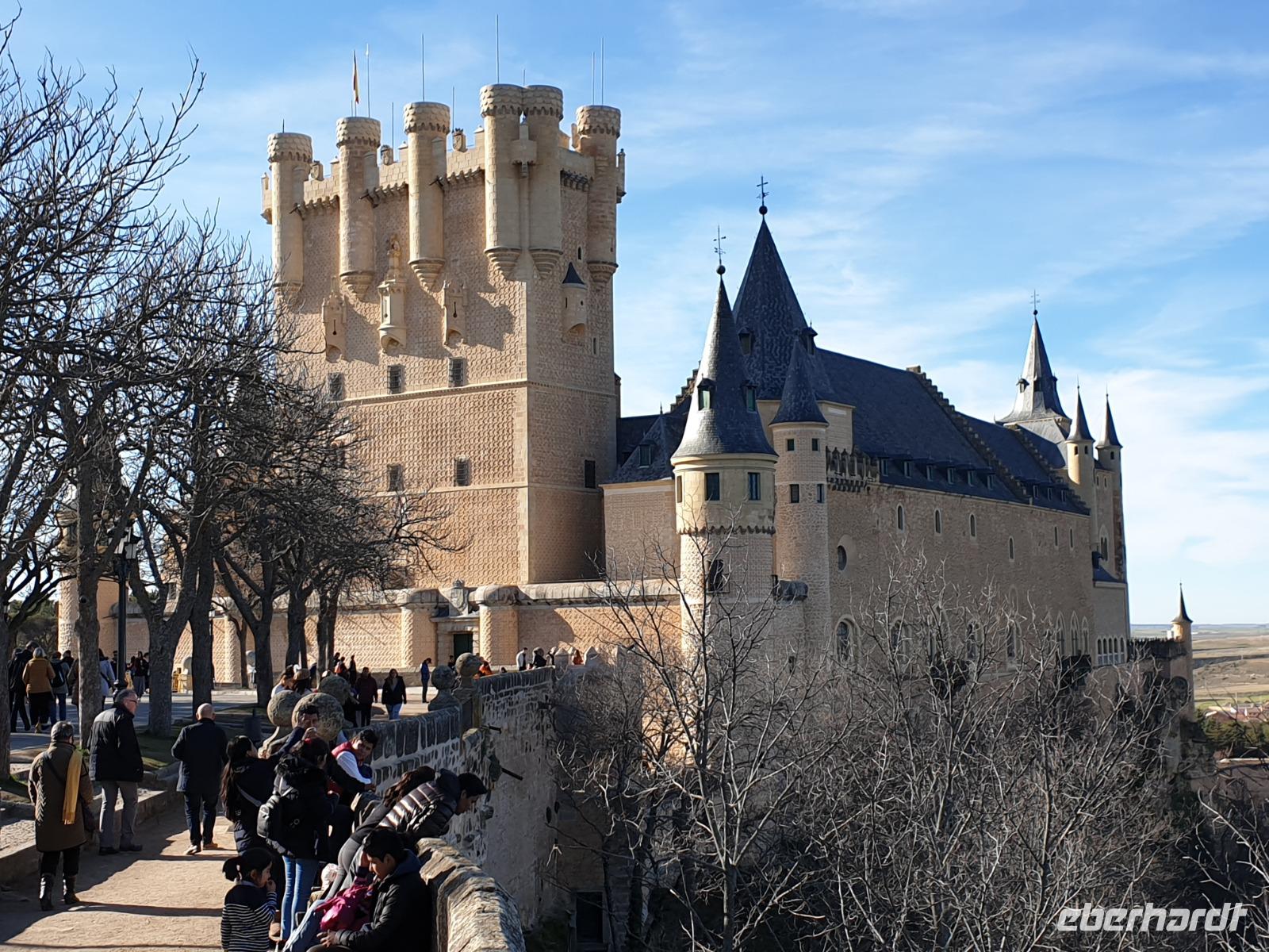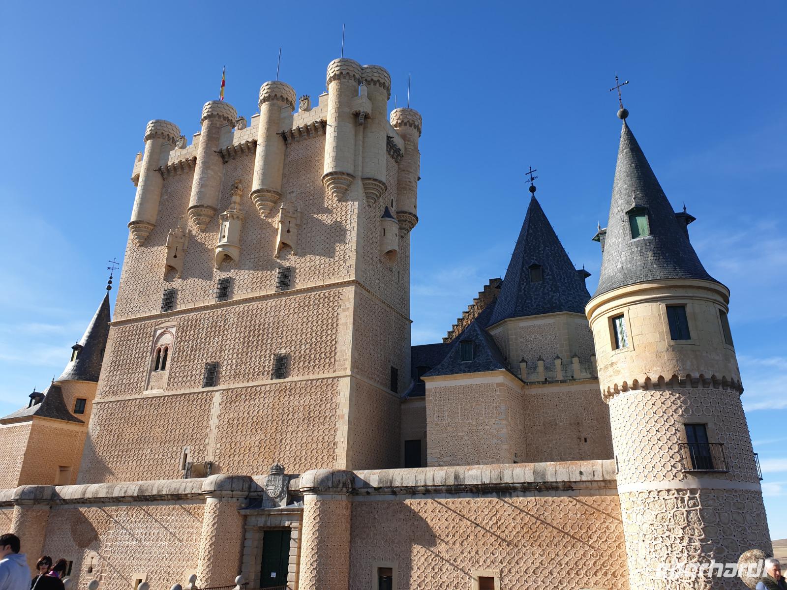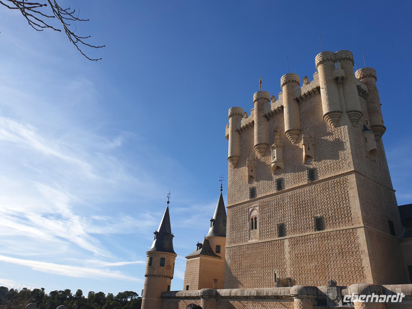 Die ersten Stunden des Vormittags des Neujahrs standen uns zur freien Verfügung. Nach einem späten Frühstück war Segovia das Ziel unseres halbtägigen Ausfluges. Erster Stopp waren die Berge. Wir fuhren über die Berge und über den „Puerto de Navacerrada" Pass in National Park Guadarrama weiter in die Stadt Segovia, die insbesondere für ihre zahlreichen Kirchen aus romanischer Zeit berühmt geworden ist. Oben am Puerto de Navacerrada steigen wir von Bus aus und könnten mit Seilbahn hoch auf die Bola del Mundo Gipfel fahren und über die Schnee bisschen laufen. Es war herrlich. Sonnig. Kein Wind. Man könnte sogar die 4 Türme Hochhäuser von Madrid über die Nebel sehen. Unvergesslich. Um 13 Uhr waren wir schon in Segovia. Als besonderer Höhepunkt gilt das über 28 Meter hohe antike römische Aquädukt. Majestätisch erhebt sich dieser eindrucksvolle Bau in mitten der Stadt und durchläuft diese auf 700 Meter Länge. Nach dem Stadtrundgang mit David hatten wir ab 14.30 genug Zeit zum Mittagessen, um die berühmte Spezialität „Cochinillo" (BabySchwein) zu essen obwohl nach dem großes Silvester Essen von gestern, hatten einige von uns noch keinen richtigen Hunger.