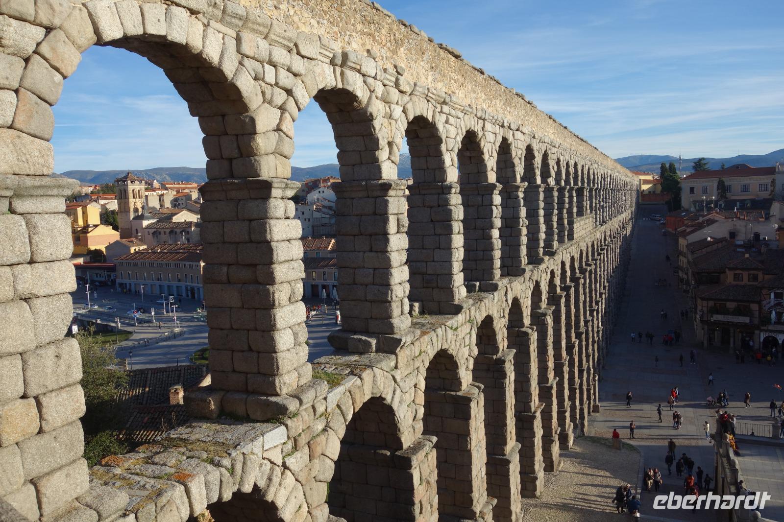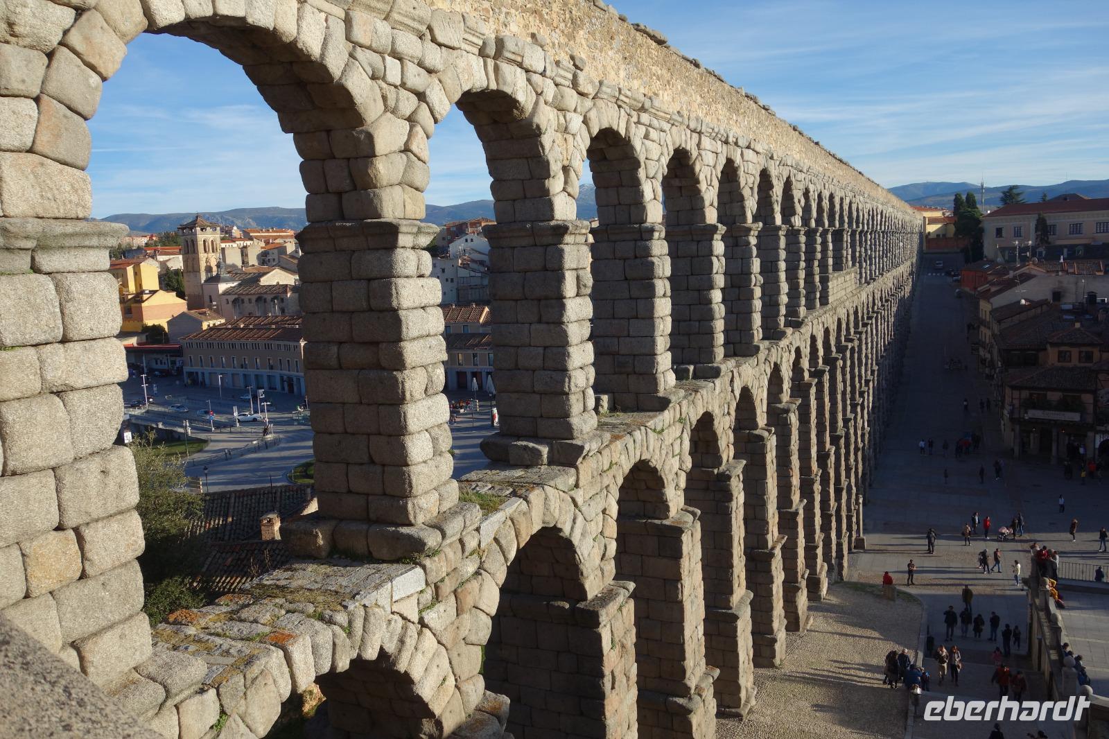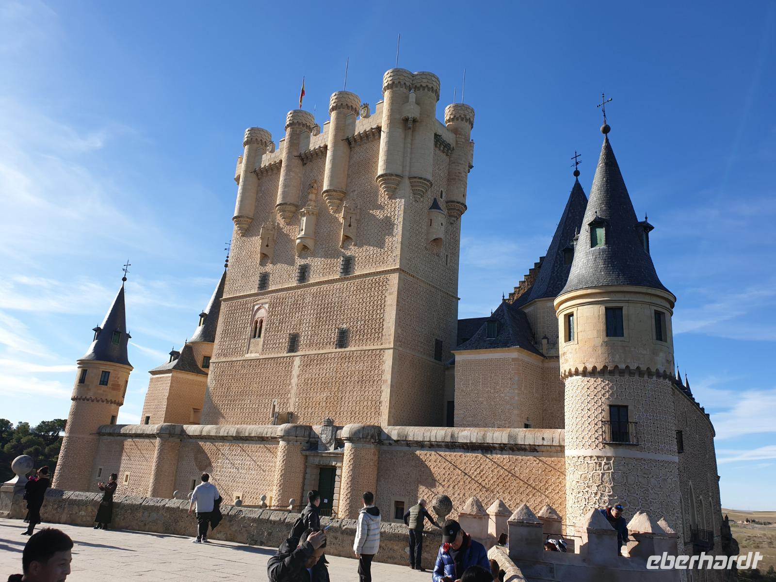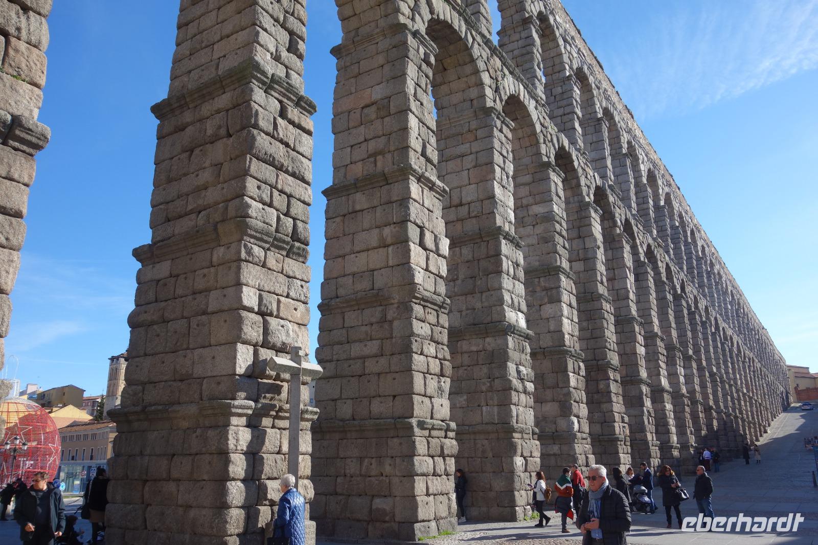 Die ersten Stunden des Vormittags des Neujahrs standen uns zur freien Verfügung. Nach einem späten Frühstück war Segovia das Ziel unseres halbtägigen Ausfluges. Erster Stopp waren die Berge. Wir fuhren über die Berge und über den „Puerto de Navacerrada" Pass in National Park Guadarrama weiter in die Stadt Segovia, die insbesondere für ihre zahlreichen Kirchen aus romanischer Zeit berühmt geworden ist. Oben am Puerto de Navacerrada steigen wir von Bus aus und könnten mit Seilbahn hoch auf die Bola del Mundo Gipfel fahren und über die Schnee bisschen laufen. Es war herrlich. Sonnig. Kein Wind. Man könnte sogar die 4 Türme Hochhäuser von Madrid über die Nebel sehen. Unvergesslich. Um 13 Uhr waren wir schon in Segovia. Als besonderer Höhepunkt gilt das über 28 Meter hohe antike römische Aquädukt. Majestätisch erhebt sich dieser eindrucksvolle Bau in mitten der Stadt und durchläuft diese auf 700 Meter Länge. Nach dem Stadtrundgang mit David hatten wir ab 14.30 genug Zeit zum Mittagessen, um die berühmte Spezialität „Cochinillo" (BabySchwein) zu essen obwohl nach dem großes Silvester Essen von gestern, hatten einige von uns noch keinen richtigen Hunger.