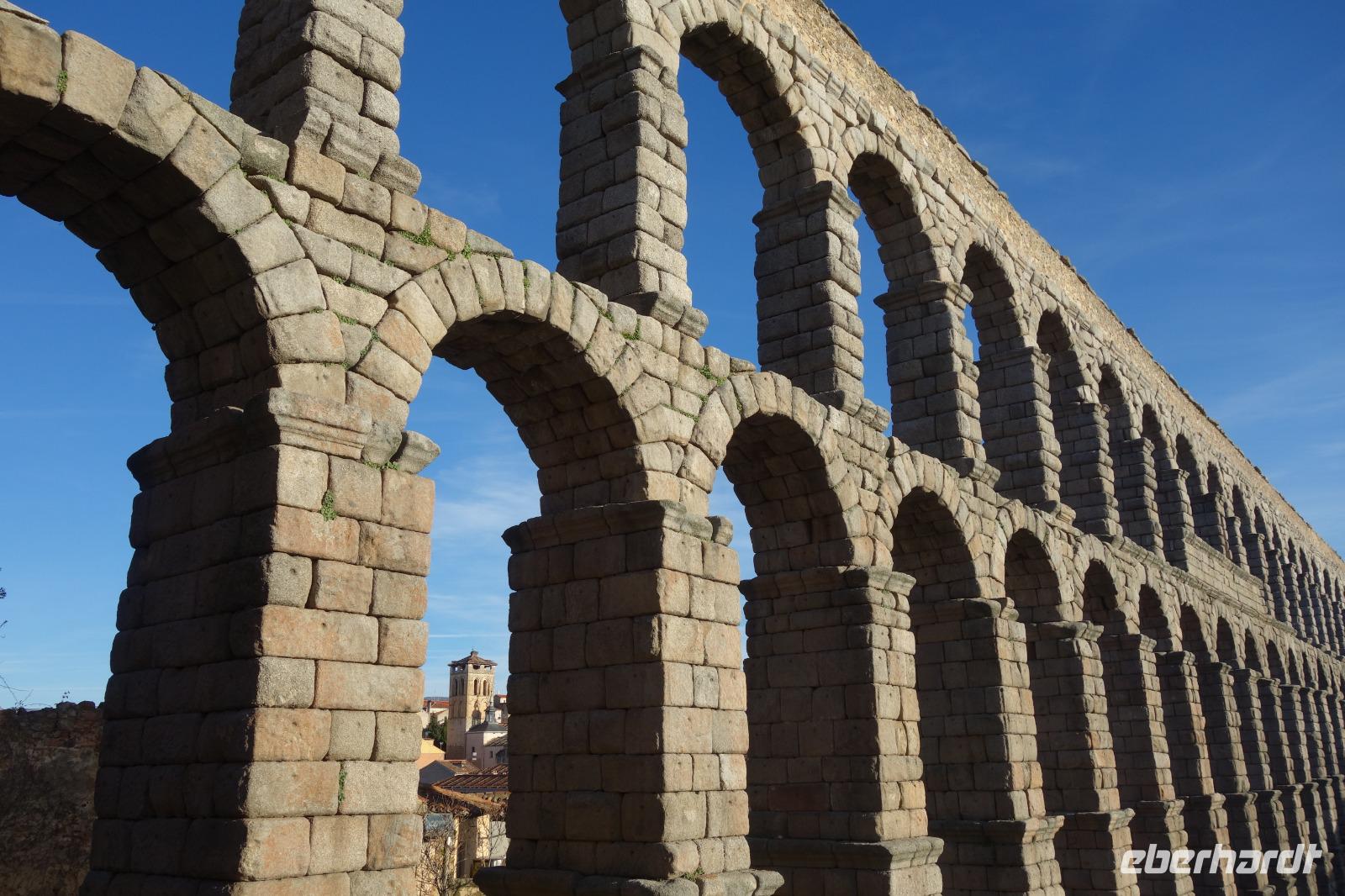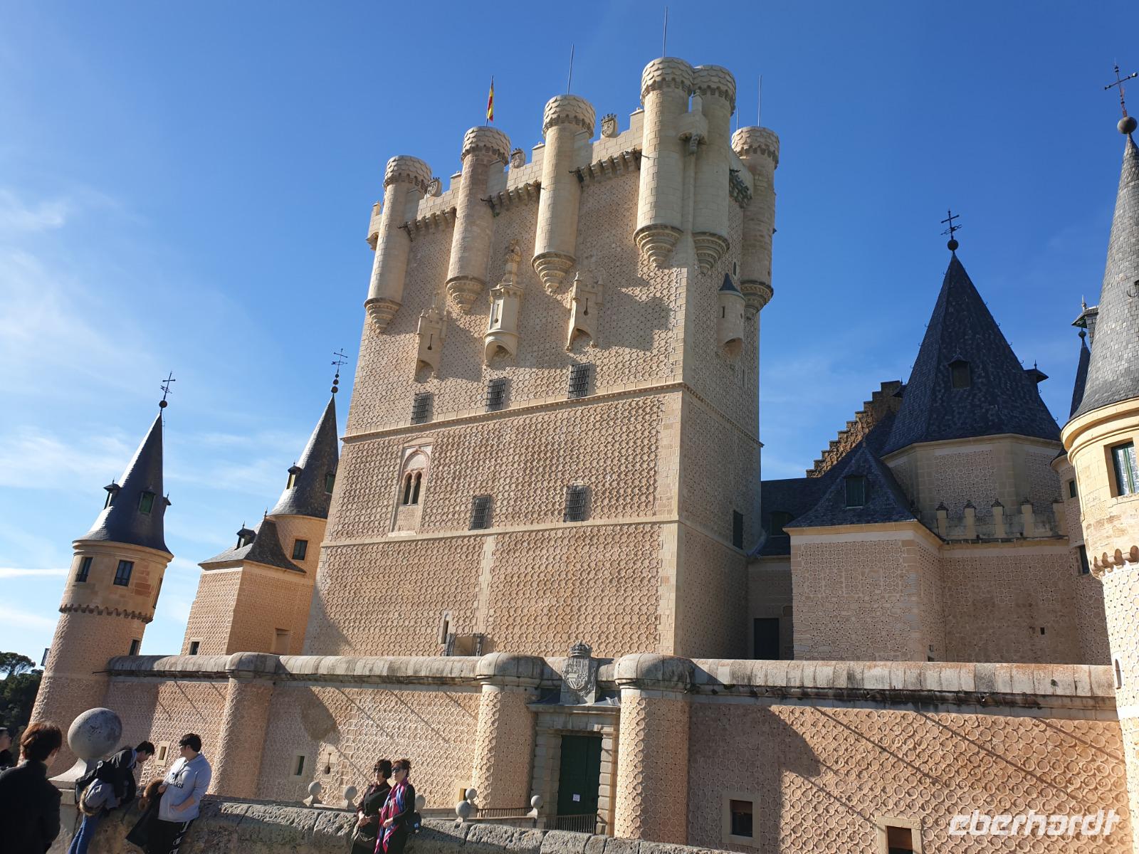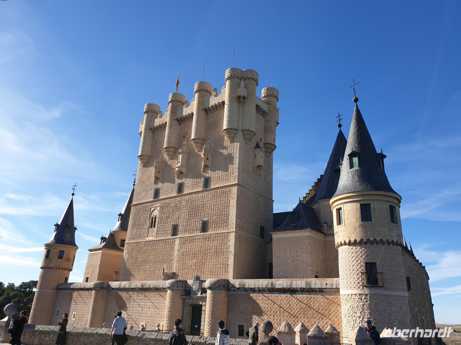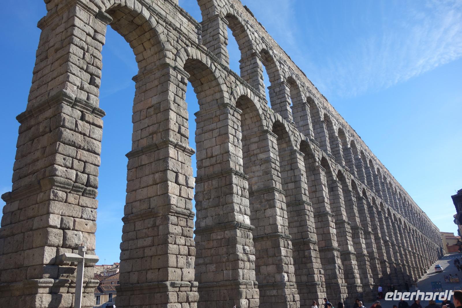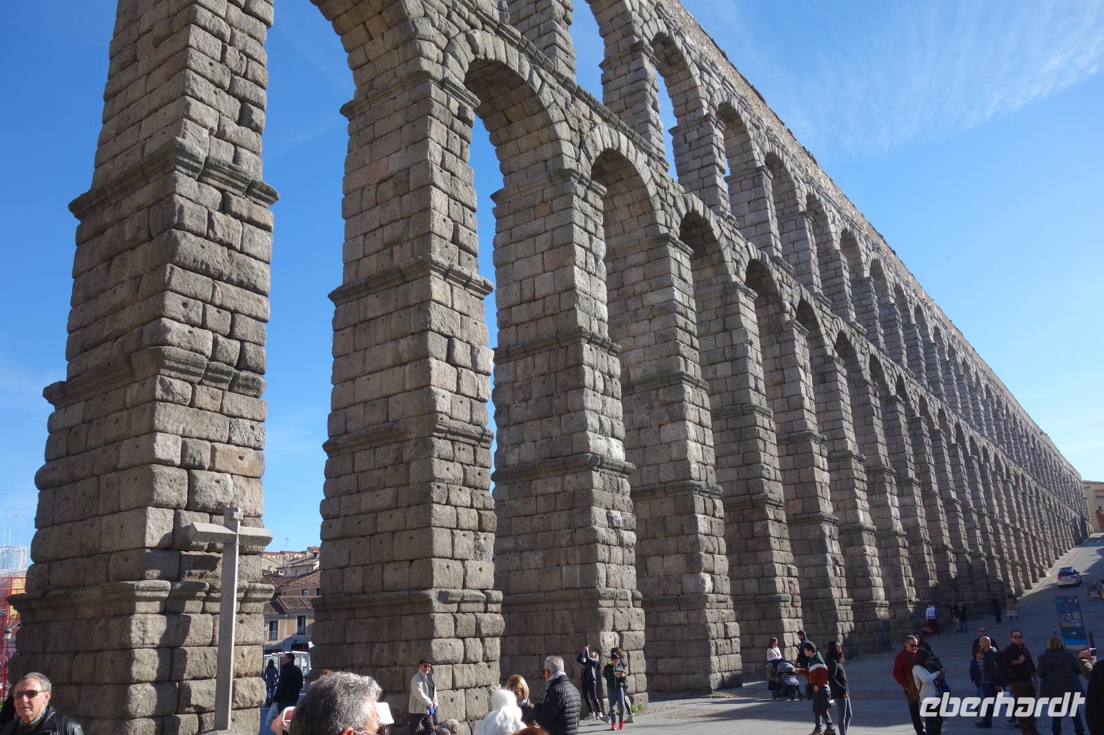 Die ersten Stunden des Vormittags des Neujahrs standen uns zur freien Verfügung. Nach einem späten Frühstück war Segovia das Ziel unseres halbtägigen Ausfluges. Erster Stopp waren die Berge. Wir fuhren über die Berge und über den „Puerto de Navacerrada" Pass in National Park Guadarrama weiter in die Stadt Segovia, die insbesondere für ihre zahlreichen Kirchen aus romanischer Zeit berühmt geworden ist. Oben am Puerto de Navacerrada steigen wir von Bus aus und könnten mit Seilbahn hoch auf die Bola del Mundo Gipfel fahren und über die Schnee bisschen laufen. Es war herrlich. Sonnig. Kein Wind. Man könnte sogar die 4 Türme Hochhäuser von Madrid über die Nebel sehen. Unvergesslich. Um 13 Uhr waren wir schon in Segovia. Als besonderer Höhepunkt gilt das über 28 Meter hohe antike römische Aquädukt. Majestätisch erhebt sich dieser eindrucksvolle Bau in mitten der Stadt und durchläuft diese auf 700 Meter Länge. Nach dem Stadtrundgang mit David hatten wir ab 14.30 genug Zeit zum Mittagessen, um die berühmte Spezialität „Cochinillo" (BabySchwein) zu essen obwohl nach dem großes Silvester Essen von gestern, hatten einige von uns noch keinen richtigen Hunger.