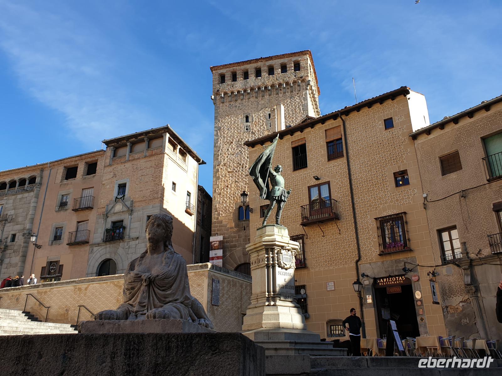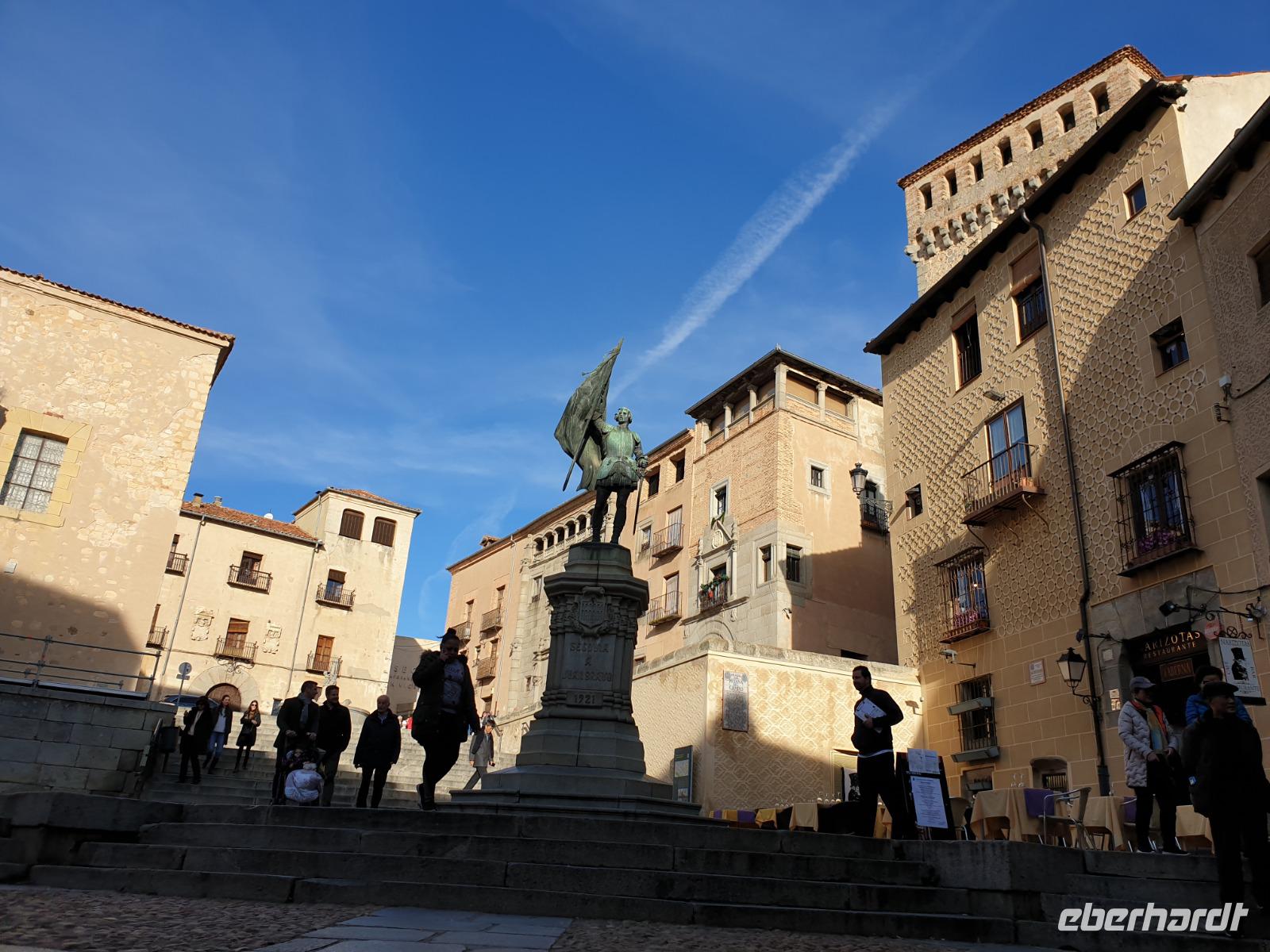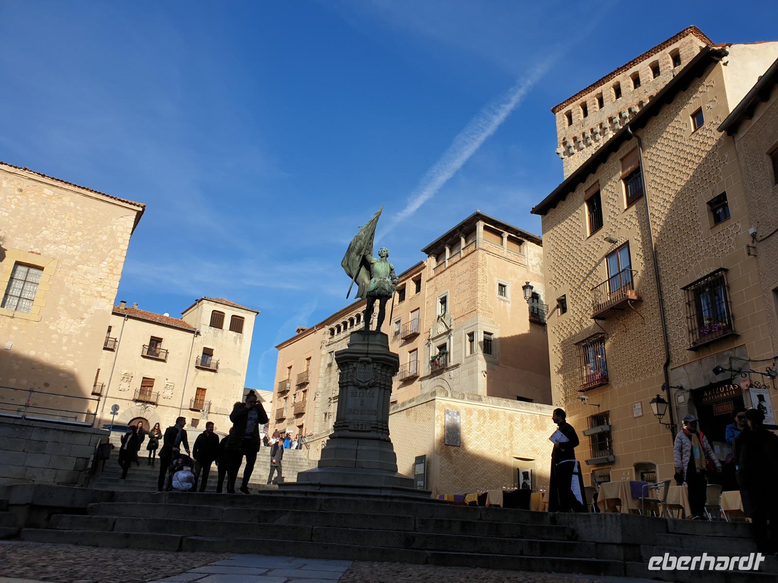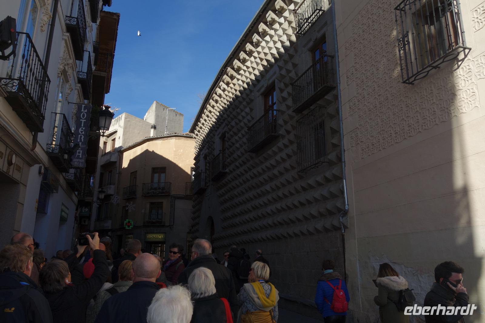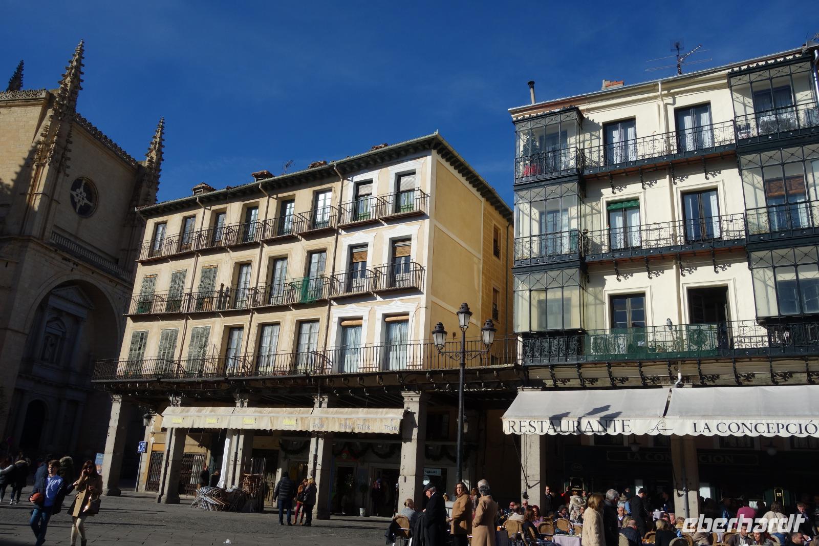 Die ersten Stunden des Vormittags des Neujahrs standen uns zur freien Verfügung. Nach einem späten Frühstück war Segovia das Ziel unseres halbtägigen Ausfluges. Erster Stopp waren die Berge. Wir fuhren über die Berge und über den „Puerto de Navacerrada" Pass in National Park Guadarrama weiter in die Stadt Segovia, die insbesondere für ihre zahlreichen Kirchen aus romanischer Zeit berühmt geworden ist. Oben am Puerto de Navacerrada steigen wir von Bus aus und könnten mit Seilbahn hoch auf die Bola del Mundo Gipfel fahren und über die Schnee bisschen laufen. Es war herrlich. Sonnig. Kein Wind. Man könnte sogar die 4 Türme Hochhäuser von Madrid über die Nebel sehen. Unvergesslich. Um 13 Uhr waren wir schon in Segovia. Als besonderer Höhepunkt gilt das über 28 Meter hohe antike römische Aquädukt. Majestätisch erhebt sich dieser eindrucksvolle Bau in mitten der Stadt und durchläuft diese auf 700 Meter Länge. Nach dem Stadtrundgang mit David hatten wir ab 14.30 genug Zeit zum Mittagessen, um die berühmte Spezialität „Cochinillo" (BabySchwein) zu essen obwohl nach dem großes Silvester Essen von gestern, hatten einige von uns noch keinen richtigen Hunger.