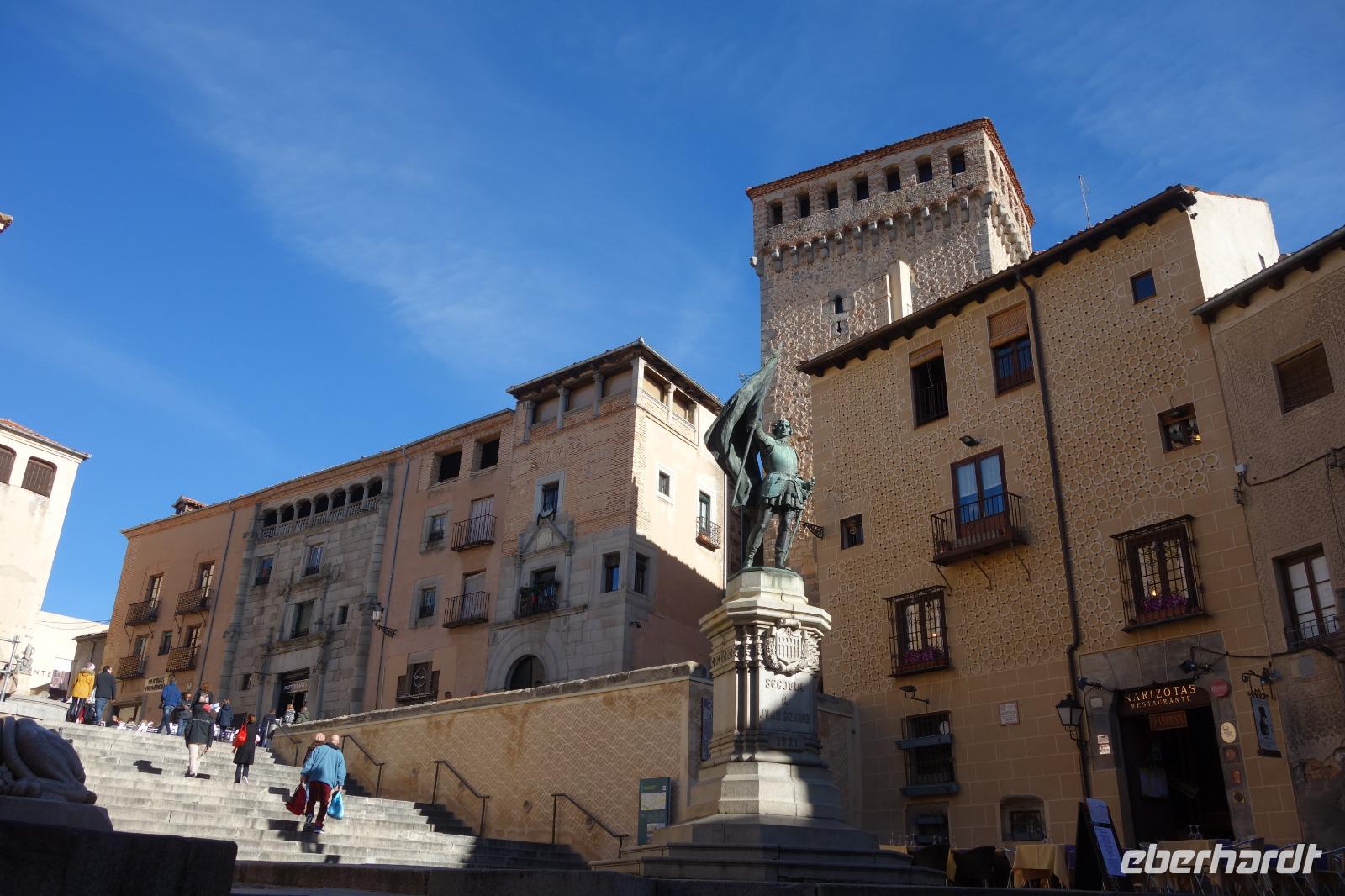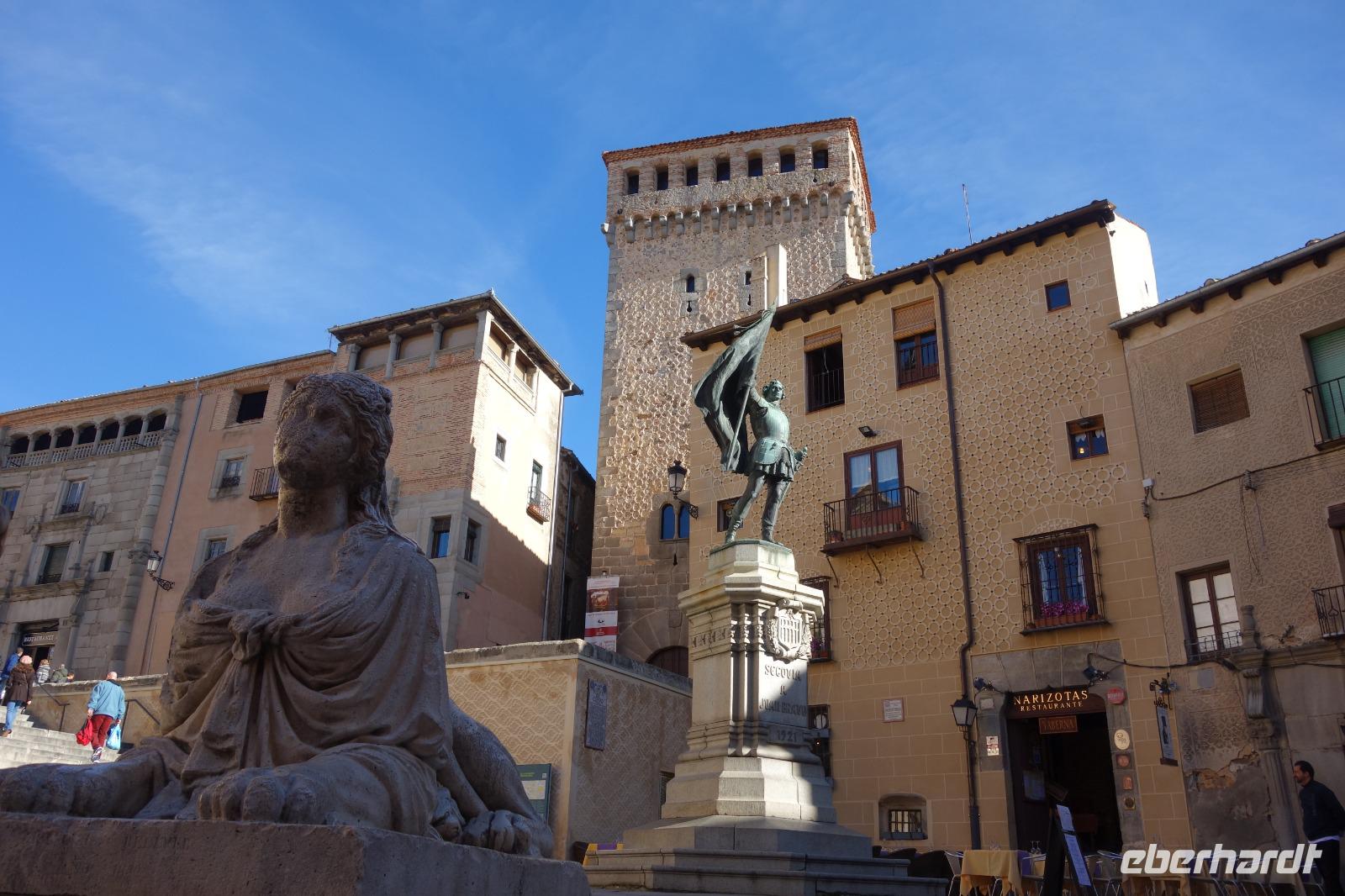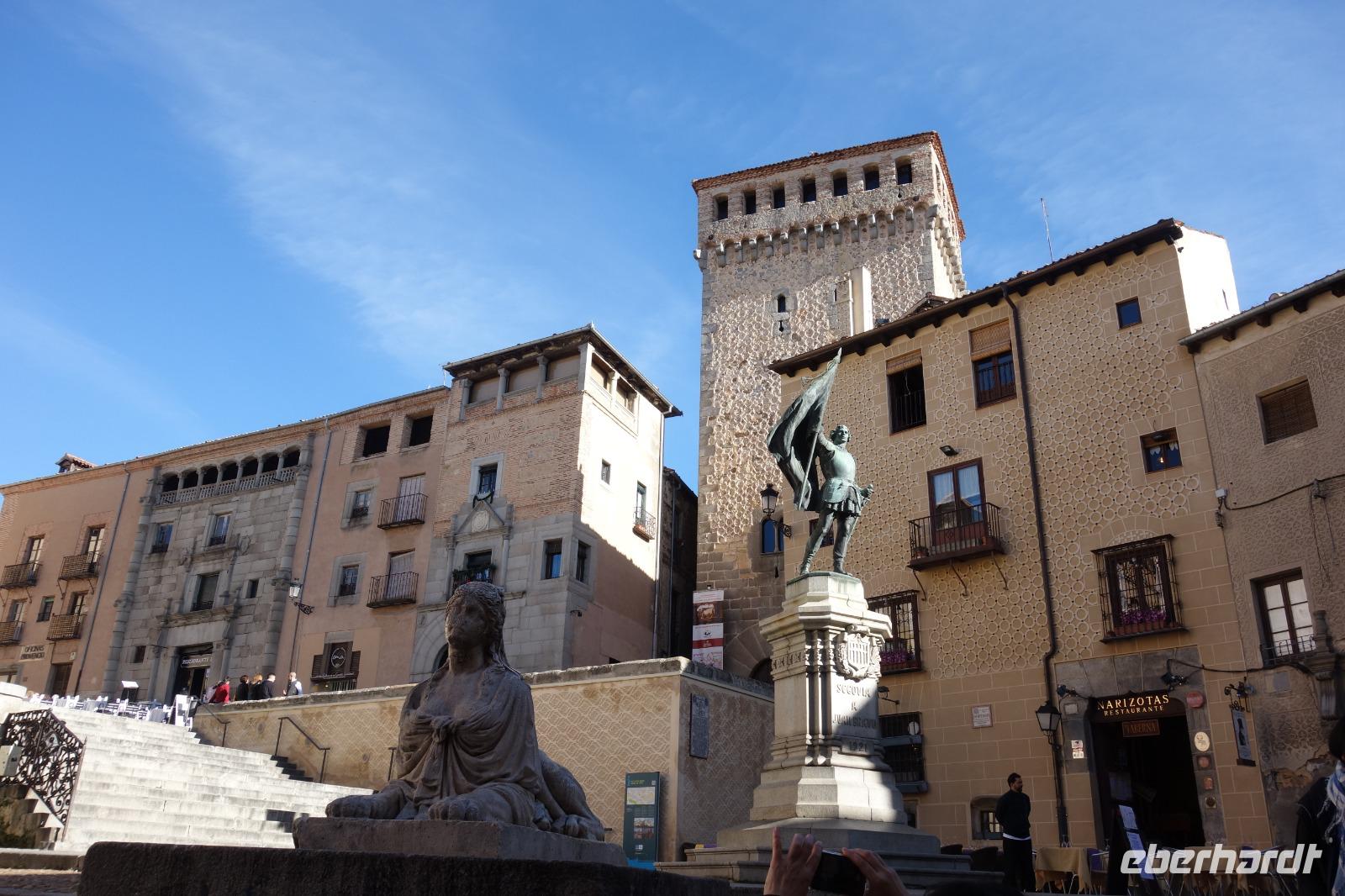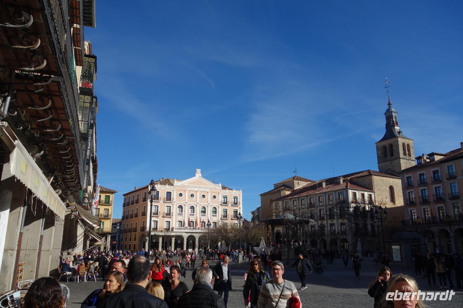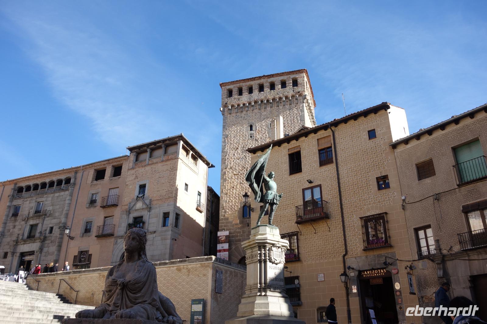 Die ersten Stunden des Vormittags des Neujahrs standen uns zur freien Verfügung. Nach einem späten Frühstück war Segovia das Ziel unseres halbtägigen Ausfluges. Erster Stopp waren die Berge. Wir fuhren über die Berge und über den „Puerto de Navacerrada" Pass in National Park Guadarrama weiter in die Stadt Segovia, die insbesondere für ihre zahlreichen Kirchen aus romanischer Zeit berühmt geworden ist. Oben am Puerto de Navacerrada steigen wir von Bus aus und könnten mit Seilbahn hoch auf die Bola del Mundo Gipfel fahren und über die Schnee bisschen laufen. Es war herrlich. Sonnig. Kein Wind. Man könnte sogar die 4 Türme Hochhäuser von Madrid über die Nebel sehen. Unvergesslich. Um 13 Uhr waren wir schon in Segovia. Als besonderer Höhepunkt gilt das über 28 Meter hohe antike römische Aquädukt. Majestätisch erhebt sich dieser eindrucksvolle Bau in mitten der Stadt und durchläuft diese auf 700 Meter Länge. Nach dem Stadtrundgang mit David hatten wir ab 14.30 genug Zeit zum Mittagessen, um die berühmte Spezialität „Cochinillo" (BabySchwein) zu essen obwohl nach dem großes Silvester Essen von gestern, hatten einige von uns noch keinen richtigen Hunger.