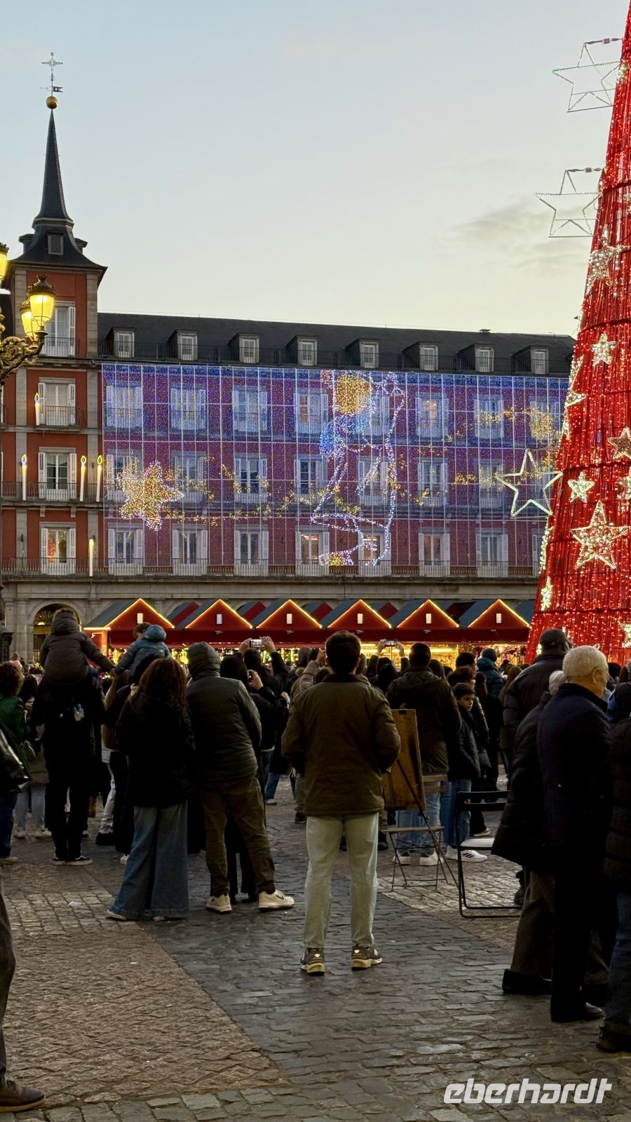 Unser endgültiges Ziel: Madrid! Dort erwartete uns strahlender Sonnenschein inmitten kalter Winde. Eine festliche Atmosphäre auf den Straßen und erst recht auf der Plaza Mayor mit ihrem traditionellen Weihnachtsmarkt – denn hier ist Weihnachten noch nicht vorbei, da man auf die Ankunft der Heiligen Drei Könige am 5. Januar wartet, die schon nicht mehr weit entfernt ist.