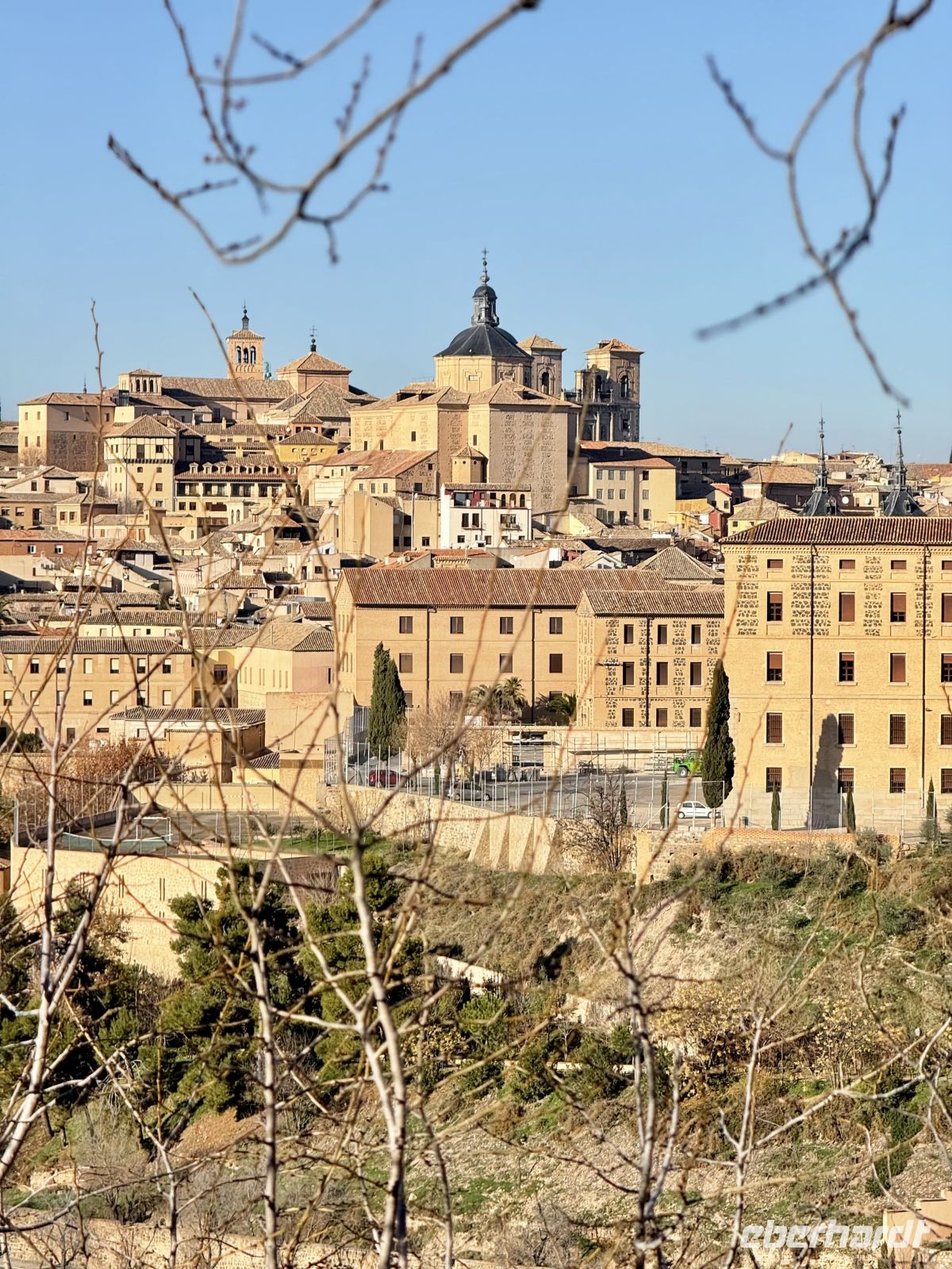 Die Morgendämmerung zeigte sich mit strahlendem Sonnenschein, der nach einigen Kilometern in Richtung Toledo vor unseren eigenen Augen zu einem Vollmond am helllichten Tag zu werden schien. Hier bedeckte der Nebel alles und verlieh jedem zurückgelegten Kilometer einen magischen Aspekt. So fanden wir Toledo vor: die historische Stadt auf der Anhöhe, eingehüllt in einen Nebelschleier, der aus der Ferne wenig von ihr erkennen ließ. Wir fuhren einmal um die Stadt herum und auf der anderen Seite lächelte uns ihr Gesicht zu. Und von diesem Moment an tauchten wir in ihre Gassen ein, nun ohne Nebel, aber mit einer eisigen Brise, die im Kontrast zur wieder strahlenden Sonne stand.