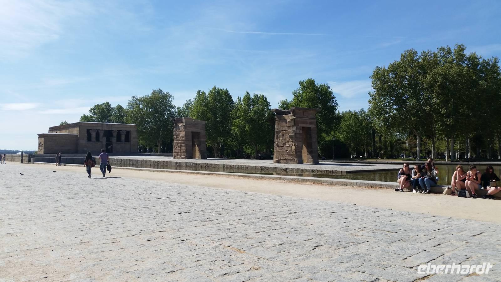 Anschließend gingen wir zu der berühmte „Templo de Debod", dem kleinen altägyptischen Tempel und ältesten Bauwerk Madrids. Es war ein Geschenk der ägyptischen Regierung an Spanien zum Dank für die Hilfe der spanischen Archäologen bei der Rettung Abu Simbels während des Baus des Asusanstaudamms vor mehr als 50 Jahren. Von hier hat man einen der besten Ausblicke von Madrid bis zu den Gebirgsketten voller Schnee über den Königspalast und die Casa de Campo. Wir wollten heute gar nicht viel mehr sehen, da wir noch einen richtigen Stadtrundgang haben würden, aber einen ersten Eindruck von meiner Heimat wollte ich meinen Gästen schon heute geben. Die Sonne schien und wir hatten unser köstliches Abendessen in einem Restaurant bestellt. „La Bodega de los Secretos" ist ein alter Keller, welcher wie eine kleine Höhle unterirdisch erbaut wurde - Herrlich. Uns hat es alles sehr geschmeckt. Wir hatten Glück mit dem Wetter in diesen Tagen, da es immer sonnig war. Man darf nicht vergessen, dass sich Madrid in einer Höhe von 665 Metern befindet. Wenn die Sonne scheint, ist es sehr angenehm, aber am Abend und in der Nacht kann es richtig frisch sein. Geschafft von dem langen Tag, gingen wir so direkt wie möglich zurück ins Hotel und ab ins Bett.