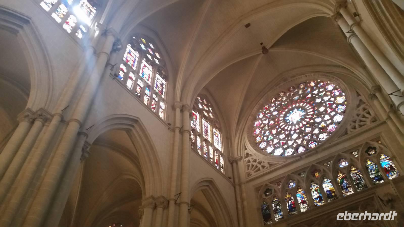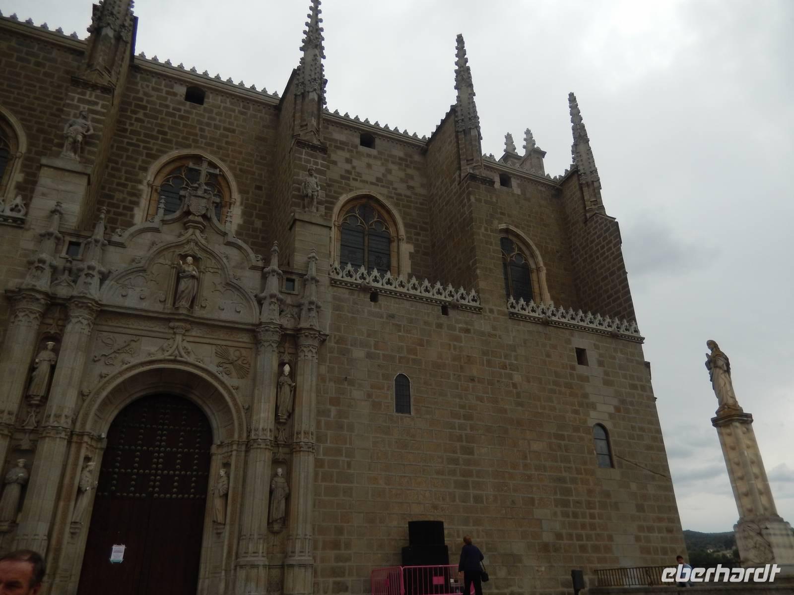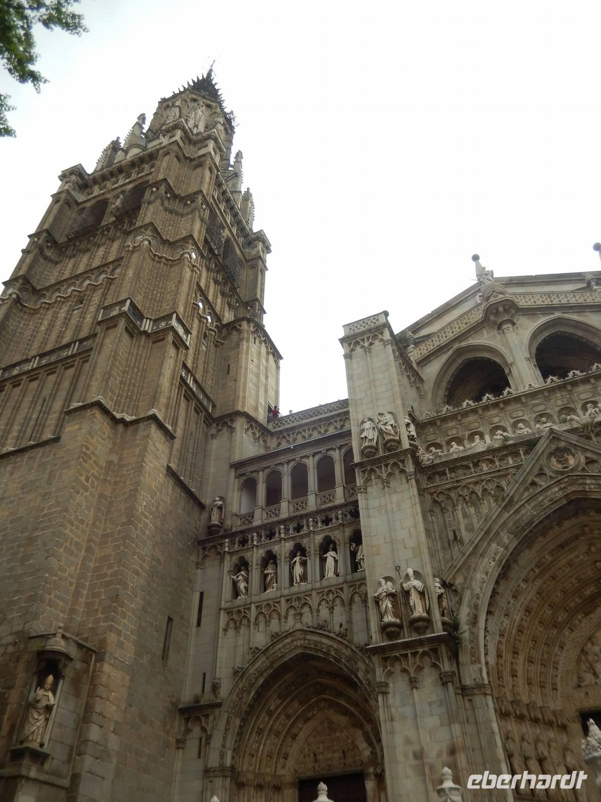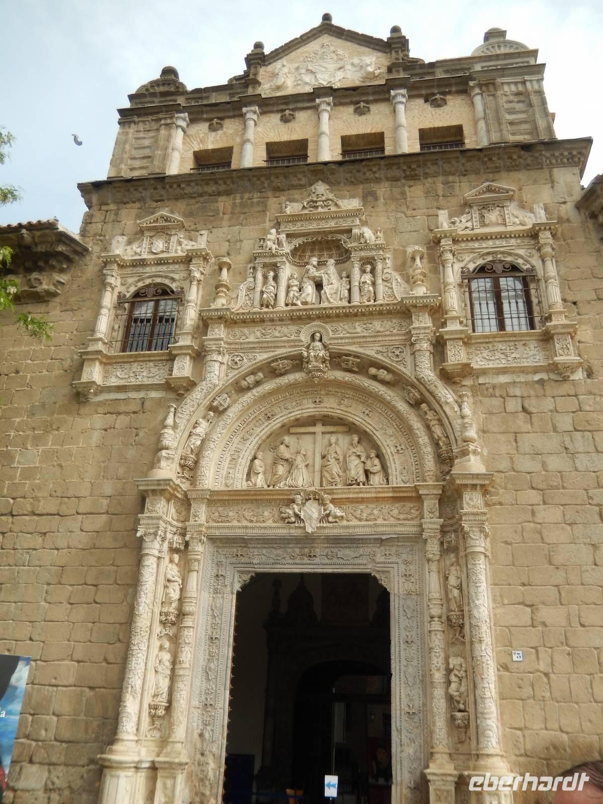 Eines der Wahrzeichen der Stadt, den Arco de la Sangre, lernten wir später bei einer Stadtführung kennen. Der aus Cervantes "Don Quijote" bekannte Bogen mit dem dahinter liegenden Alcazar (Palast) ist ein traumhaftes Fotomotiv. Wir fingen hier bei dem Zocodover Platz an und spazierten gemeinsam durch die Straßen von Toledo. Zuerst besuchten wir die imposante Kathedrale. Dieser Dom hat 2 Türme, aber einer war nicht zu Ende gebaut worden, da dann das Geld gefehlt hatte. Von innen erinnerte uns dieser Dom an den von Sevilla oder Malaga. Später besuchten wir das berühmte Gemälde von El Greco „Das Begräbnis von dem Graf Orgaz" und machten eine kleine Mittagspause zum Essen mit einem leckeren Menü. Weiter ging zu der jüdische Synagoge „Santa Maria La Blanca". Toledo ist ein einziges und gutes Beispiel wie damals Christen, Juden und Muslime in Friede zusammenleben konnten.