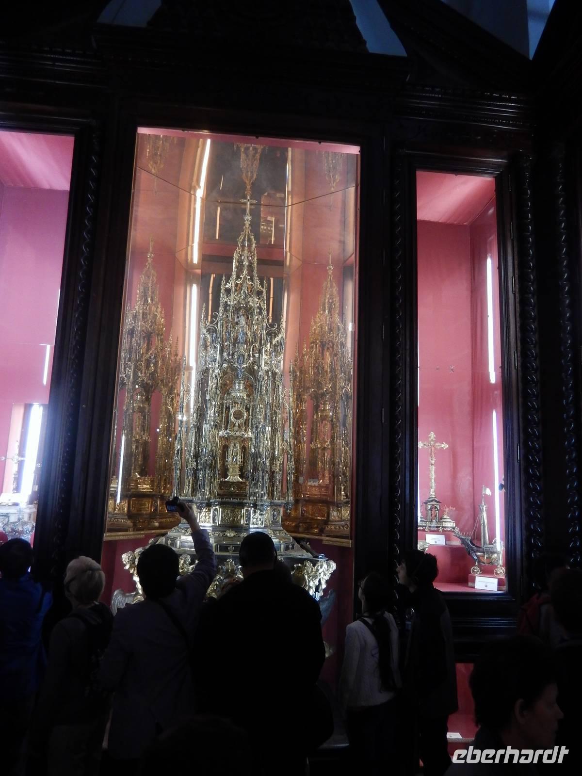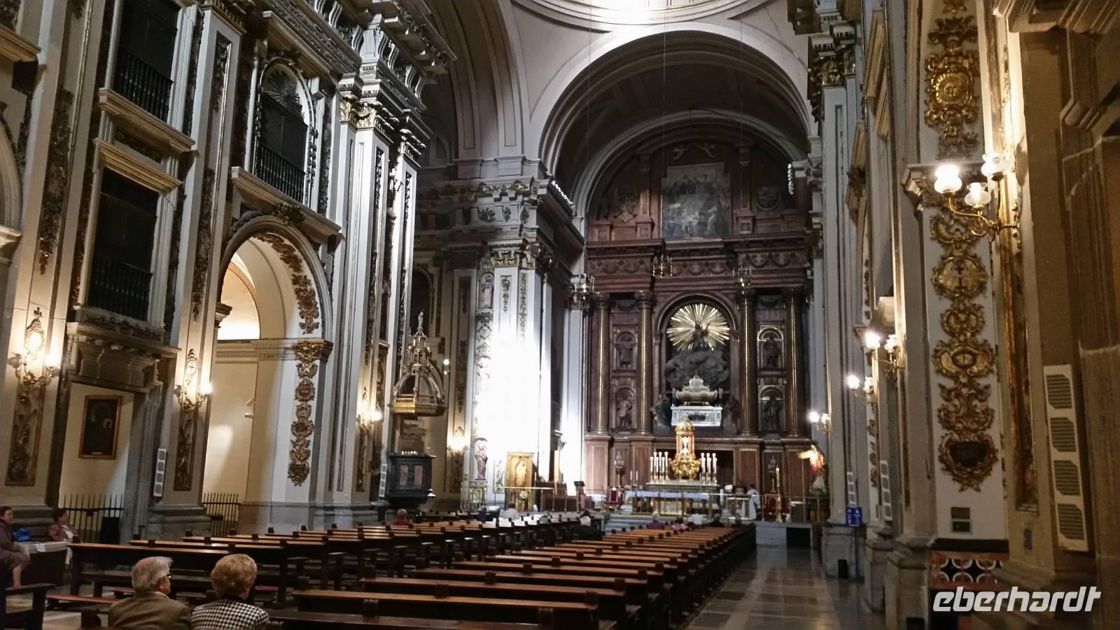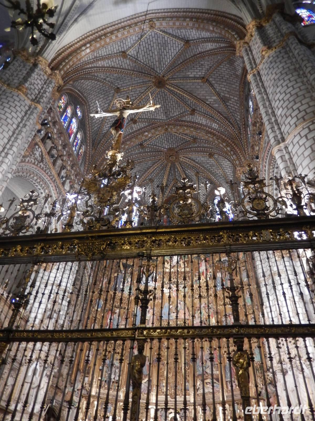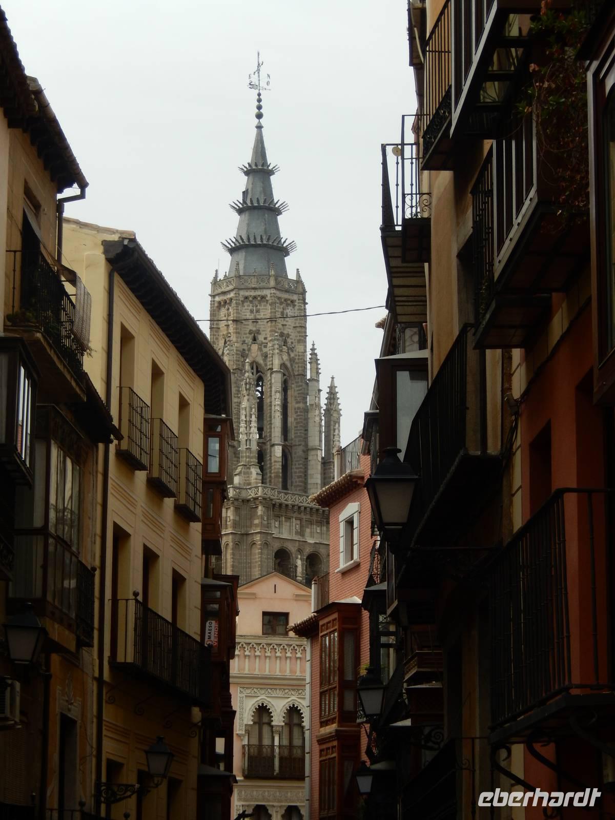 Eines der Wahrzeichen der Stadt, den Arco de la Sangre, lernten wir später bei einer Stadtführung kennen. Der aus Cervantes "Don Quijote" bekannte Bogen mit dem dahinter liegenden Alcazar (Palast) ist ein traumhaftes Fotomotiv. Wir fingen hier bei dem Zocodover Platz an und spazierten gemeinsam durch die Straßen von Toledo. Zuerst besuchten wir die imposante Kathedrale. Dieser Dom hat 2 Türme, aber einer war nicht zu Ende gebaut worden, da dann das Geld gefehlt hatte. Von innen erinnerte uns dieser Dom an den von Sevilla oder Malaga. Später besuchten wir das berühmte Gemälde von El Greco „Das Begräbnis von dem Graf Orgaz" und machten eine kleine Mittagspause zum Essen mit einem leckeren Menü. Weiter ging zu der jüdische Synagoge „Santa Maria La Blanca". Toledo ist ein einziges und gutes Beispiel wie damals Christen, Juden und Muslime in Friede zusammenleben konnten.