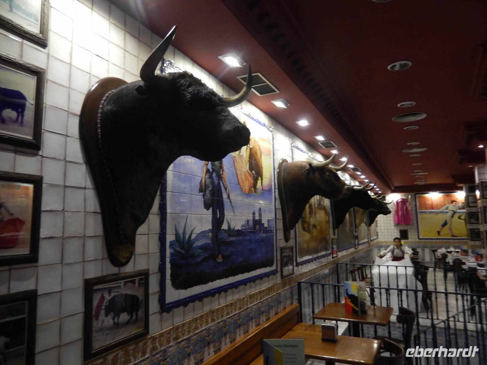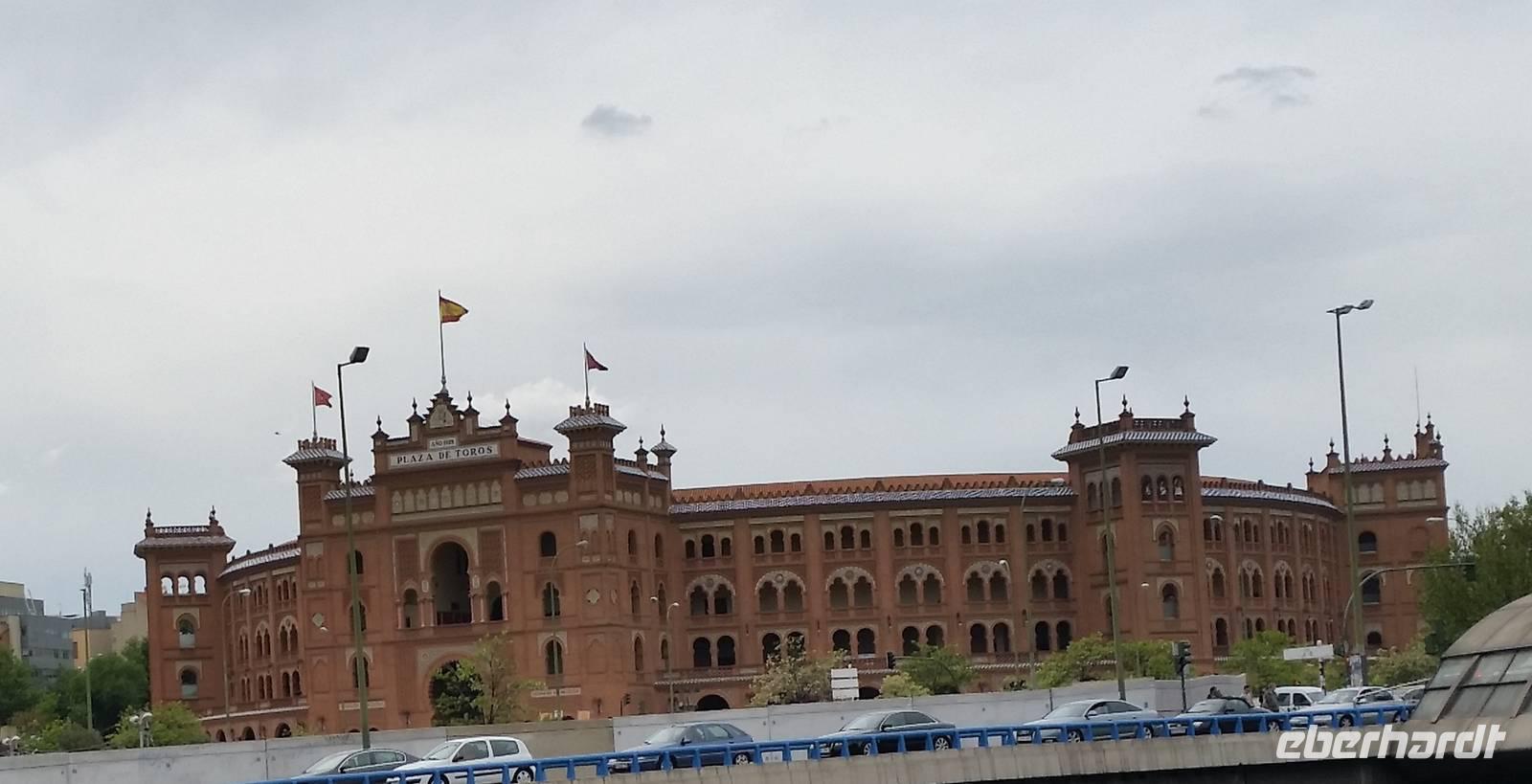 Nach dem Stadtbummel in Toledo fuhren wir zurück nach Madrid, wo wir einen Fotostopp bei der Stierkampfarena Las Ventas machten. Nun konnten wir den Abend in einer typischen Tapas-Bar mit spanischem Ambiente genießen und den Tag in Ruhe ausklingen lassen. Einige wussten zunächst noch nicht, was Tapas sind, aber man lernte es schnell. Plötzlich brachte der Kellner Teller mit verschiedensten Köstlichkeiten: Chorizo, Jamon Serrano Iberico Schinken, Salami, Manchego Käse, Patatas Bravas Kartoffeln, Spanische Omelette, Pimientos de Padron, Pulpo Octopus oder Chopitos Tintenfische. Dazu gab es einen guten Rotwein. Uns hat es sehr geschmeckt und mit vollem Bauch und zufriedenem Herzen gingen wir zurück ins Hotel, wo einige noch in der Lobby blieben, um diesen Tag ausklingen zu lassen.