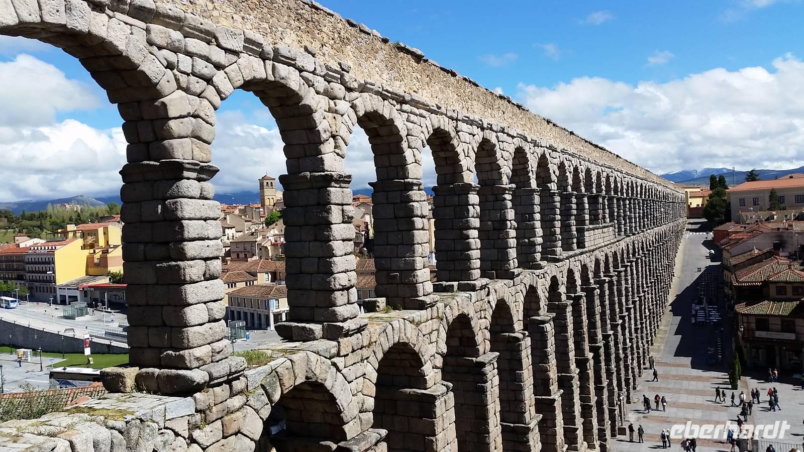 Am Sonntag waren nach einem herrlichen Frühstück El Escorial und Segovia die Ziele unseres halbtägigen Ausfluges. Erster Stopp war heute über die Castellana-Allee das Santiago Bernabeu Stadium, wo die Fußballmannschaft Real Madrid spielt. Wir fuhren weiter in das nördliche Umland von Madrid. Zunächst fuhren wir nach El Escorial. Wir genossen einen Spaziergang durch diese historische Umgebung. Bekannt ist das Städtchen für seine einzigartige Kloster- und Schlossanlage. Der "Königliche Sitz des Sankt Laurentius von El Escorial" gilt als größter Renaissancebau der Welt und wirkt aufgrund einer eher nüchternen Außengestaltung nicht wie ein typischer Palast. Zu der pompös großen Anlage gehören eine Kirche, ein Kloster, der eigentliche Königspalast, eine Schule und eine Bibliothek. Phillip der II. wollte der Welt damals zeigen, wie groß seine Macht war, da man dieses Schloss schon von weit her und auf dem Weg von Madrid gut bestaunen konnte.Nach einer Toiletten- und Kaffeepause fuhren wir über die Berge und über den „Löwen"-Pass anschließend weiter in die Stadt Segovia, die insbesondere für ihre zahlreichen Kirchen aus romanischer Zeit berühmt geworden ist. Als besonderer Höhepunkt gilt das über 28 Meter hohe antike römische Aquädukt. Majestätisch erhebt sich dieser eindrucksvolle Bau inmitten der Stadt und durchläuft diese auf 700 Metern Länge. Als wir ankamen, hat es viel geregnet und wir haben uns entschieden, gemeinsam zum Mittag die berühmte Spezialität „Cochinillo" (BabySchwein) zu essen, um den Regen zu vermeiden. Und wir hatten Glück, da nach dem Essen die Sonne bereits auf uns wartete, mit der wir einen Spaziergang bis zum Alcazar und zurück zum Aquädukt geniessen könnten. Die Berge im Hintergrund waren voll mit frischem Schnee von heute. Herrlich.