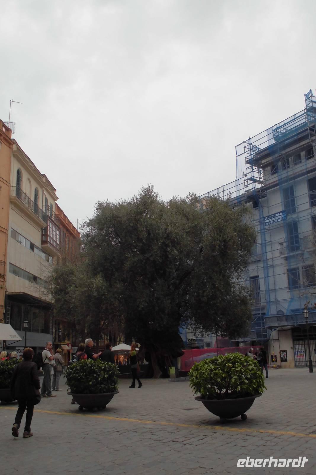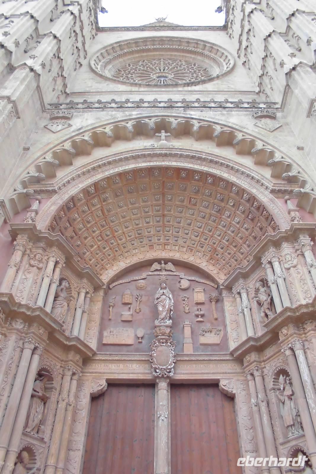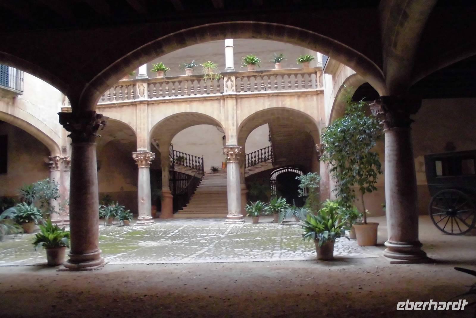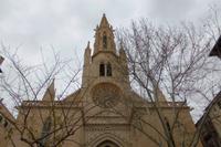 Nachdem wir uns alle gestärkt haben, geht es weiter durch die Gassen und über die Plätze der Stadt. An der Carrer de San Miquel verweilen wir kurz und lauschen Straßenmusikern. Weiter geht es zum Gericht, vor welchem einer der ältesten Olivenbäume der Insel steht. Ein Großteil von uns hat nun mittlerweile und wahrscheinlich schon komplett die Orientierung verloren, als wir auf einmal vor La Seu, der Kathedrale stehen. Hier treffen wir Carlos, welcher uns durch den Innenraum des Gotteshauses führt. Am Eingang bekommen wir Audioguides - hinsichtlich der geringen Besucherzahl in der Kathedrale fast unnötig. Fantastisch ist dagegen die Größe und Höhe im Inneren der Kathedrale. Auf beiden Giebelseiten lassen riesige Rosetten aus buntem Glas Licht hinein. Da es draußen mittlerweile angefangen hat zu regnen, kann man leider kaum die Farbspiele erkennen, welche bei eindringendem Sonnenlicht für eine einzigartige Atmosphäre sorgen. Carlos nimmt sich viel Zeit für uns, berichtet über die Arbeiten, welche Antonió Gaudí an der Kathedrale verrichten ließ, von der Elektrik bis hin zur Altargestaltung. Als wir die Kathedrale durch den Kreuzgang verlassen, hat der Regen etwas nachgelassen und so nutzen wir die übrige Zeit, um einen Kaffee oder Cappuccino trinken zu gehen- wer beim Treffpunkt dann unpünktlich war, wird hier nicht verraten ;-).