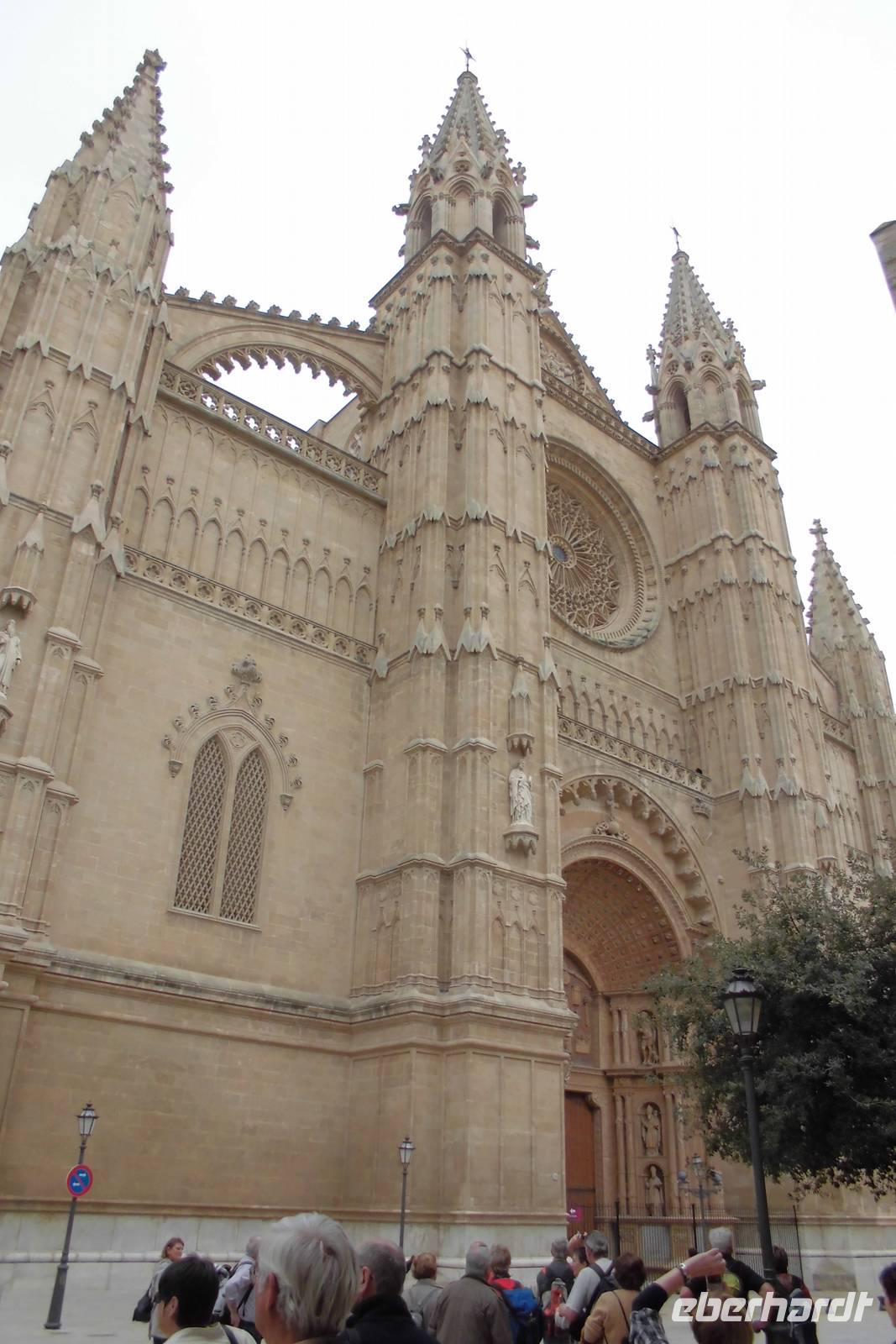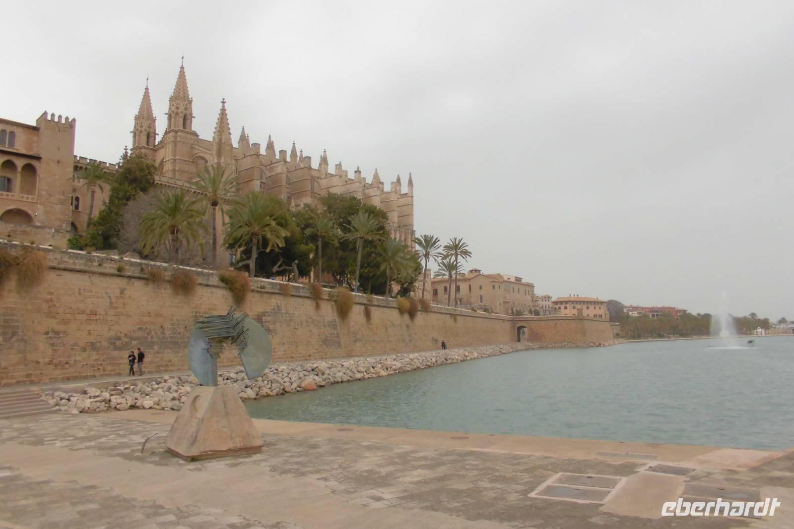 Wir queren kurz den Garten des Almudaina-Palastes, ehe wir am Parque del Mar nochmals unsere Fotoapparate zücken, um die Kathedrale einmal im Ganzen auf's Bild zu bekommen. Auf der anderen Straßenseite wartet dann auch José schon wieder auf uns, hinsichtlich des erneut stärker werdenden Regens sind wir alle froh ob seiner eher unspanischen Pünktlichkeit. Die Rückfahrt nach Paguera ist dann doch etwas ruhiger, schließlich sind solche „Asphaltkilometer" ziemlich anstrengend!