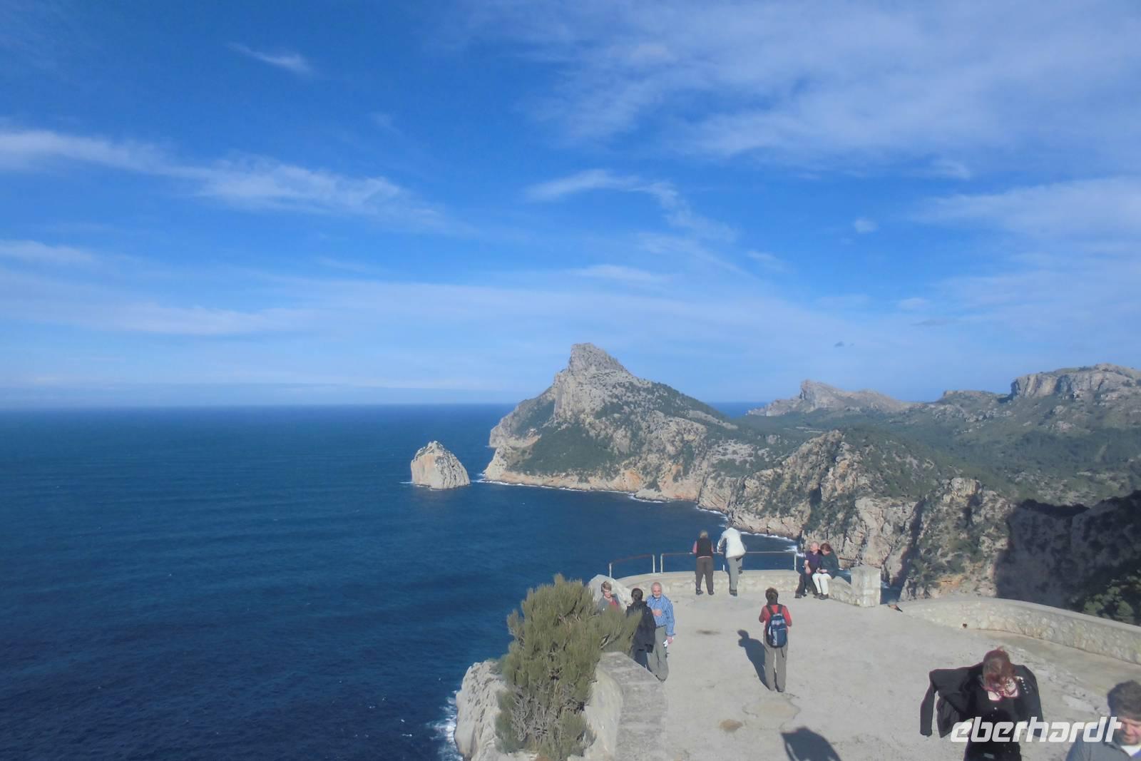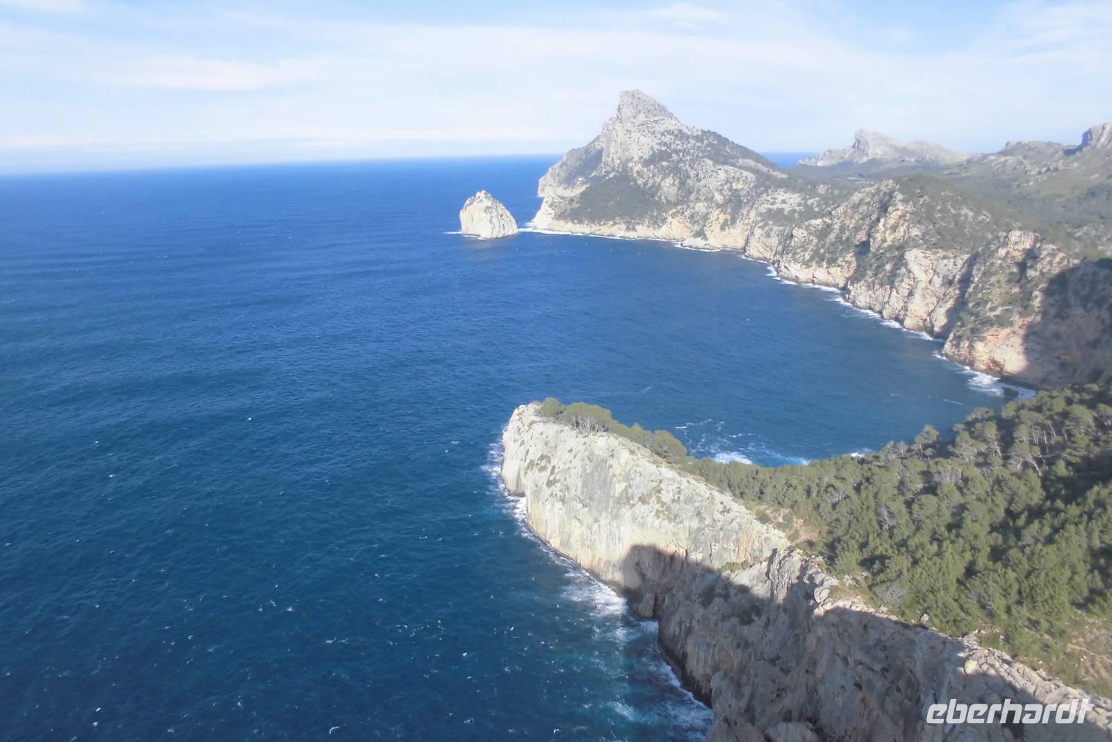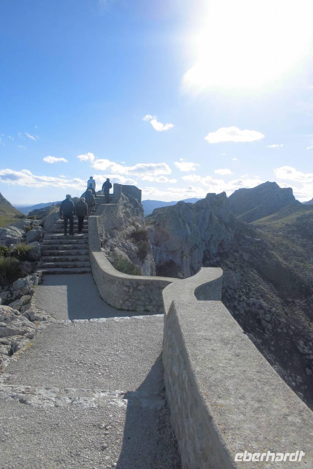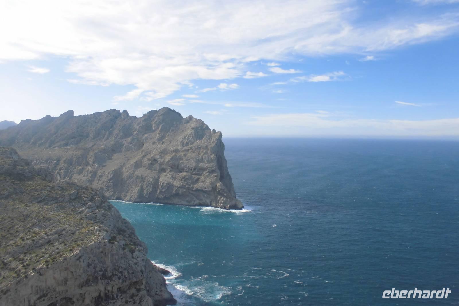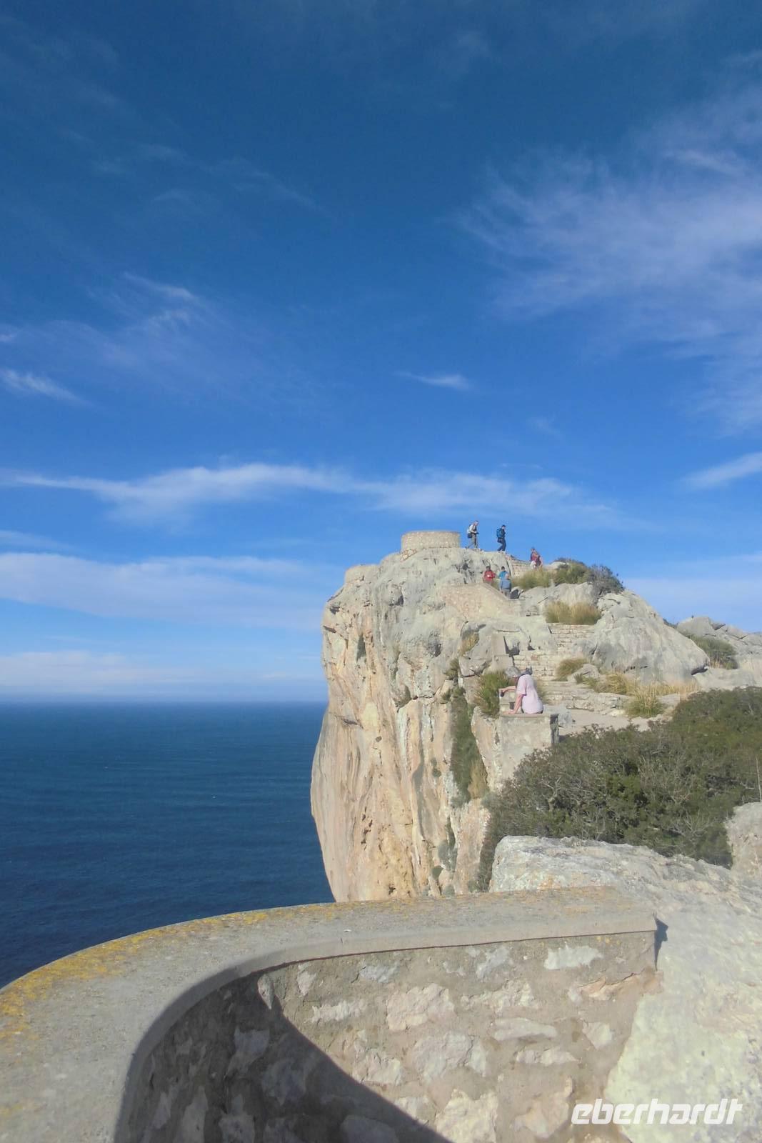 Entlang des Meeres folgen wir dem Straßenverlauf immer weiter nach Norden, ehe wir die Halbinsel Formentor und mit Ihr den Aussichtspunkt Es Colomer erreichen. Wir laufen über den gemauerten Weg und etliche Treppen und erreichen nach kurzer Zeit einen Punkt, der sich doch etwas anfühlt wie das Ende der Welt. Zu der wärmenden Sonne hat sich nun auch ein kräftiger Wind gesellt, welcher uns ordentlich um die Ohren bläst. Wir genießen den schier endlosen Blick über das weite Meer und sehen gebannt der Brandung tief unter uns zu. Nach einem so erlebnisreichen Tag ist es dann doch verständlich, dass die etwas längere Rückfahrt vom Norden in den Südwesten nach Paguera doch etwas ruhiger ist.