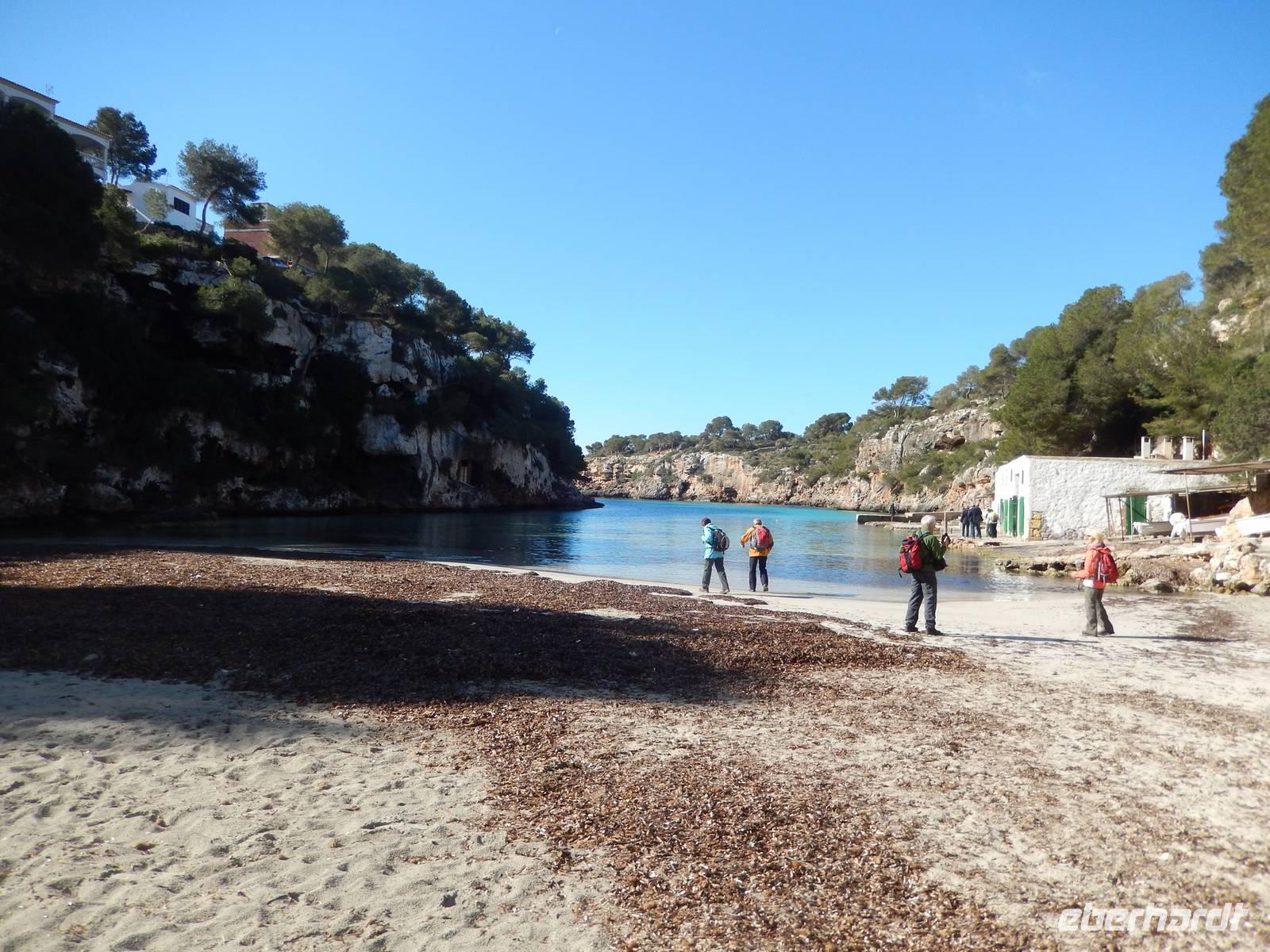 Auch das Dessert wurde für sehr lecker befunden und danach hängten wir uns wieder unsere Rucksäcke über die Schultern und nahmen die letzten Meter unserer Wanderreise in Angriff. Wir liefen an der wunderschönen und in einem Naturschutz liegenden Bucht Calla Agulla vorbei und lauschten noch einmal den Erläuterungen von Isabel über die Bedeutung der angeschwemmten Algen, bevor wir im Eroski noch ein paar Kleinigkeiten für unsere Lieben daheim besorgten.