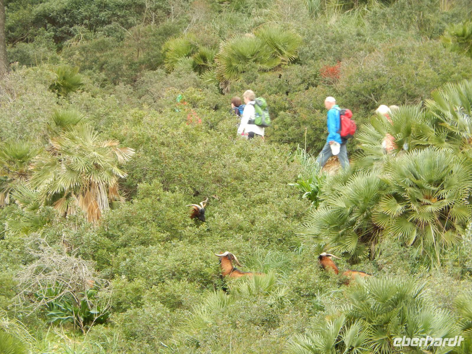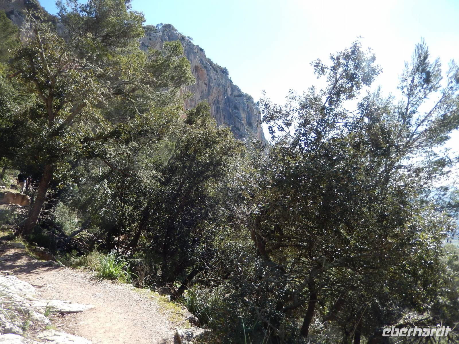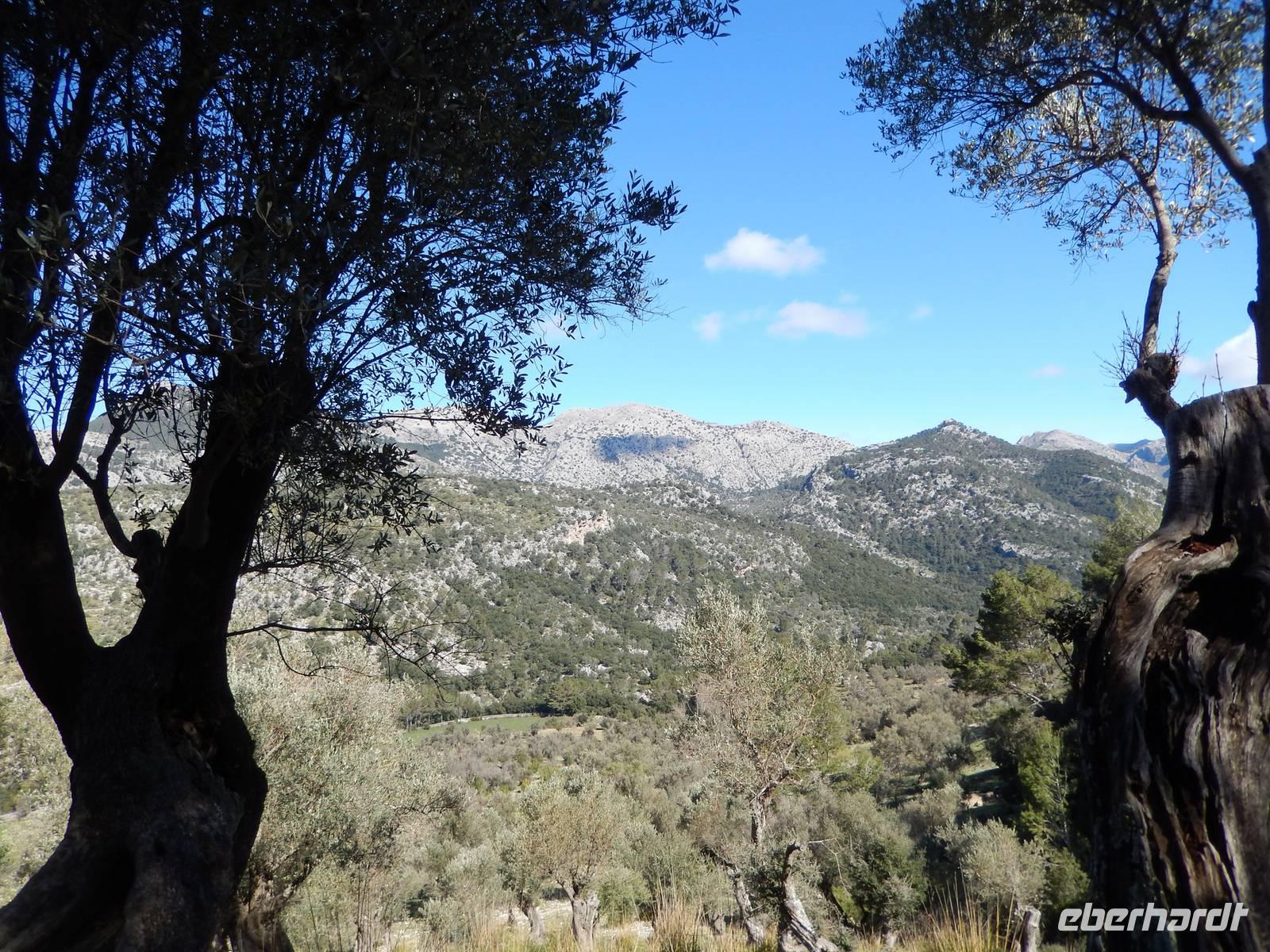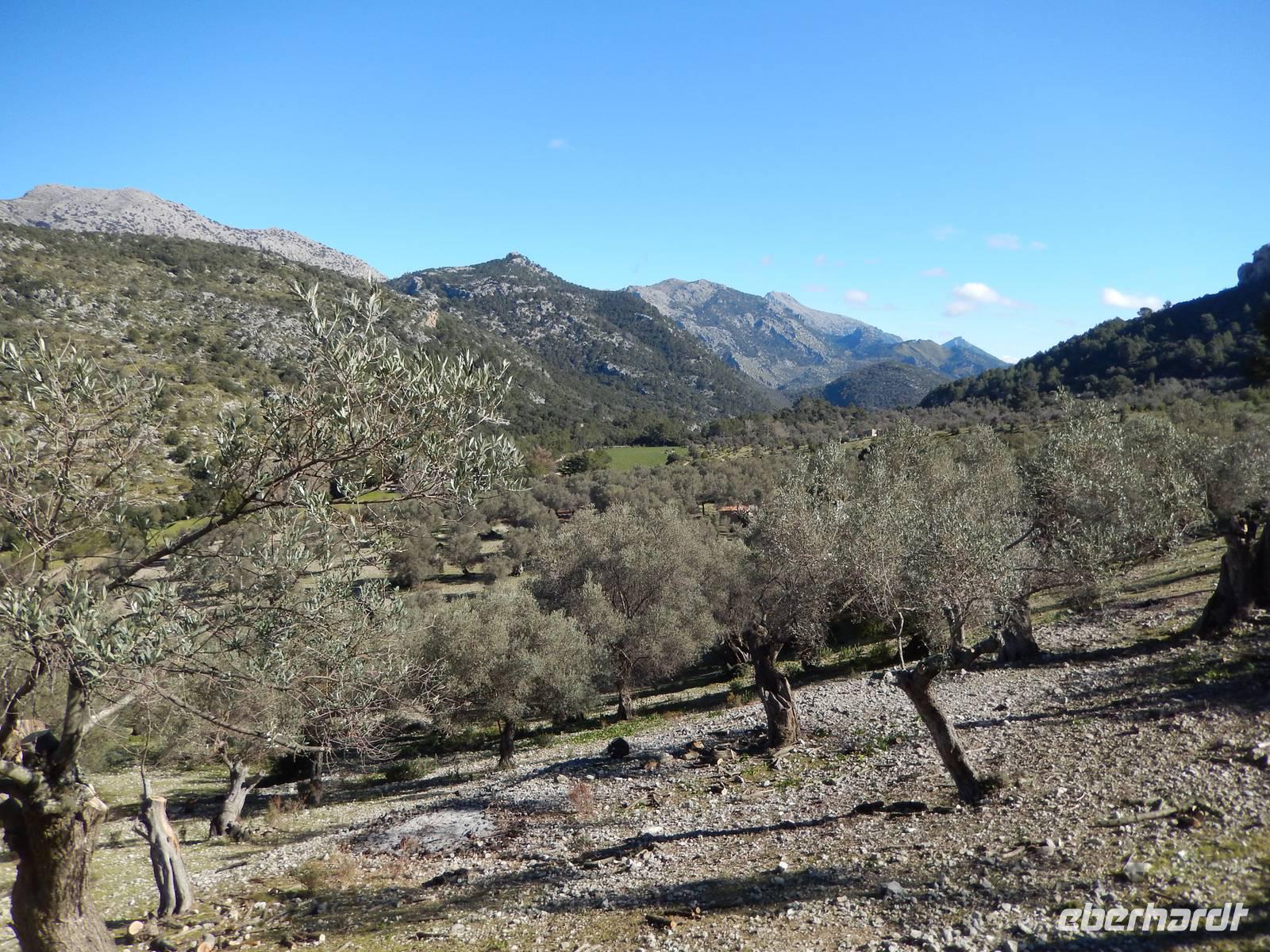 Wir starteten unsere Wanderung im Tal von Orient. Es war ein herrlicher Morgen. Die Sonne strahlte nur so vor sich hin, dass man meinen könnte, sie wolle den gestrigen Tag wieder gut machen. Wir öffneten ein Tor und verschwanden in eine andere Welt. Hier regierten die Olivenbäume. Überall standen knorrige und majestätisch alte und junge Olivenbäume, die durch den Wind alle eine besondere Form hatten. Nun ging es auf einem alten Pilgerfahrt quer durch die Olivenhainen. Isabel war nun ganz in ihrem Element und beantwortete uns unsere Fragen über Flora und Fauna und erläuterte die unterschiedlichen Arten von Oliven und deren Ernte. Dabei kamen die Männer nicht so gut weg.
