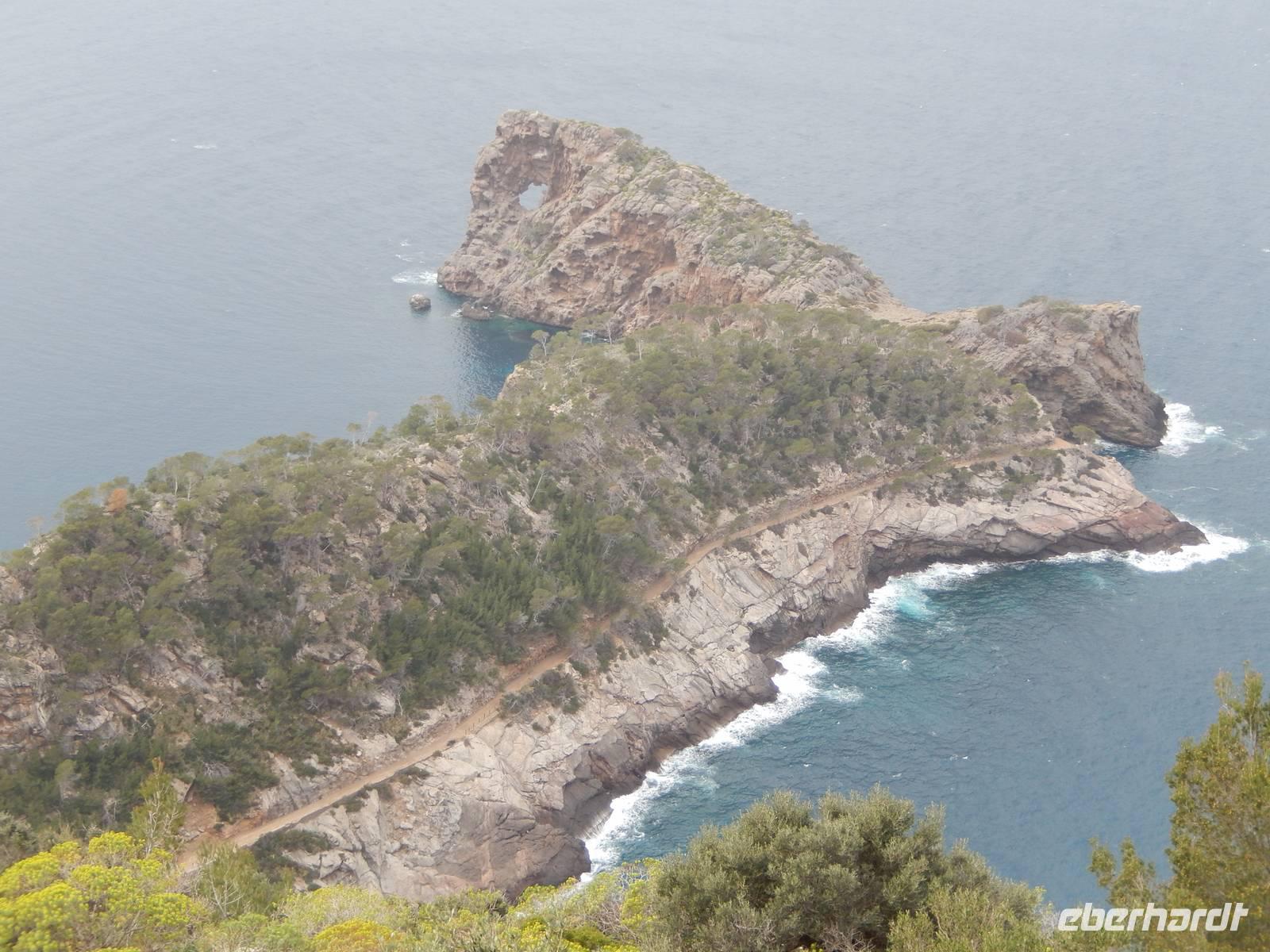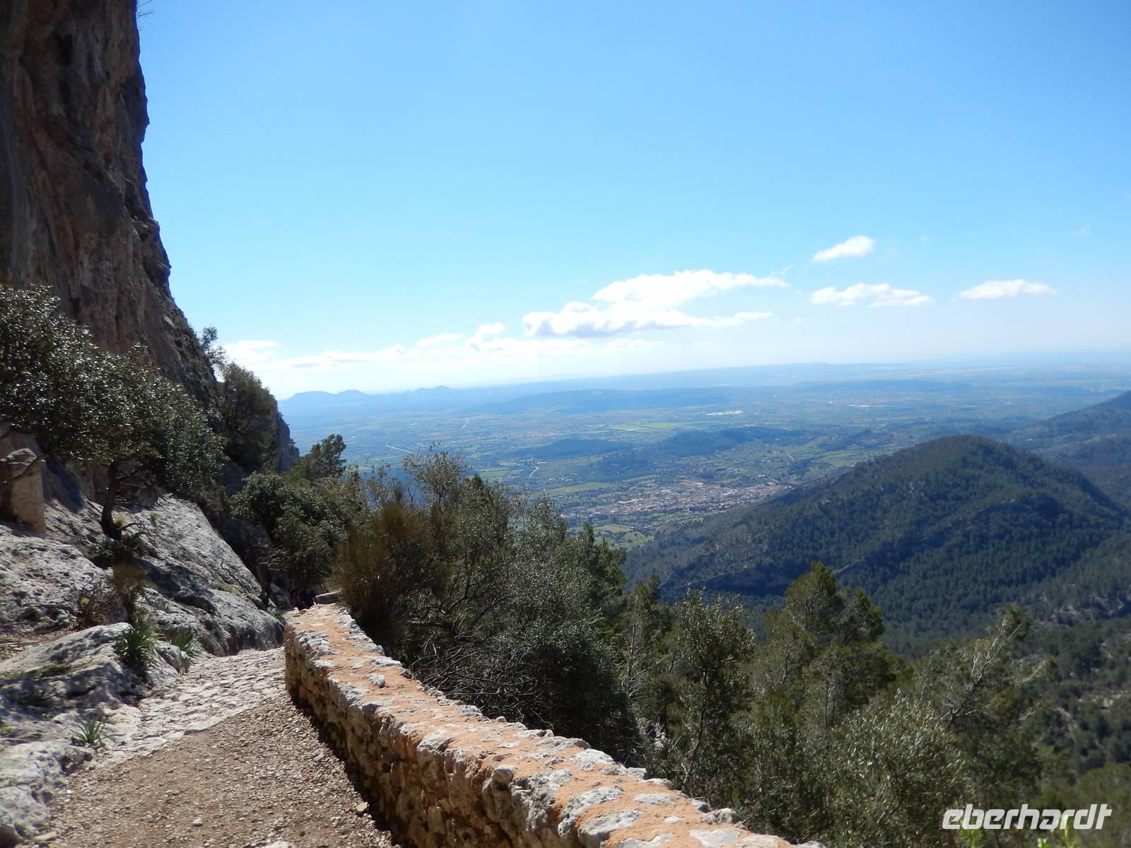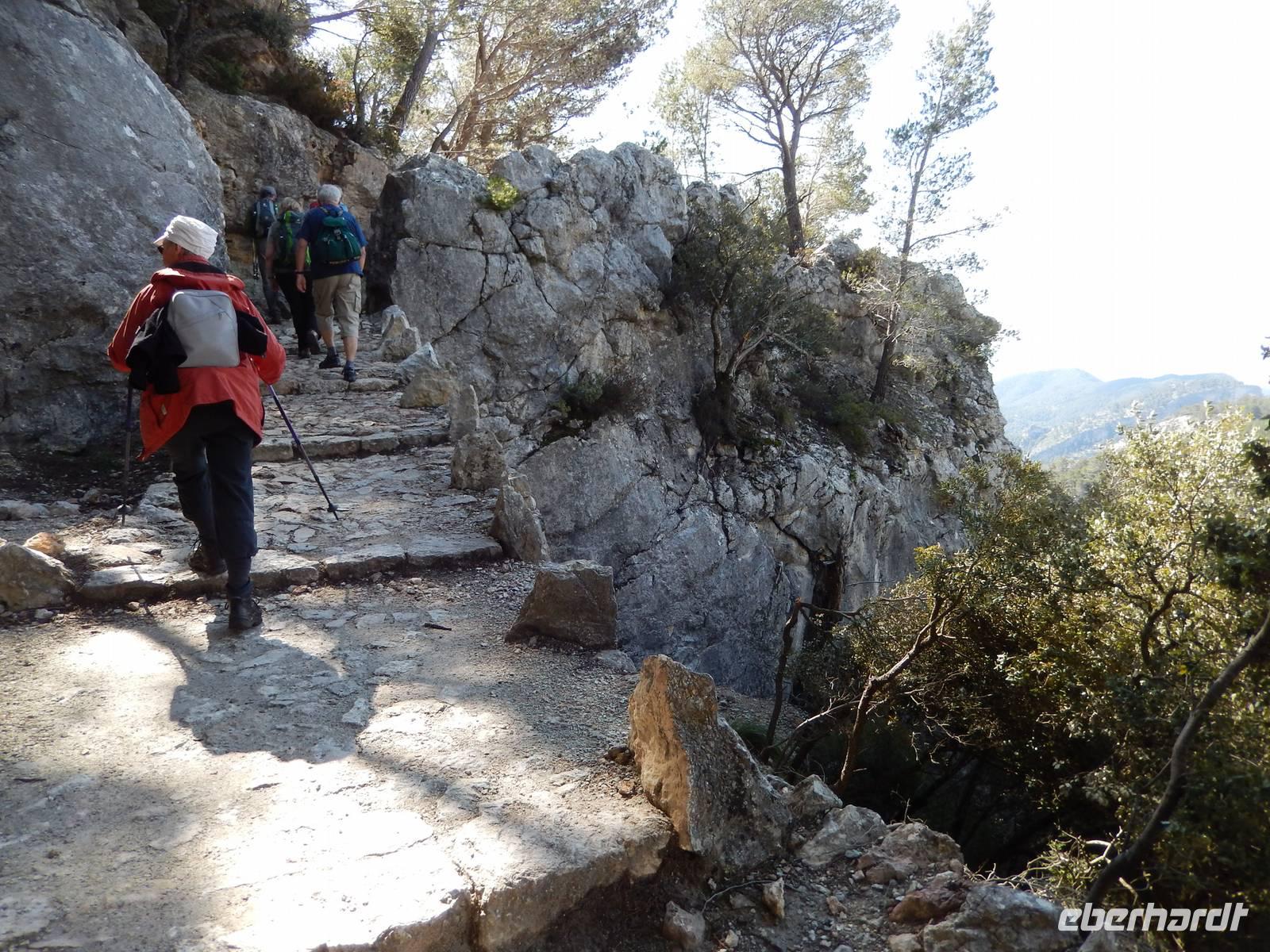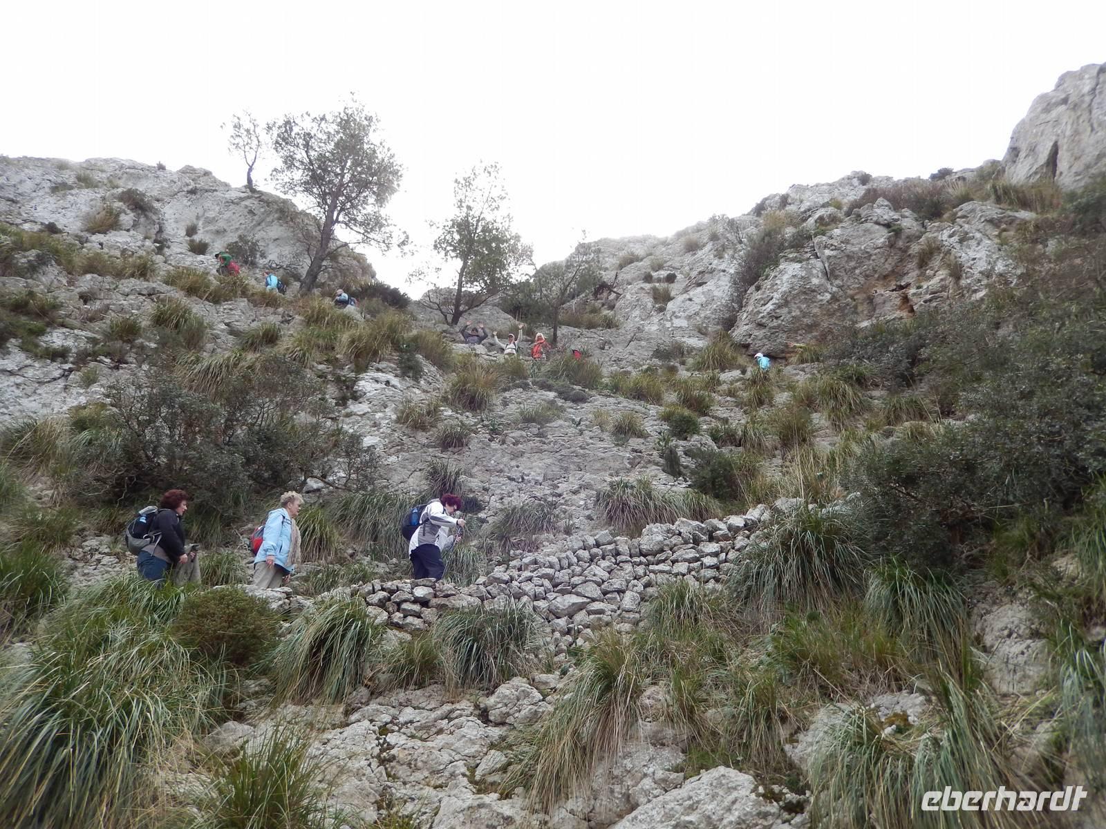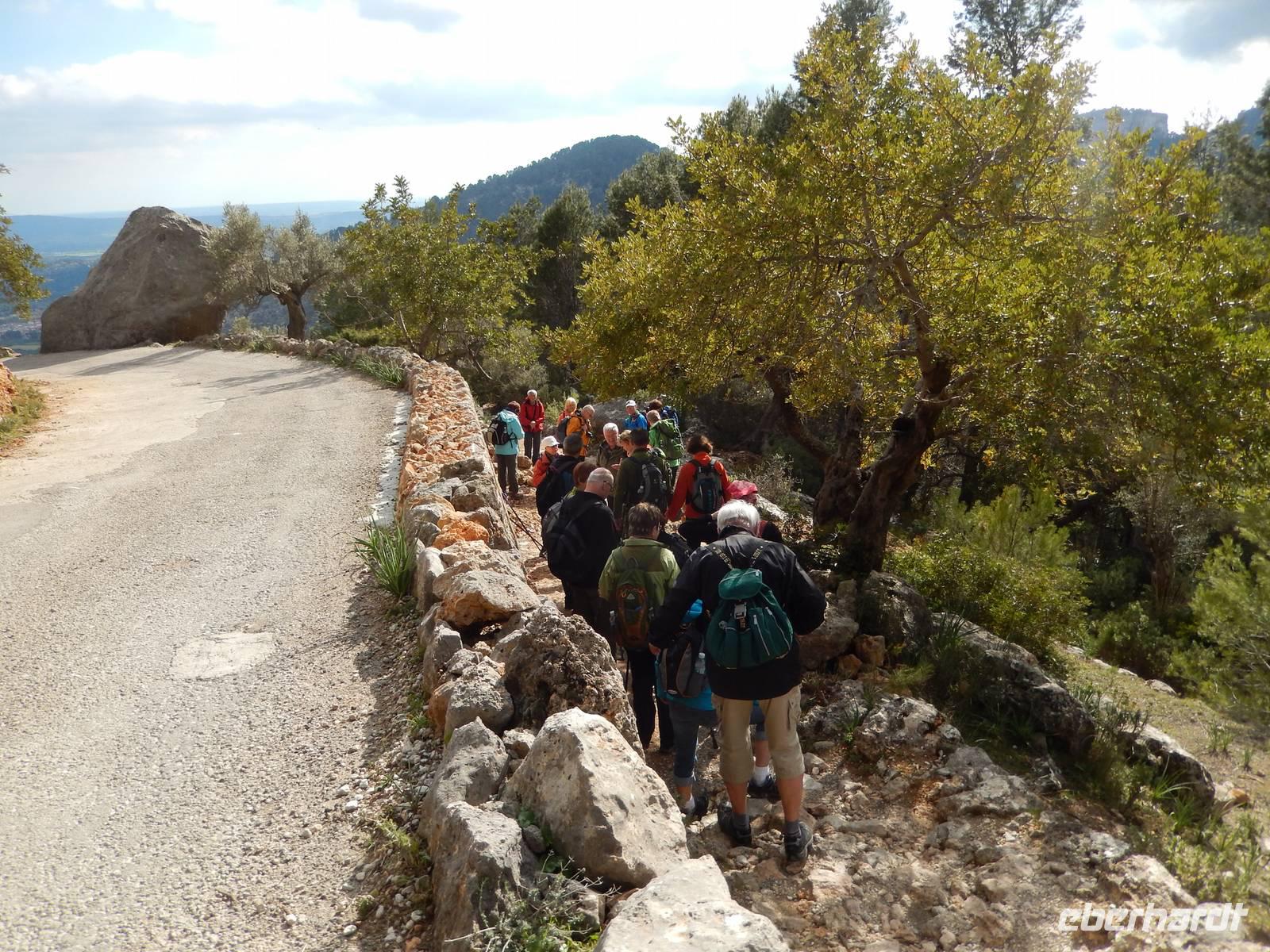 Am Stadtrand konnten wir sehen, dass die Straße einen weiten Bogen machte und wir entschieden uns dann doch lieber den kurzen aber steilen Fußweg zu nehmen. Eine kluge Entscheidung, denn am Ende des Fußweges kamen wir zurück auf die Straße, und hatten das Felsentor auf der Passhöhe schon fast erreicht. So hatten wir dem Motto der Mallorca - Reise voll und ganz entsprochen: Rad - und Wanderreise.