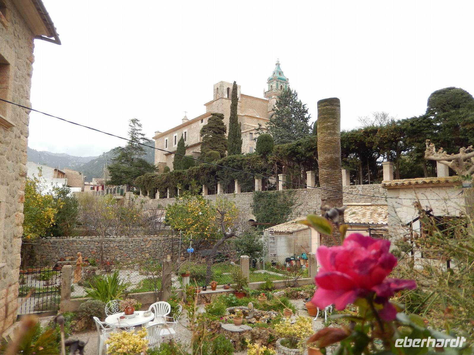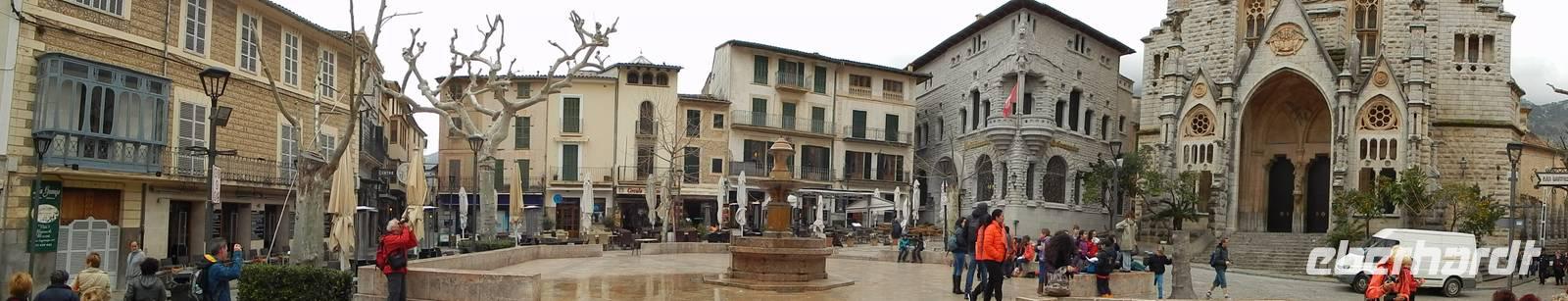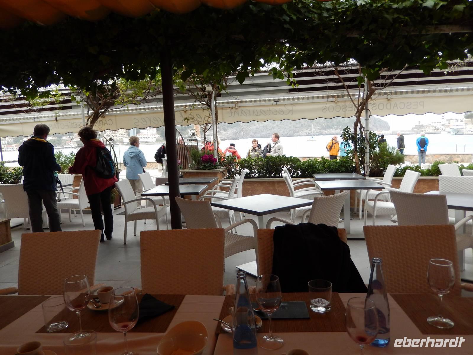 Heute blieben die Wanderschuhe im Schrank und die Fahrräder im Keller, denn wir unternahmen alle zusammen einen Busausflug in den Westen. Unsere erste Station war Soller. Hier stiegen wir aus und erkundeten die schöne Stadt. Ringherum hing der dicke Nebel in den Bergen fest und gab ein unglaublich schönes Bild ab. Nach einem kleinen Stadtrundgang hatte man die Wahl mit Isabel weiter die Stadt zu erkunden oder einen Kaffee trinken zu gehen und das ein oder andere Souvenir zu kaufen. Alle waren pünktlich am Treffpunkt und so konnten wir in die historische Straßenbahn einsteigen. Nun fuhren wir mit gemütlichem Tempo bis nach Port de Soller. Hier angekommen wurden die Wolken schon wieder etwas dunkler. Allerdings störte uns das diesmal nicht zu sehr, da wir anschließend im schicken Restaurant „ses oliveres" zu Mittag aßen. Der Tisch war schick eingedeckt und als Vorspeise gab es einen leckeren kleinen Salat mit exotischen Früchten. Der Hauptgang war die berühmte spanische Paella und als Dessert gab es einen duftenden Erdbeerkuchen. Gut gestärkt fuhren wir danach mit dem Bus über Deia, den Aussichtspunkt San Marriog, bis ins verträumte Valldemossa. Berühmt wurde es, weil Frederic Chopin und seine Geliebte, die französische Schriftstellerin George Sand den Winter im Jahr 1838/39 hier verbrachten. Nach einem kleinen Spaziergang durch Valldemossa hatte jeder noch einmal Zeit sich das kleine Städtchen auf eigene Faust zu erkunden. Mit dem Bus ging es dann zurück ins Hotel nach Santa Ponca . Im Anschluss versammelten sich alle nach dem Ausflug noch einmal in der Bar und wir erhoben das „Begrüßungsgetränk" und sagten Adios zu Isabel.