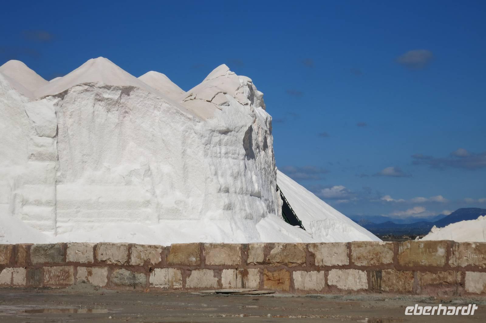 Bald sahen wir schon die weißen Berge leuchten und wir schwenkten ab in Richtung Colonia de Saint Jordi. Zuerst versuchte Reinhard sich auf einem Feldweg den Salinen zu nähern, wegen dem Regen vom Vortag war der Weg aber unpassierbar. Weiter auf der Straße erreichten wir bald die Einfahrt zu den Salinen wo wir einiges über diese Technik der Salzgewinnung aus Meersalz erfuhren.